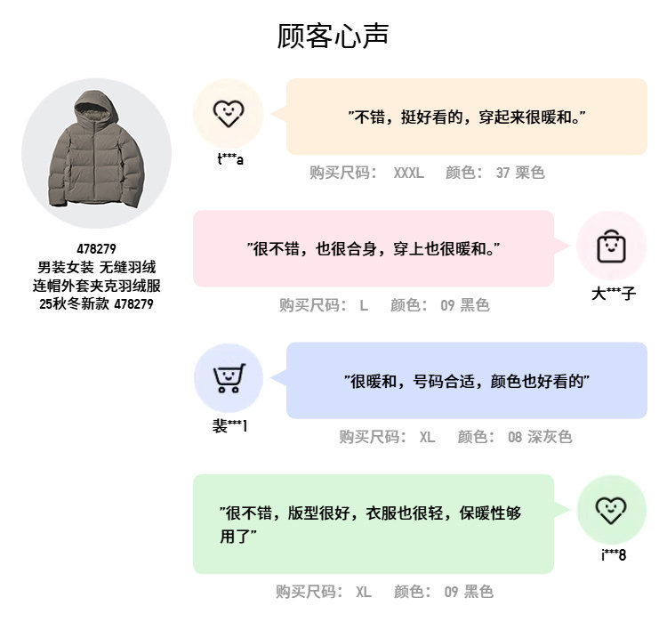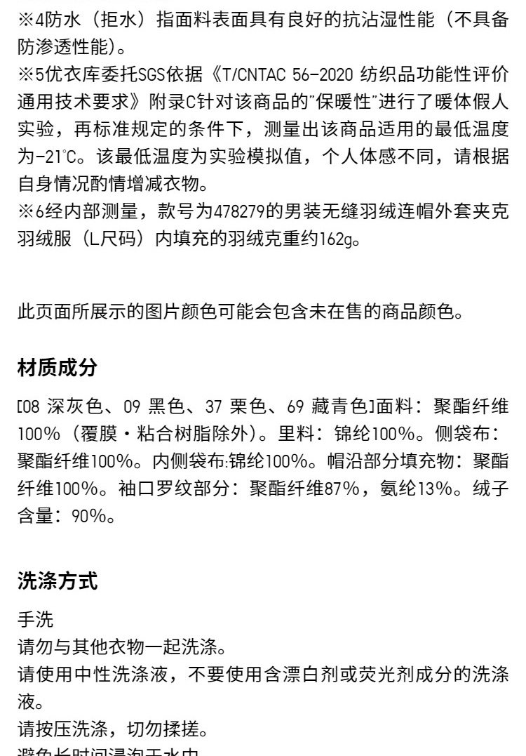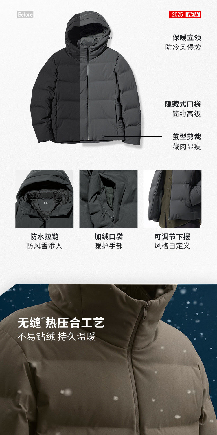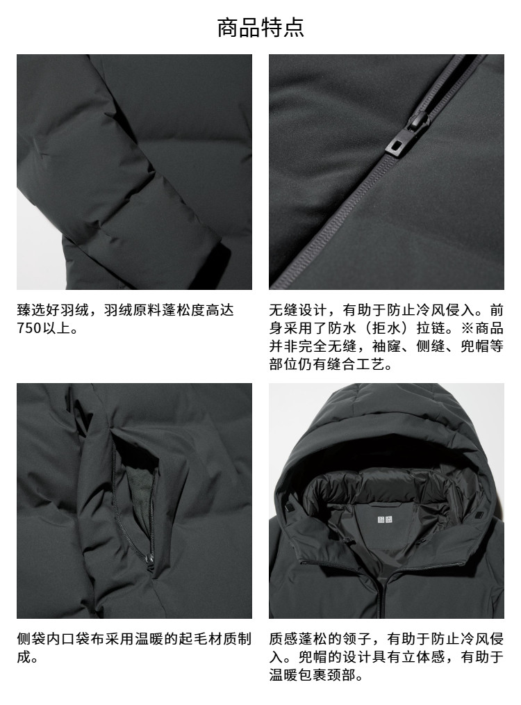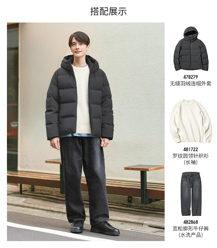 优衣库男装女装无缝羽绒连帽外套夹克羽绒服478279
