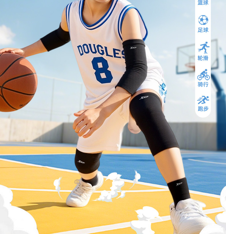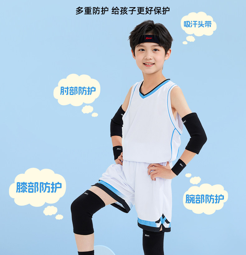 特步儿童护膝护肘防摔篮球专用运动装备足球护腿舞蹈骑行护具全套