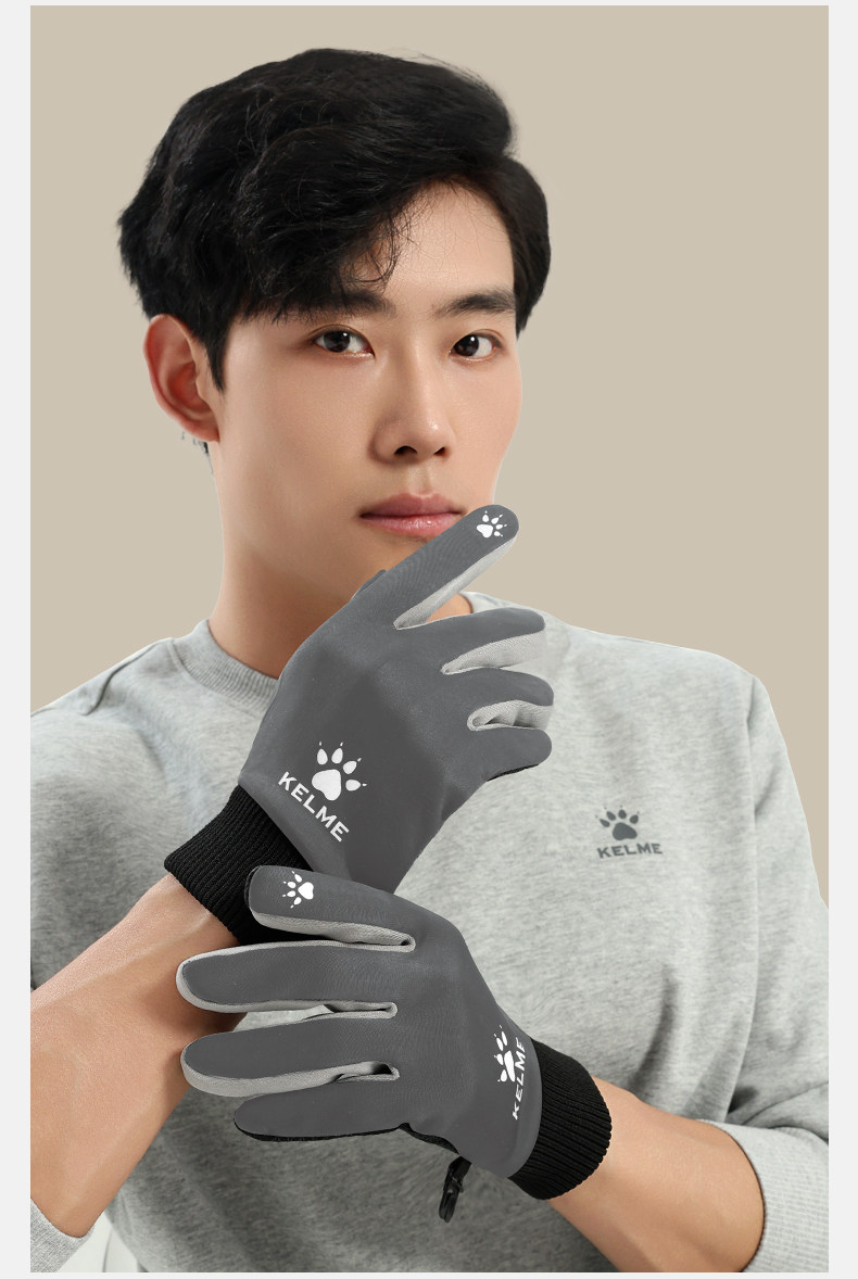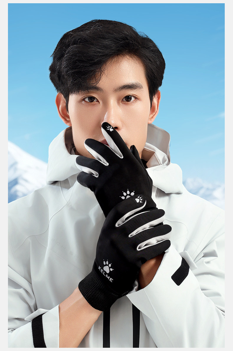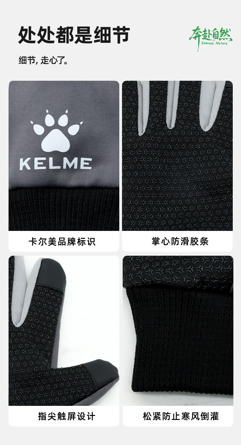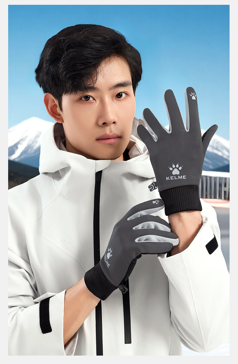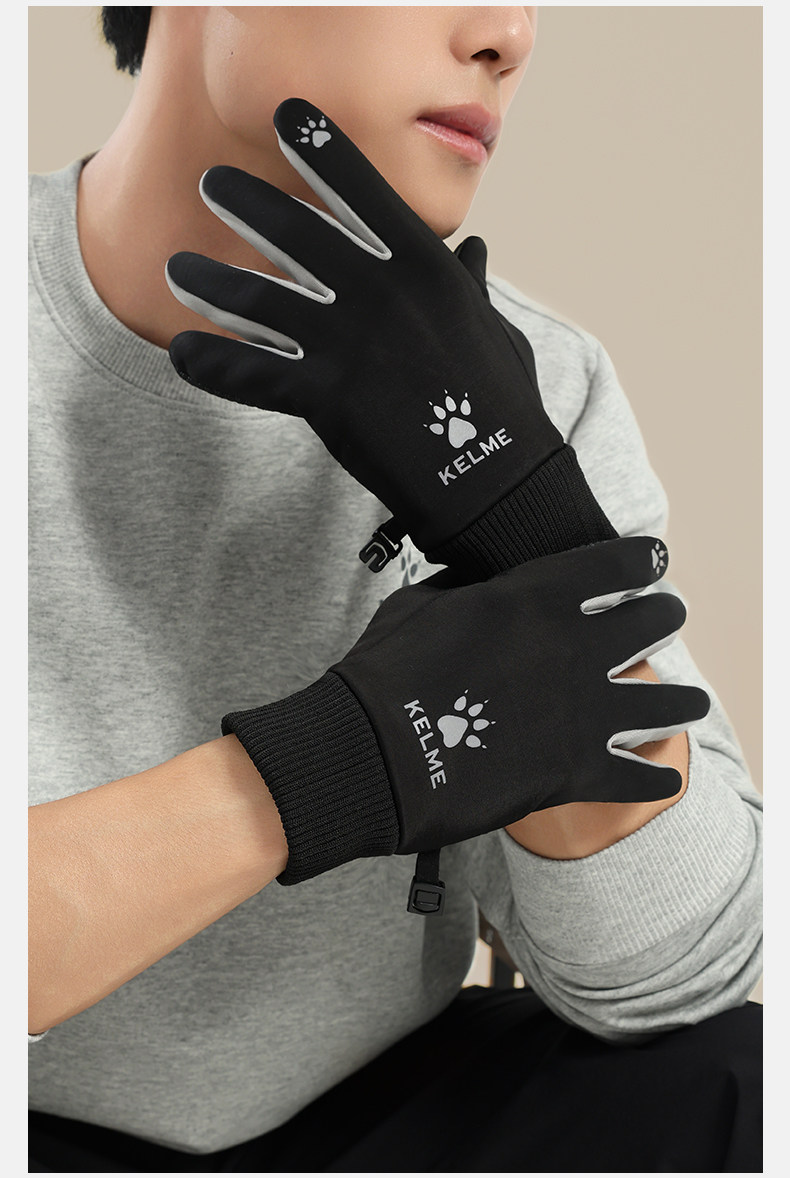 卡尔美手套男士冬季加绒保暖防风防寒户外运动骑行防水手套可触屏