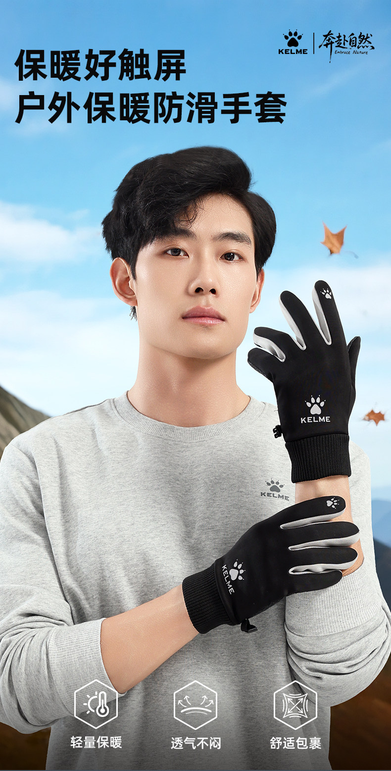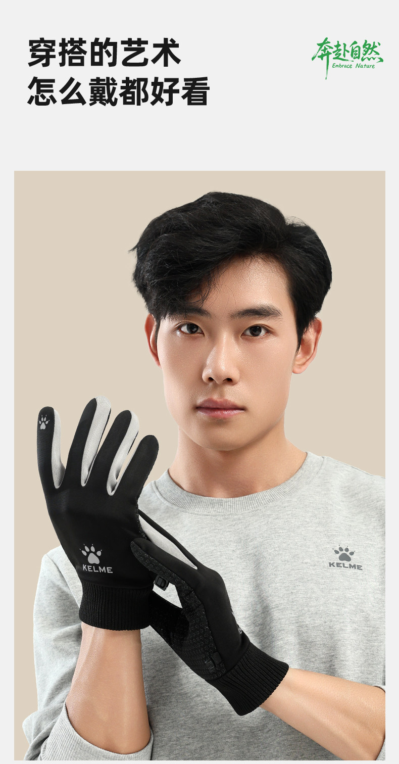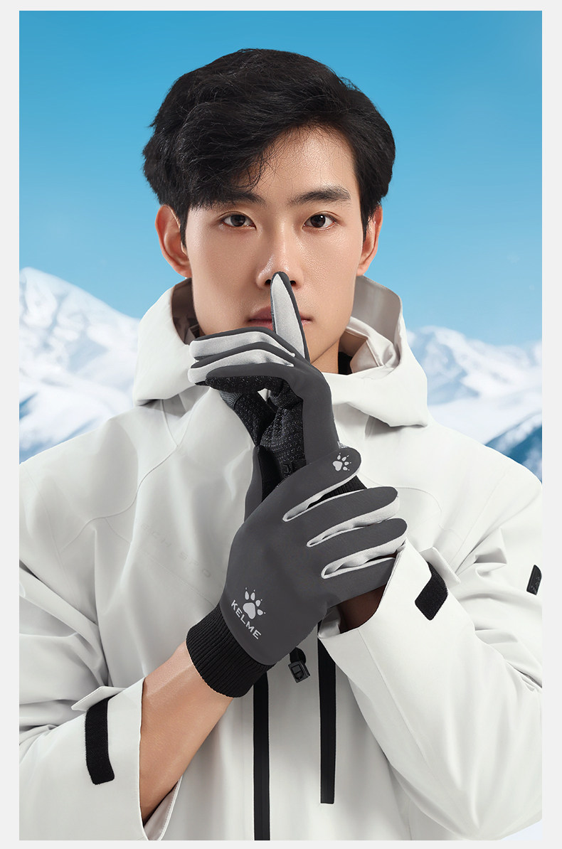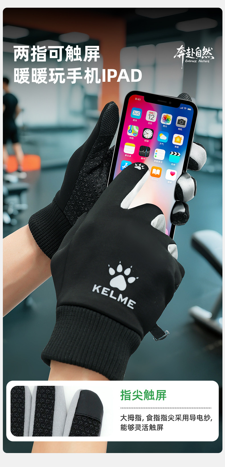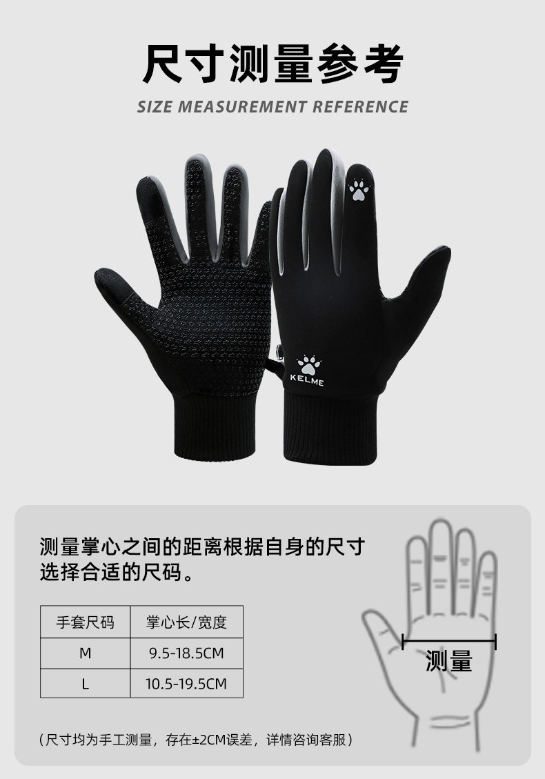 卡尔美手套男士冬季加绒保暖防风防寒户外运动骑行防水手套可触屏