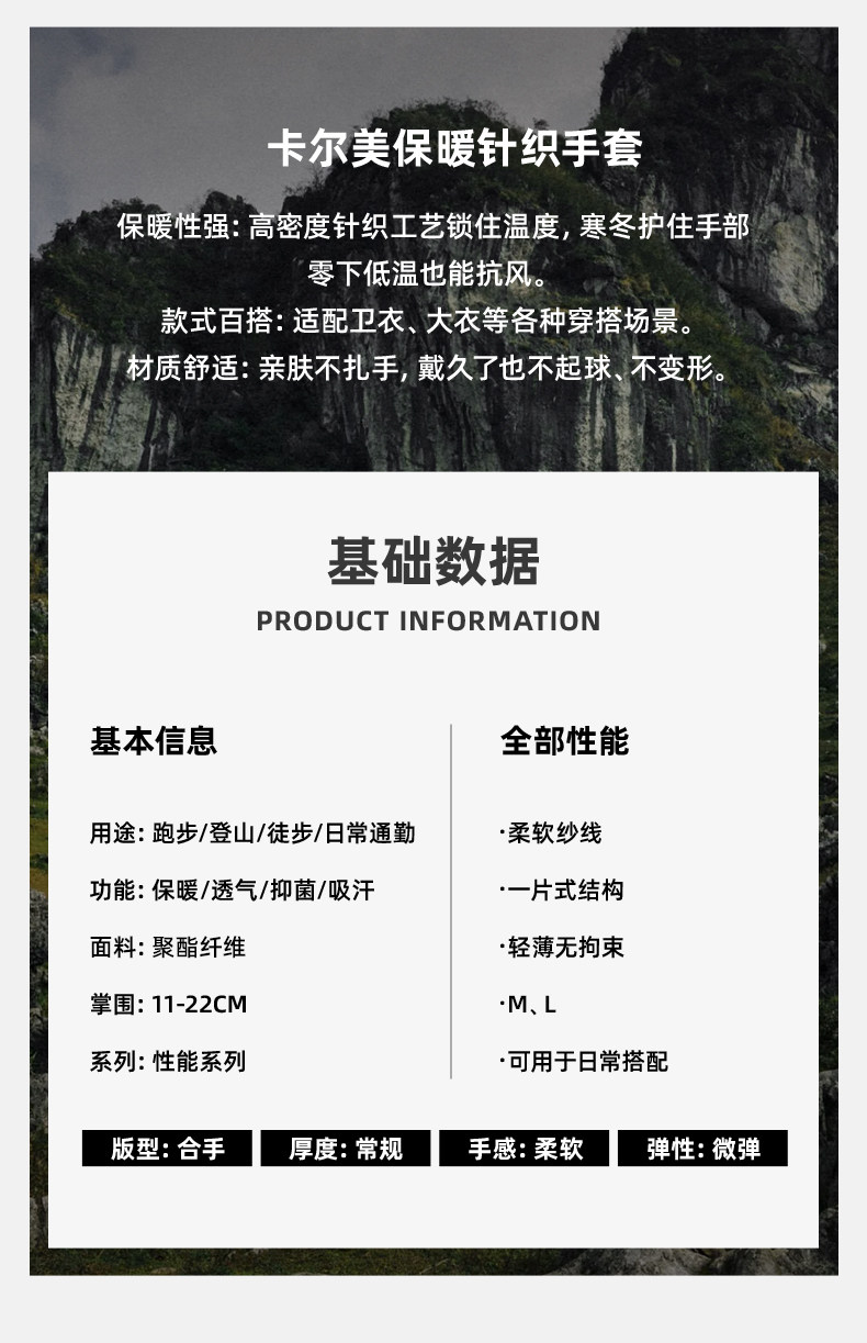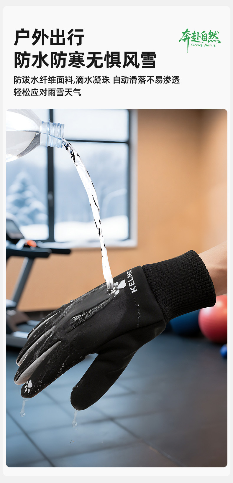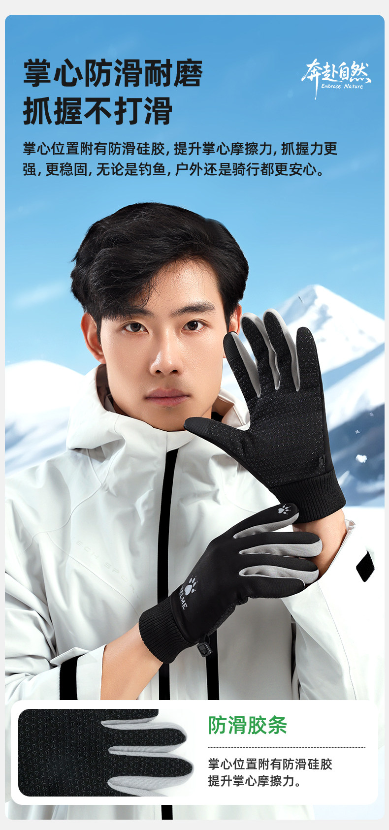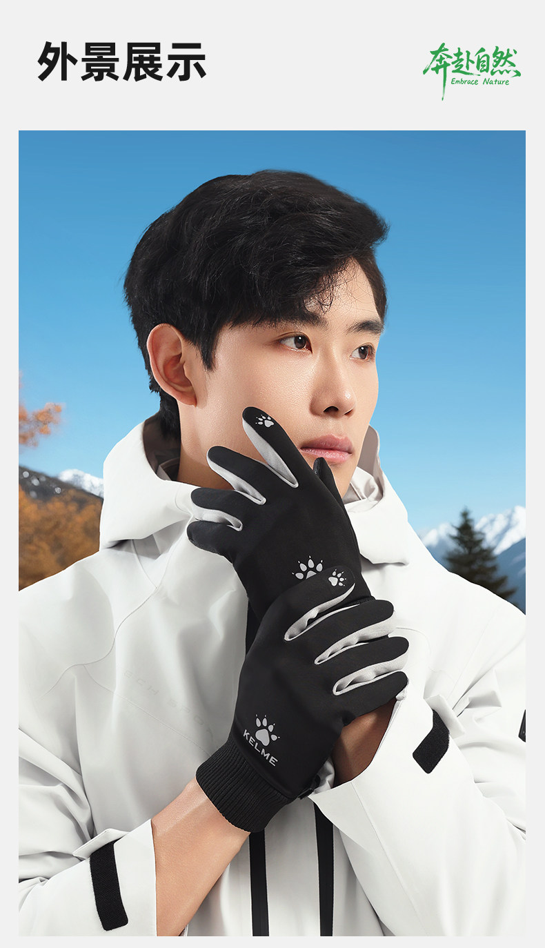 卡尔美手套男士冬季加绒保暖防风防寒户外运动骑行防水手套可触屏