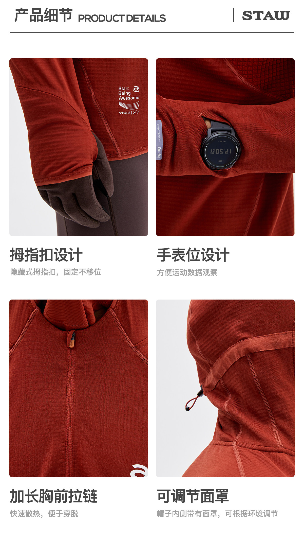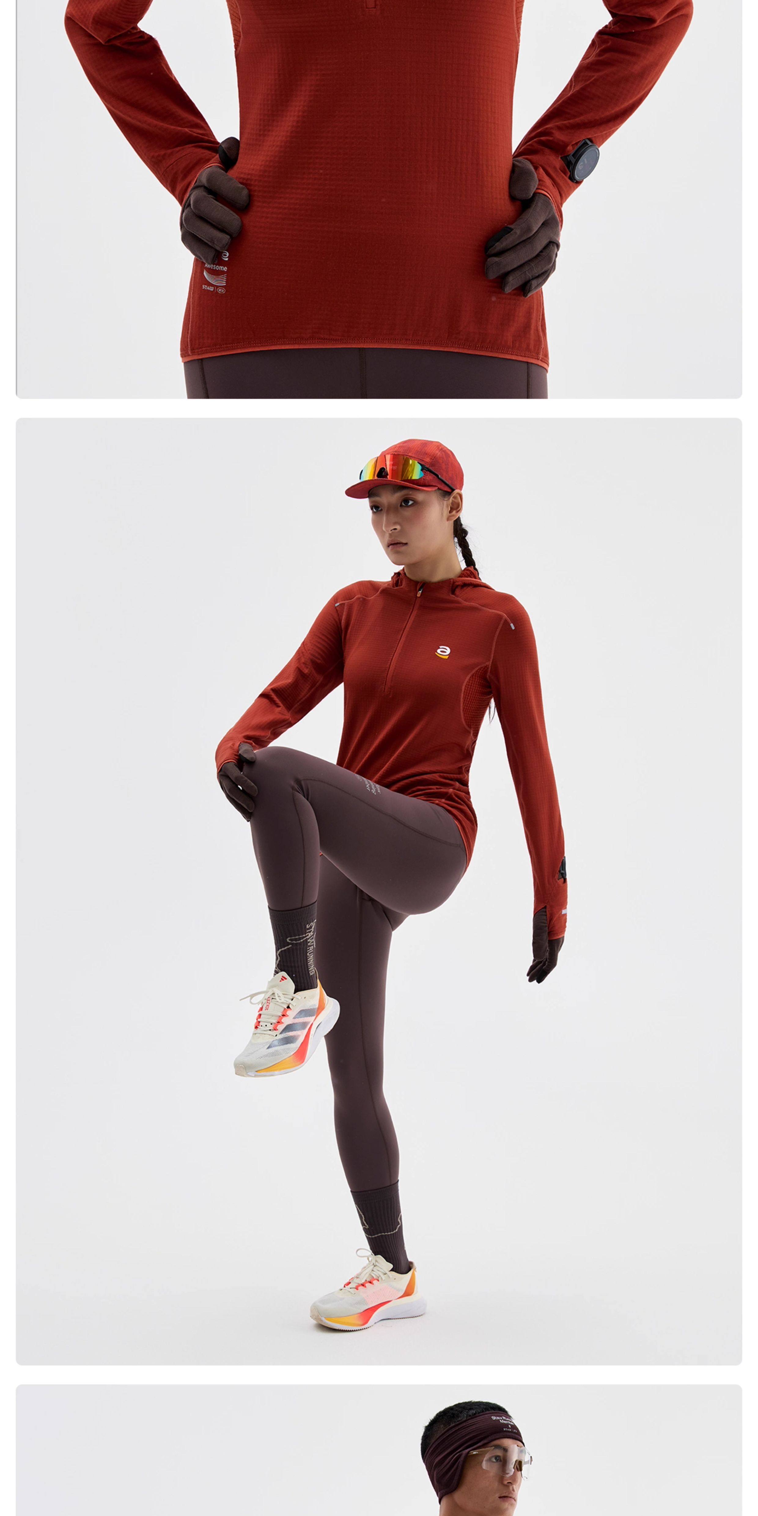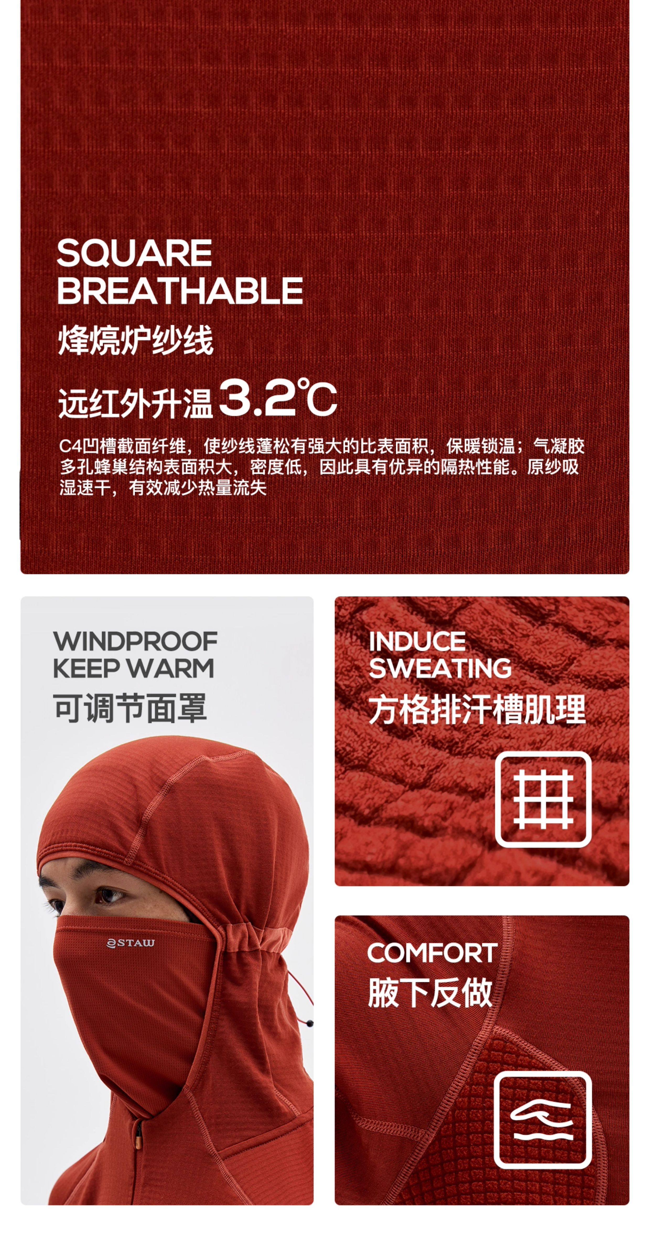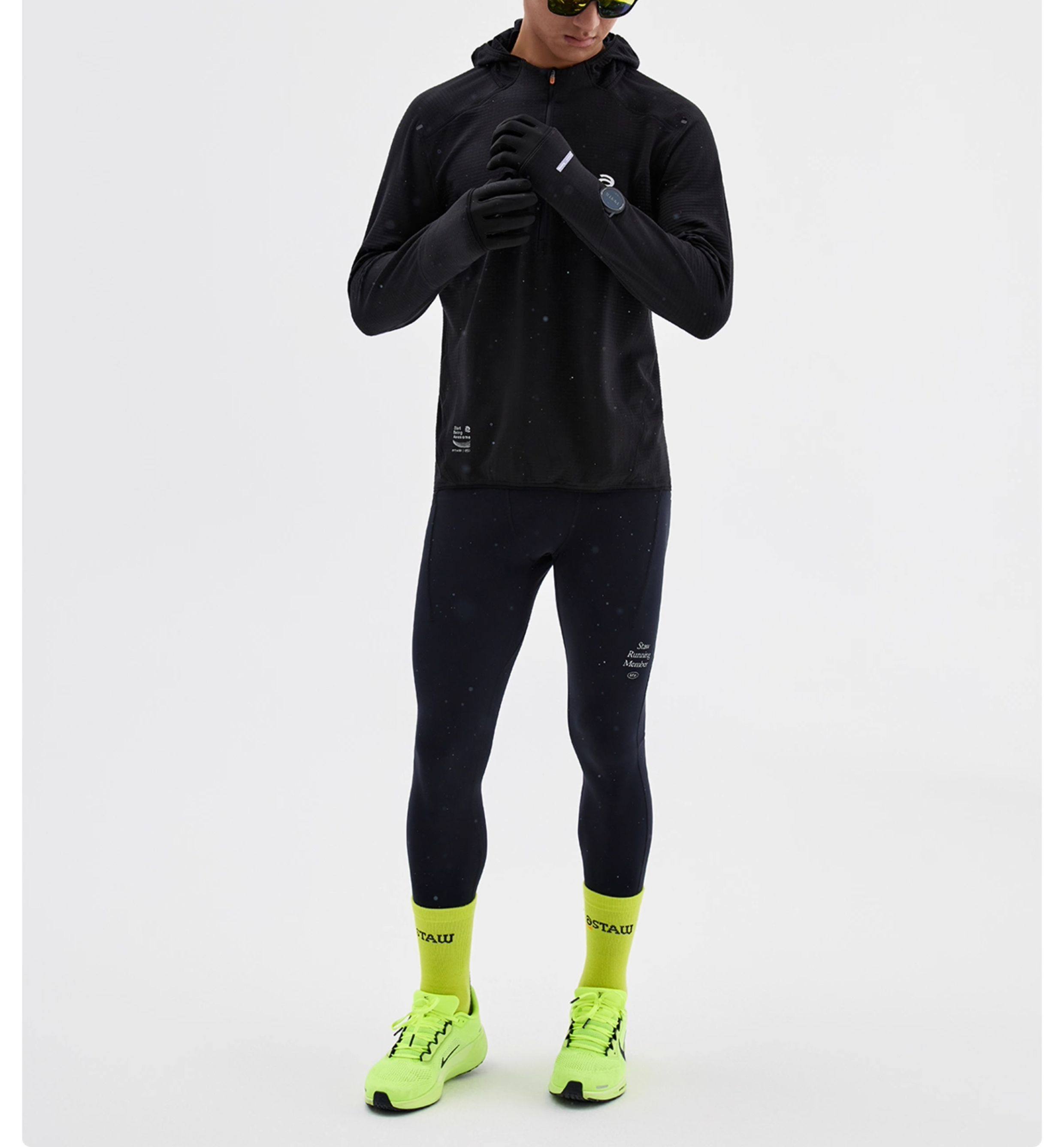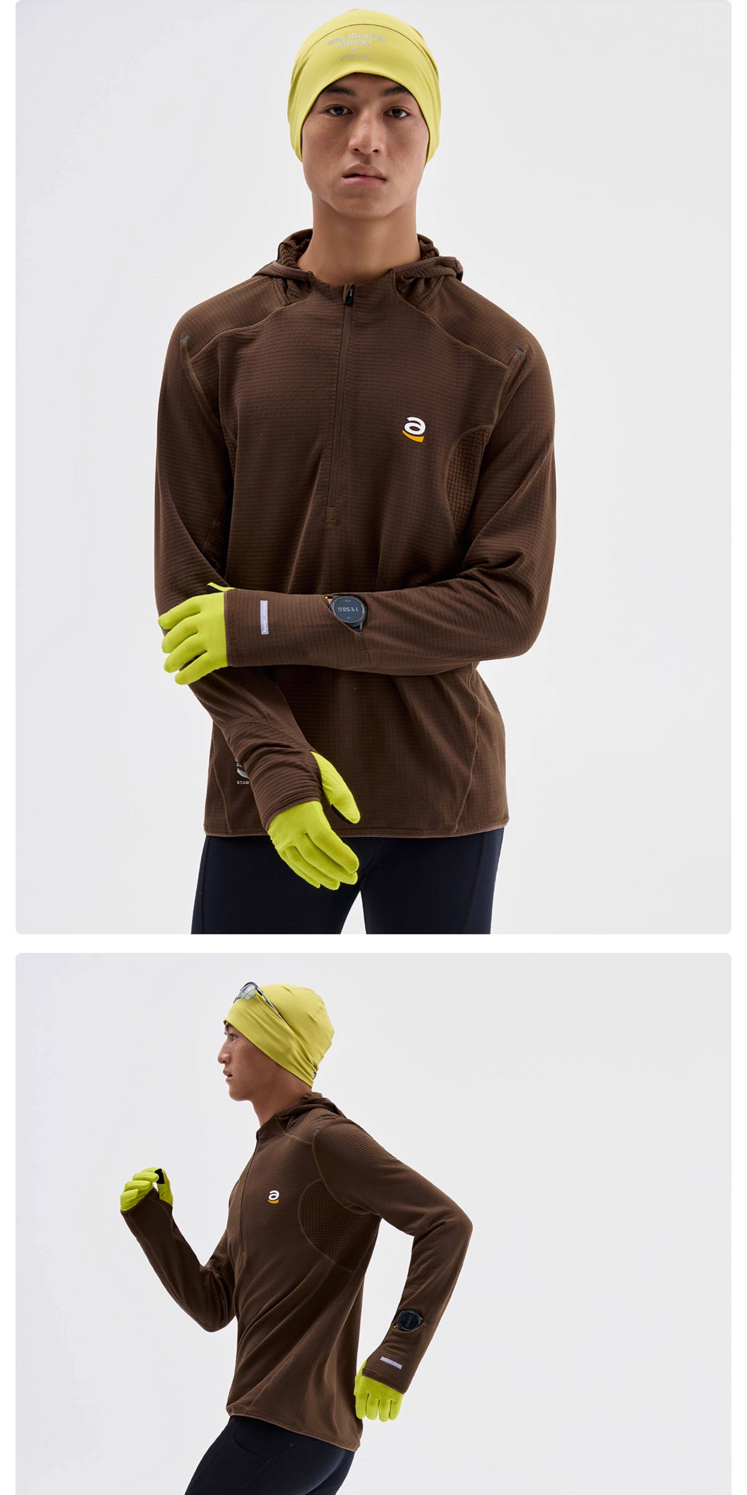 STAW世拓0度2.0加绒连帽跑步长袖T恤男抗菌保暖运动马拉松速干衣T