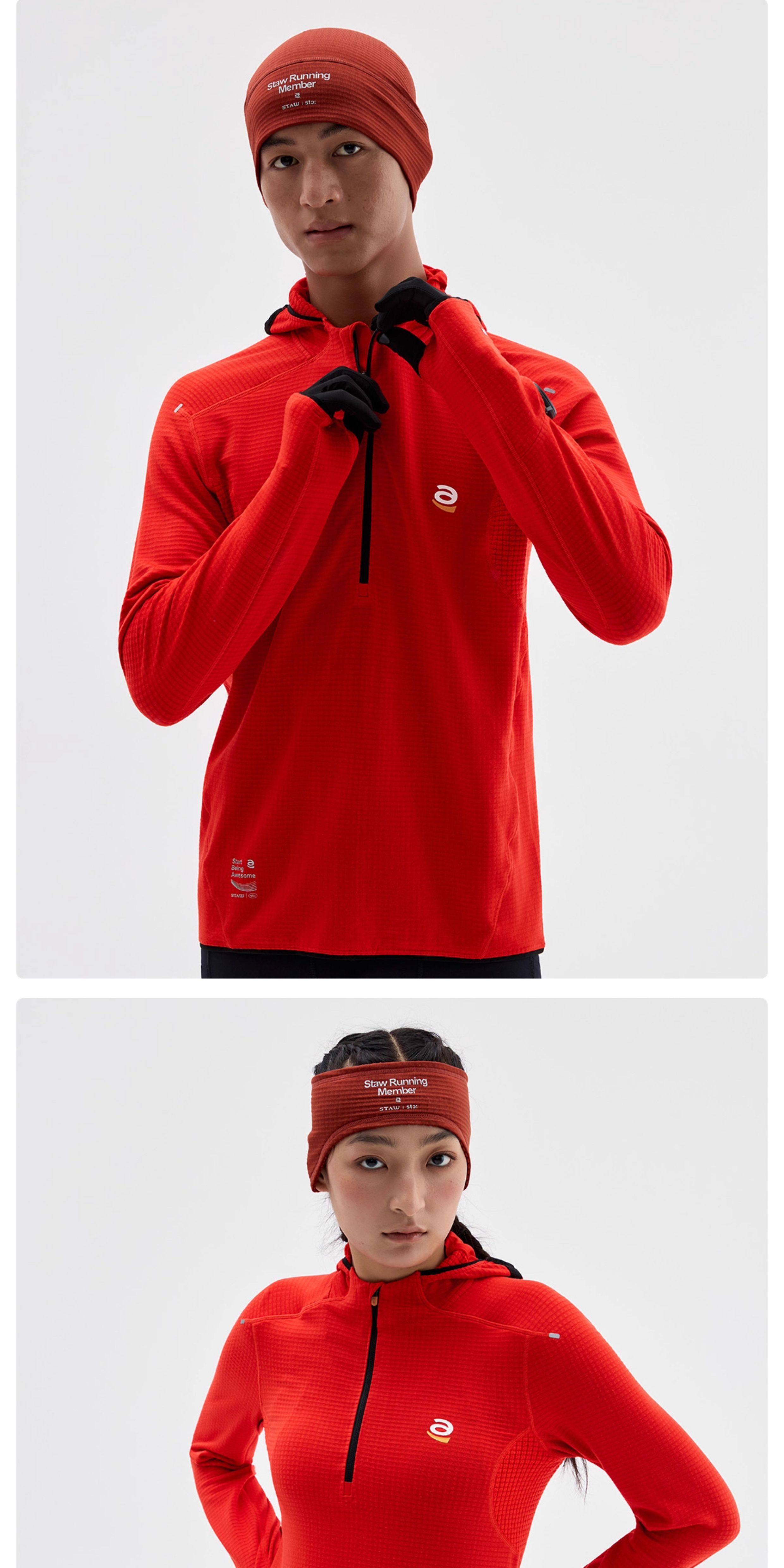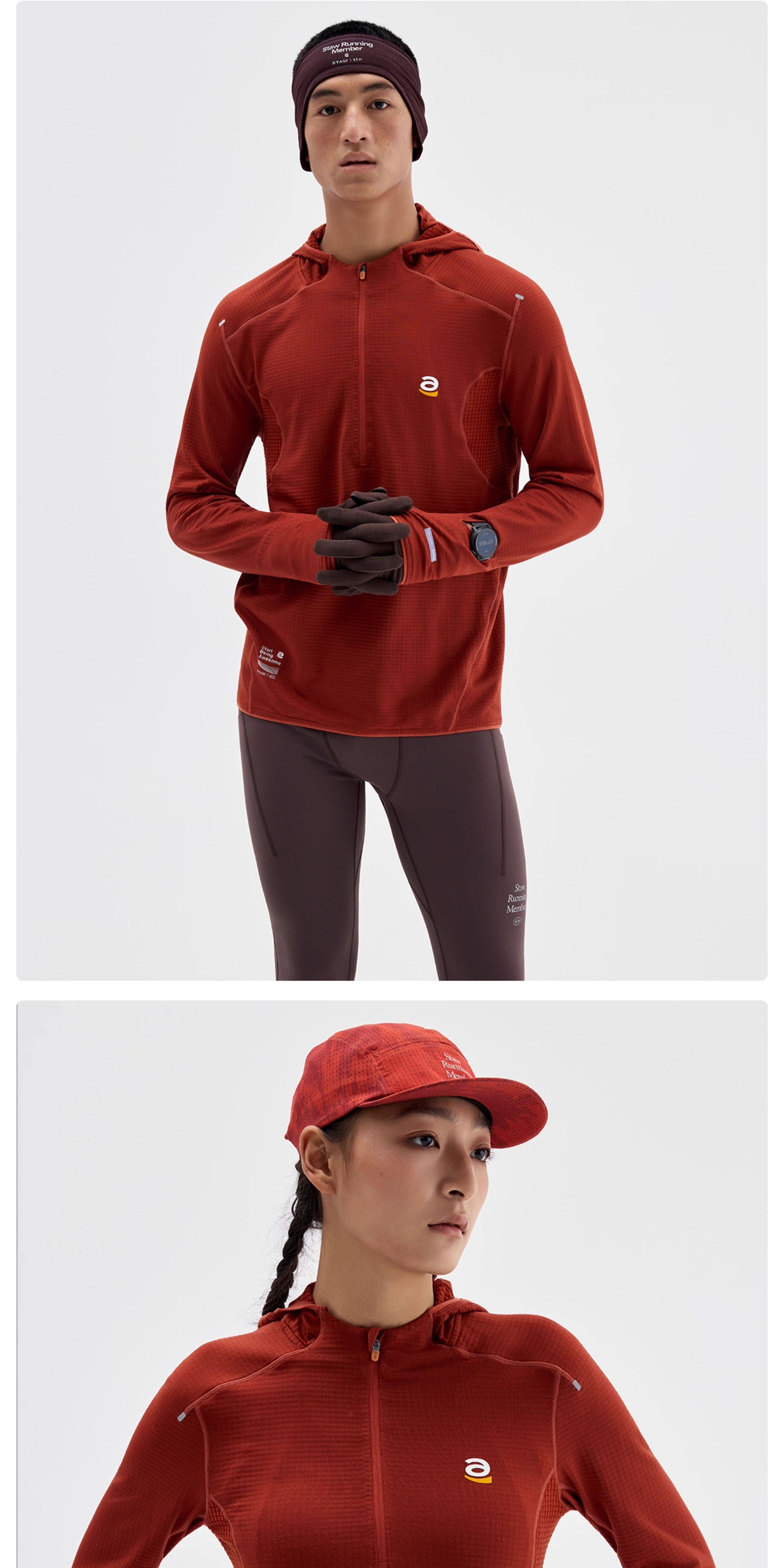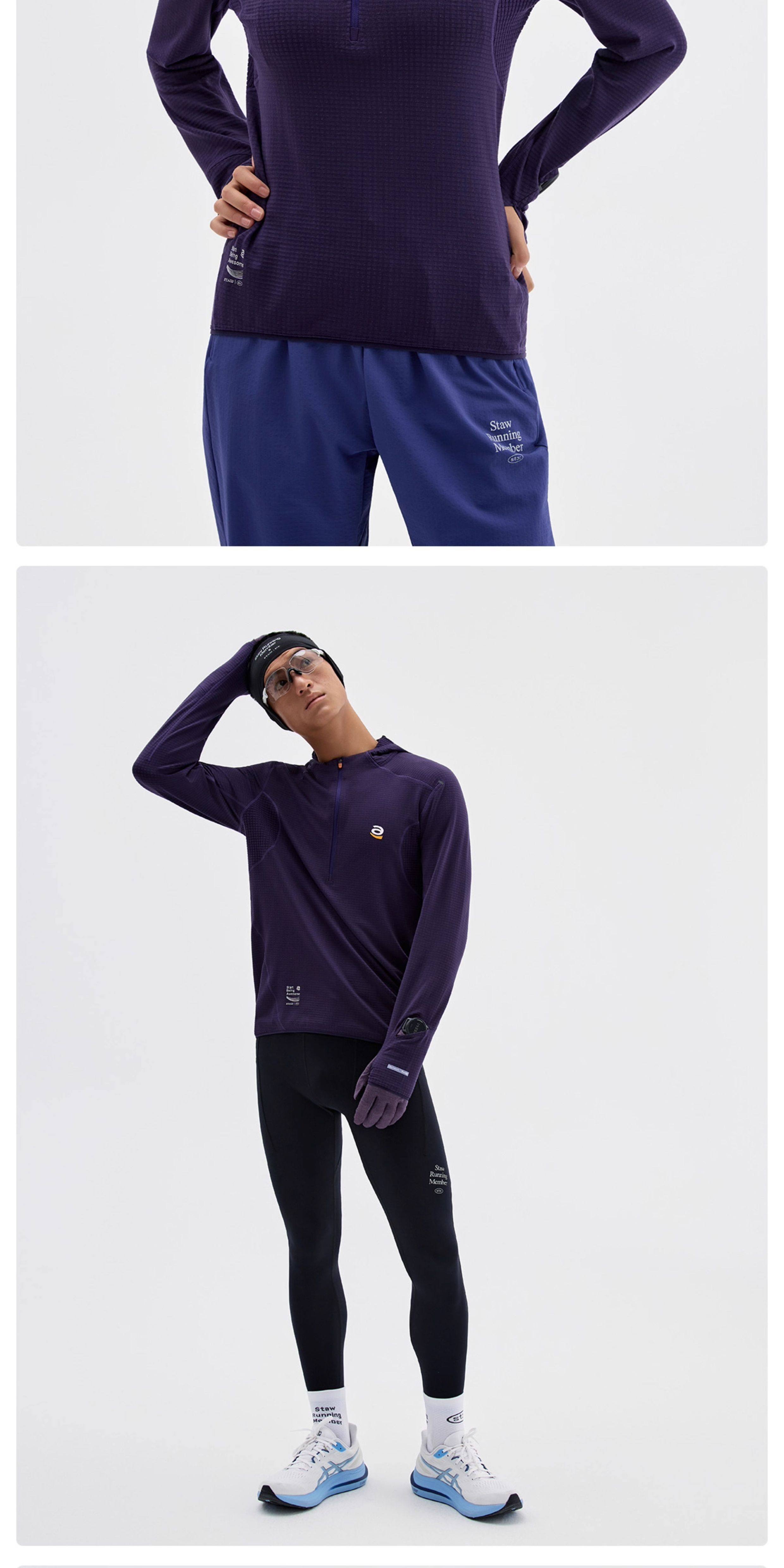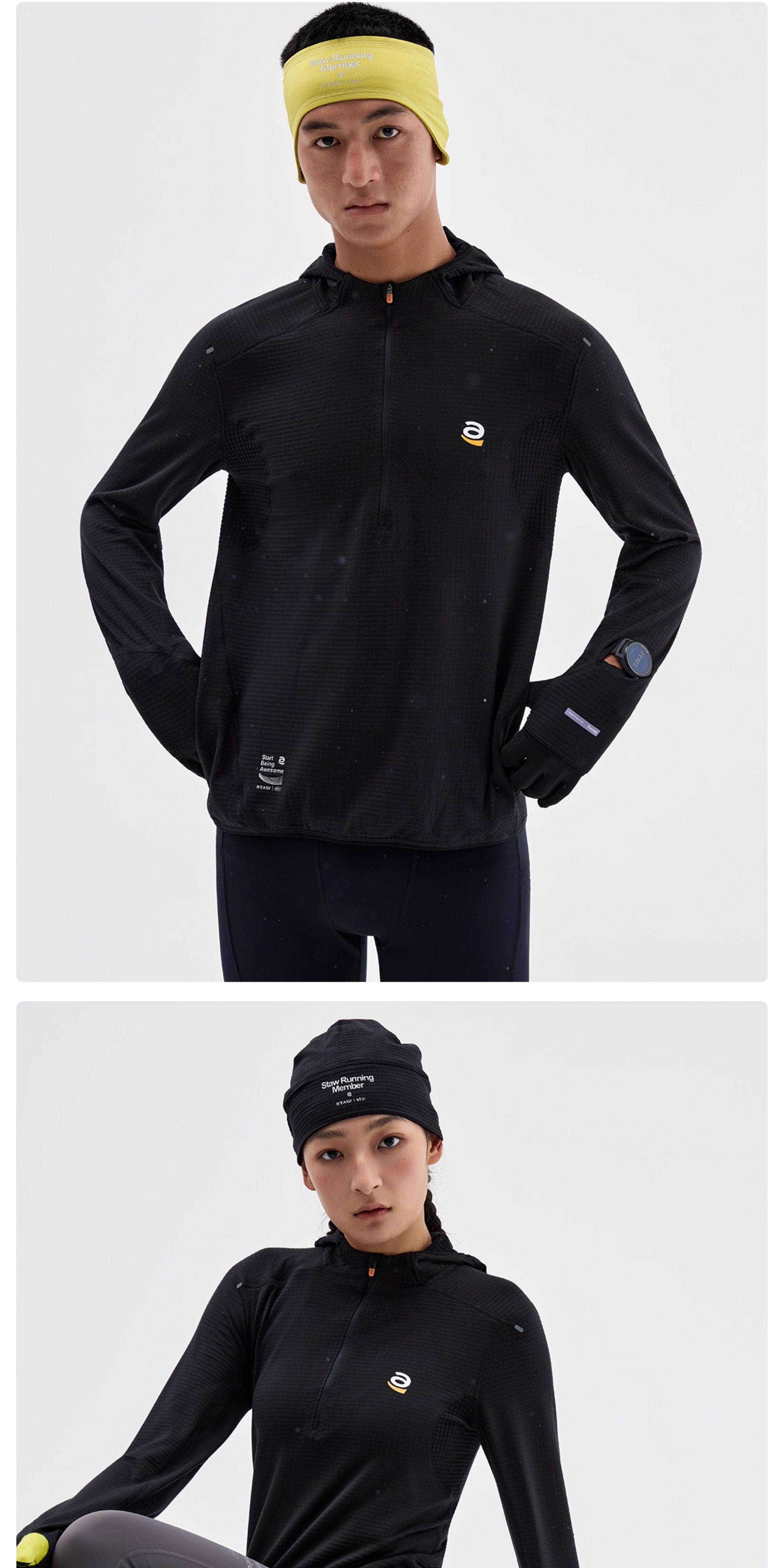 STAW세탁0도2.0기모후드런닝긴팔티셔츠남항균보온운동마라톤속건복T