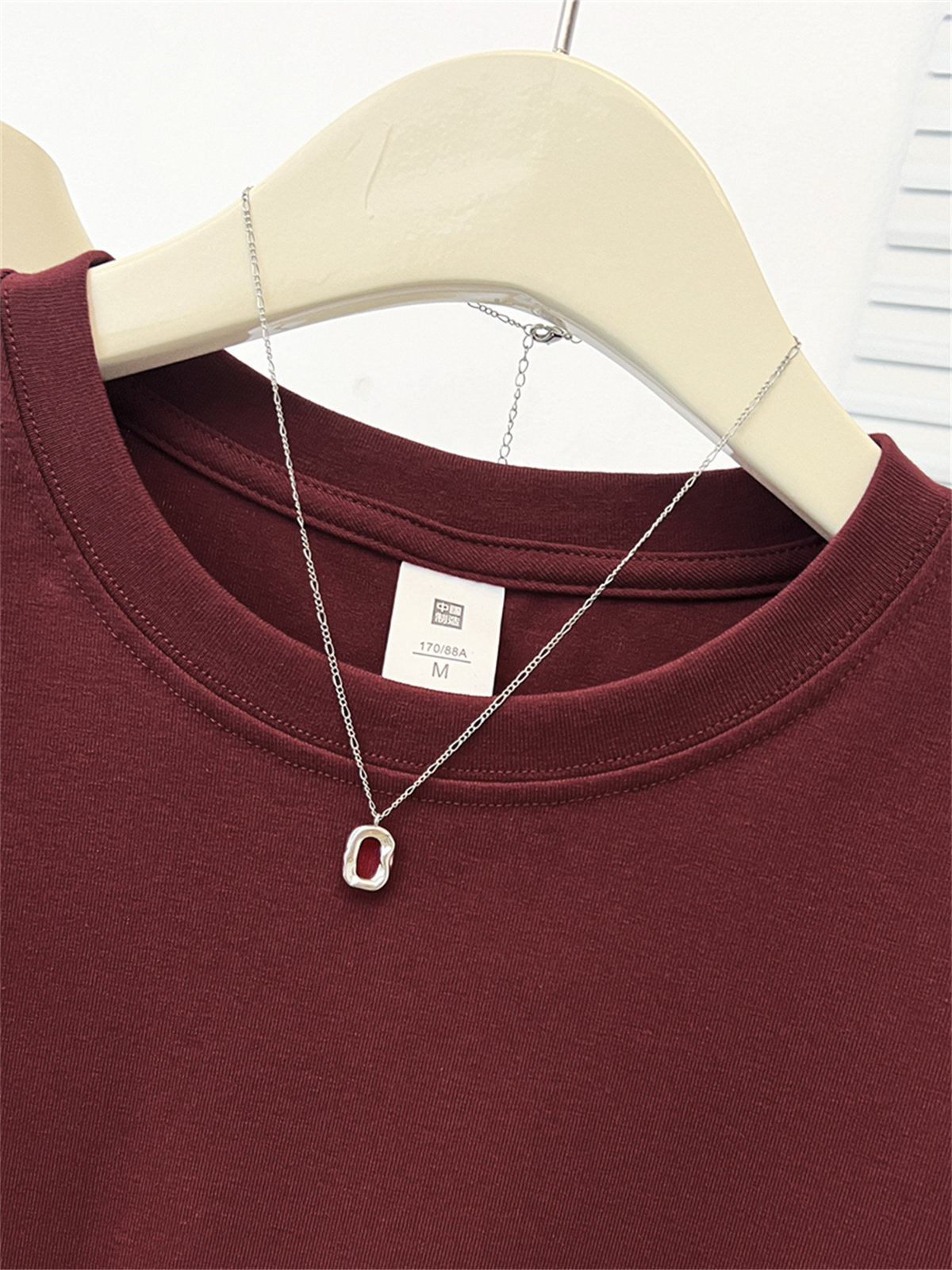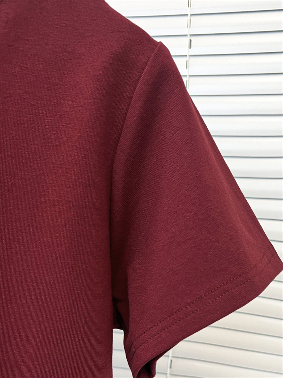 可爱卡通印花短袖t恤女2025新款夏季正肩设计感时尚酒红色上衣ins