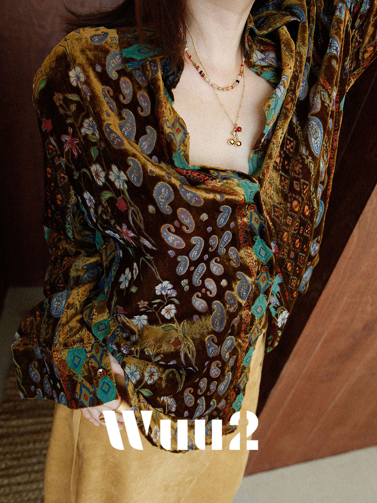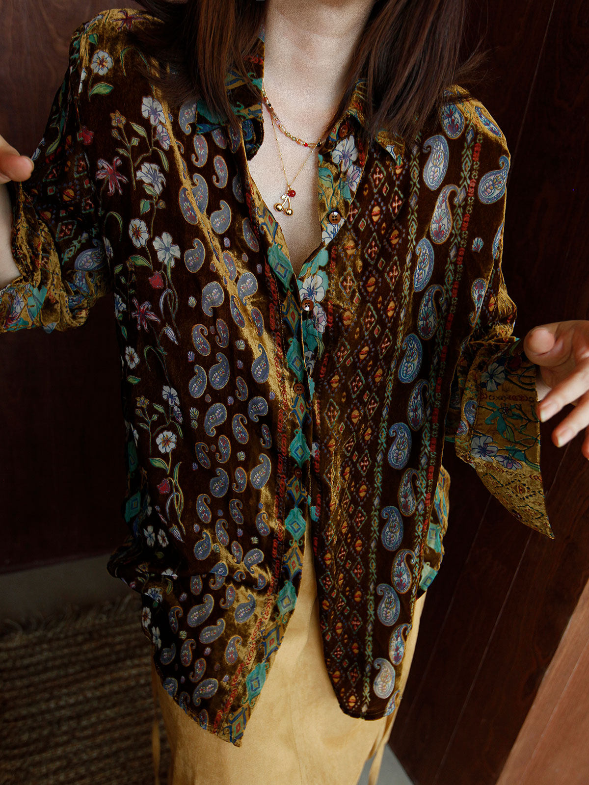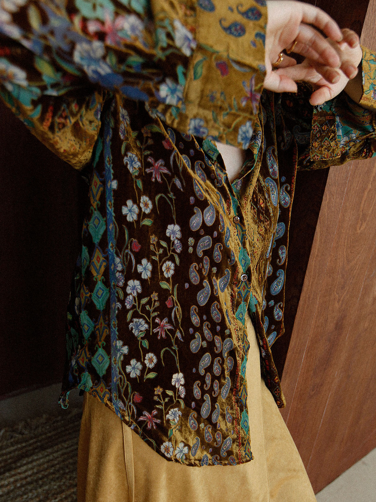 Wuu2 奎宁金汤力 绝美新中式丝绒花衬衫女独特小众复古高级感上衣