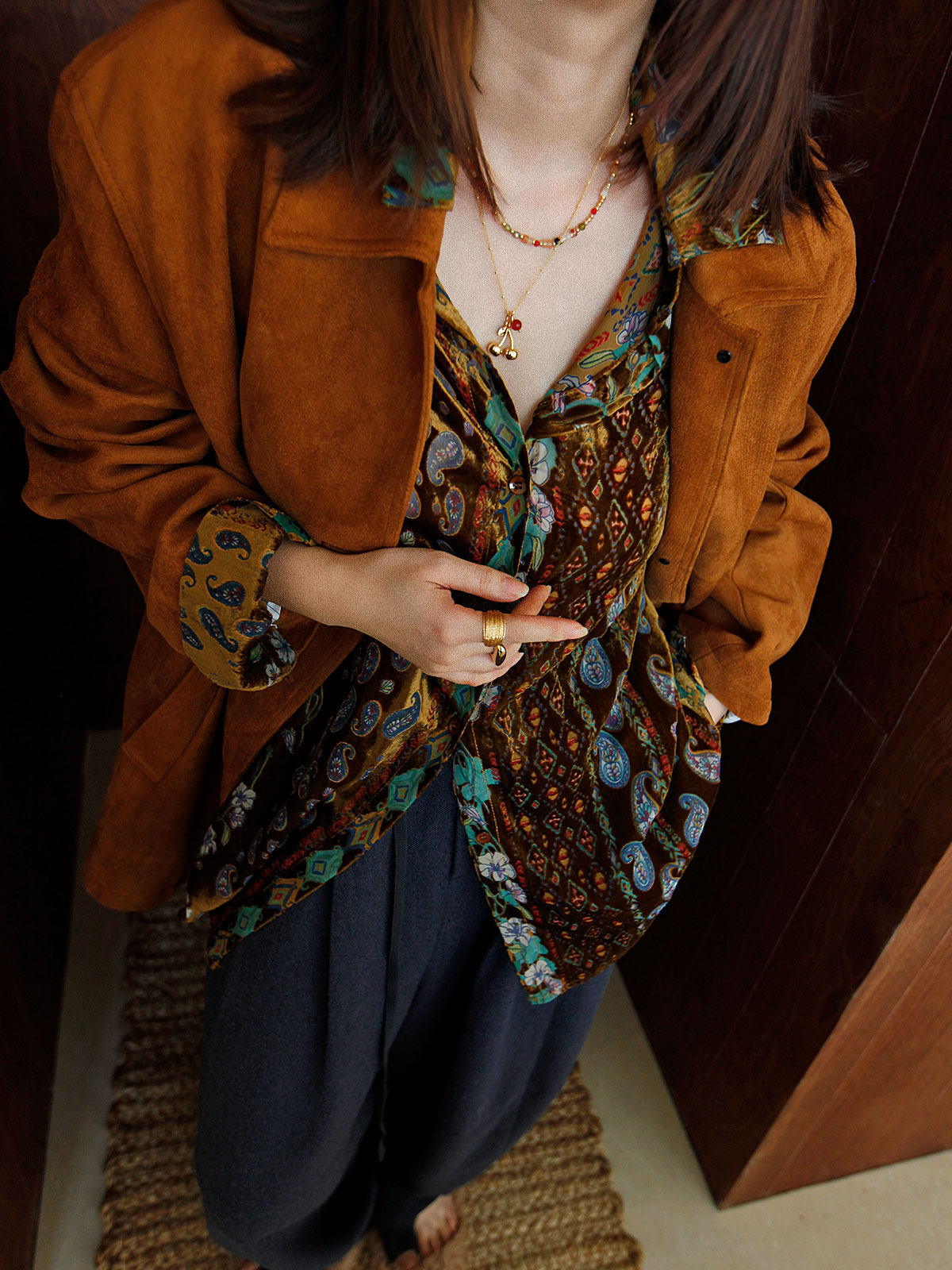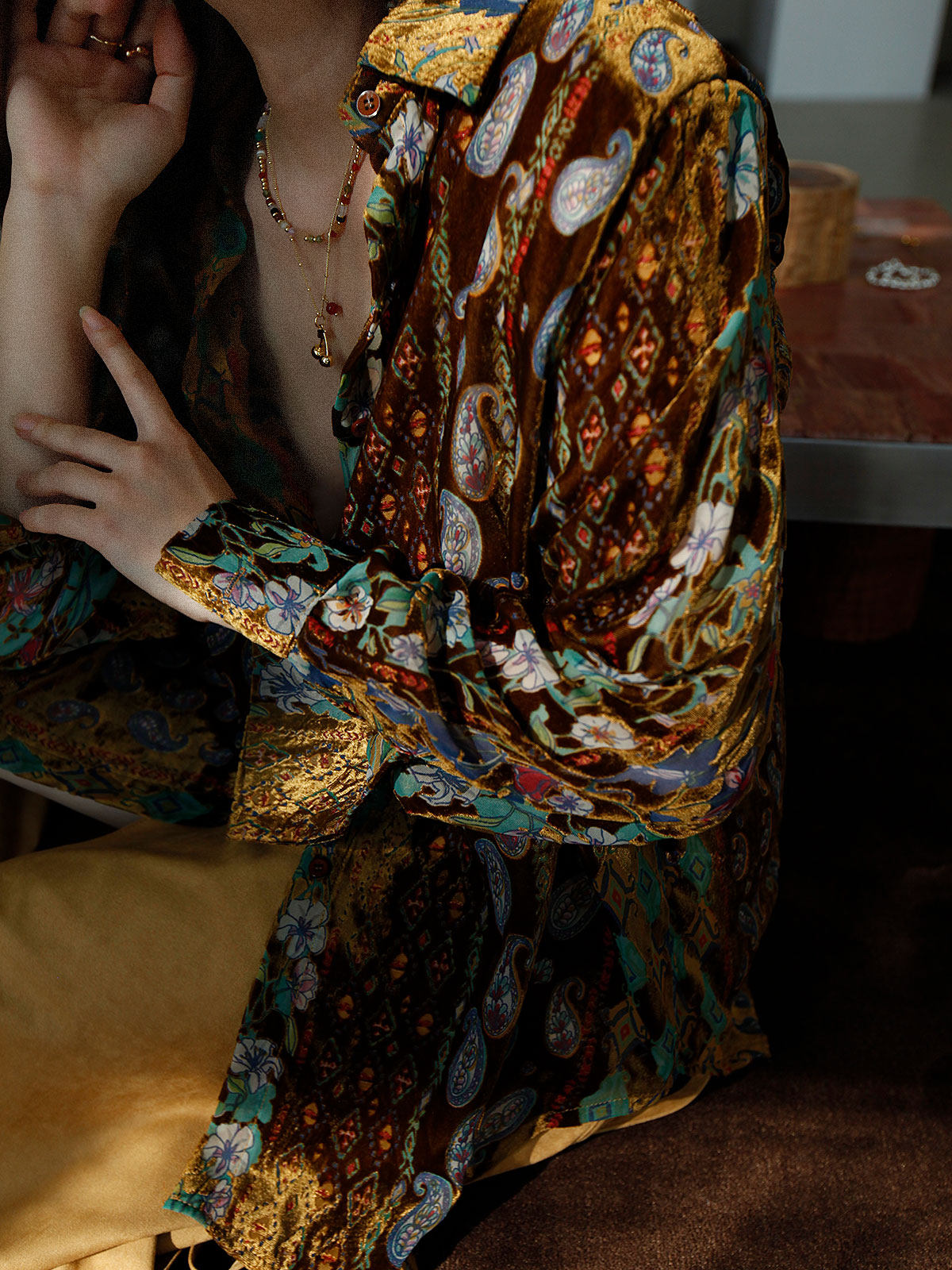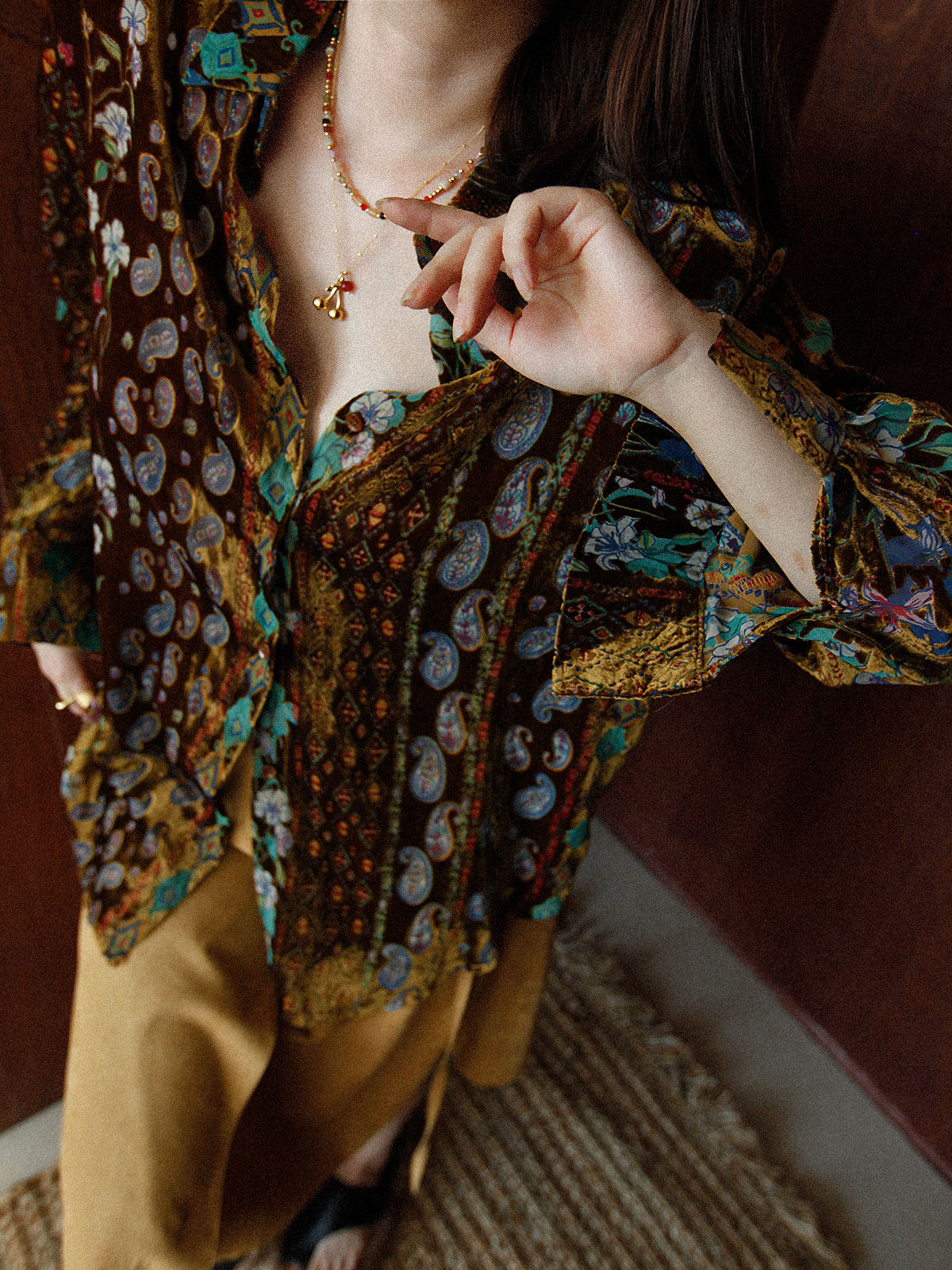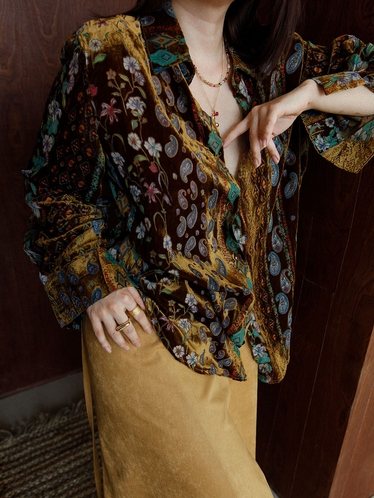 Wuu2 奎宁金汤力 绝美新中式丝绒花衬衫女独特小众复古高级感上衣