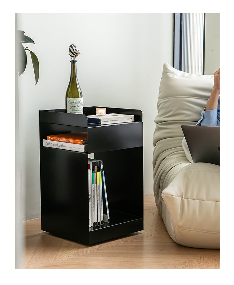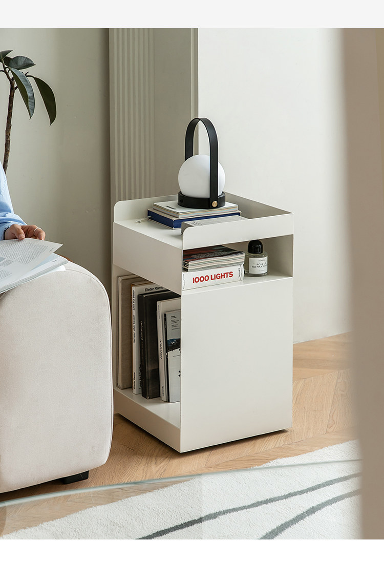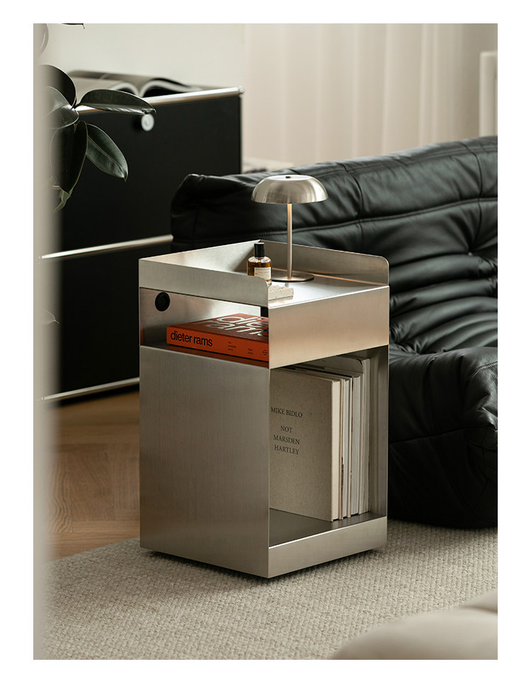 可移动沙发边几客厅家用卧室中古床头柜沙发收纳边柜不锈钢色角几