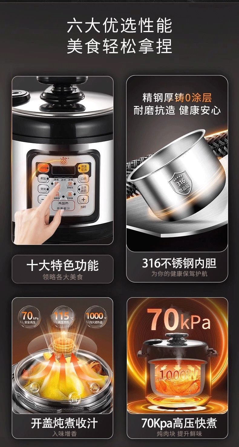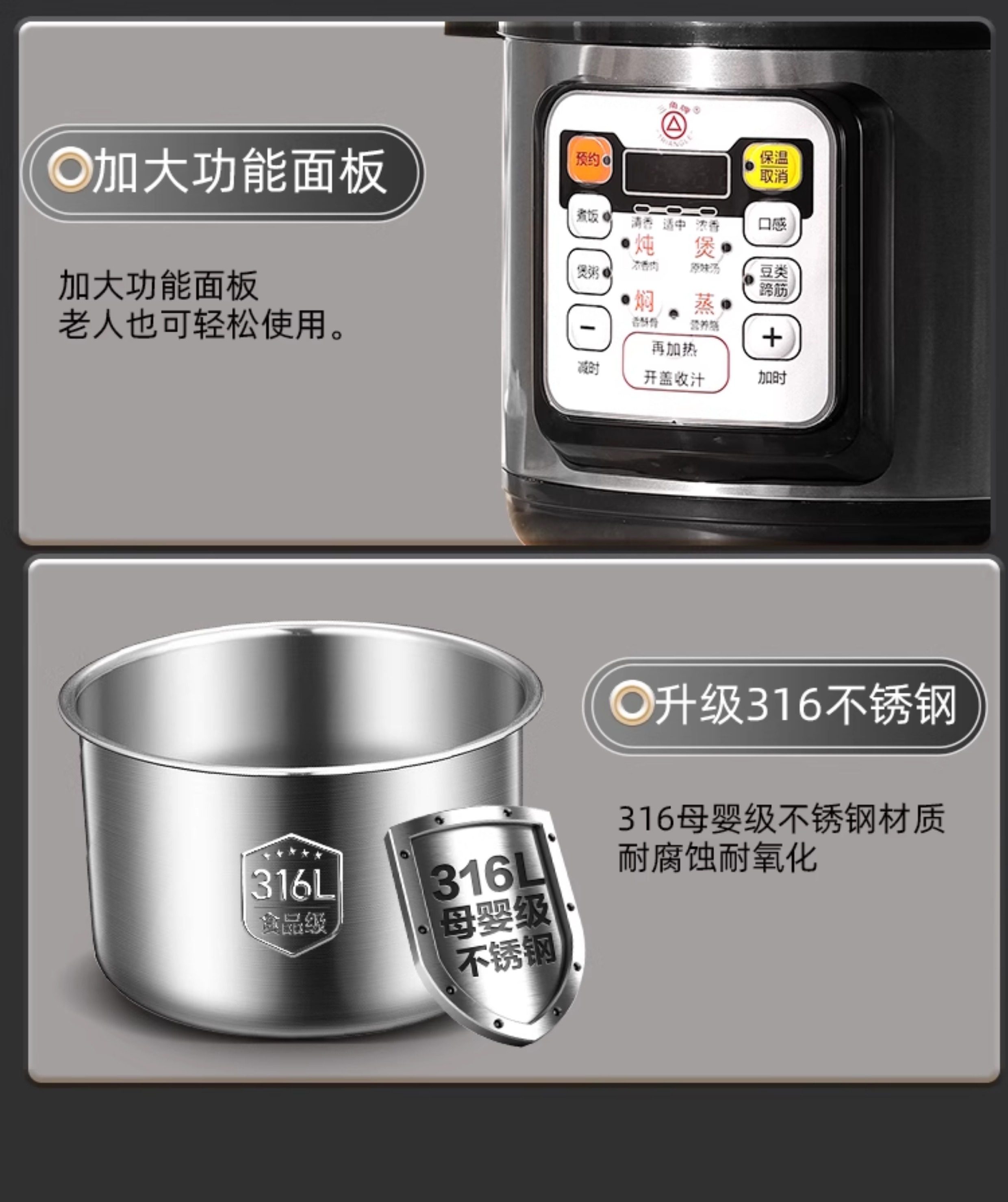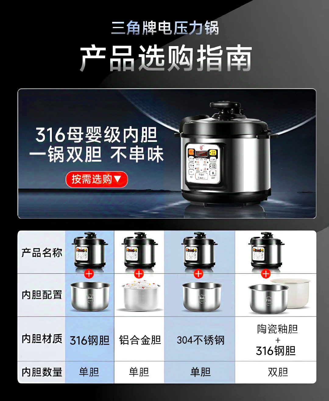 三角牌电压力锅 蒸煮炖煲多功能电锅 316不锈钢电压锅 微电脑控制电压锅 多功能家用电压力锅