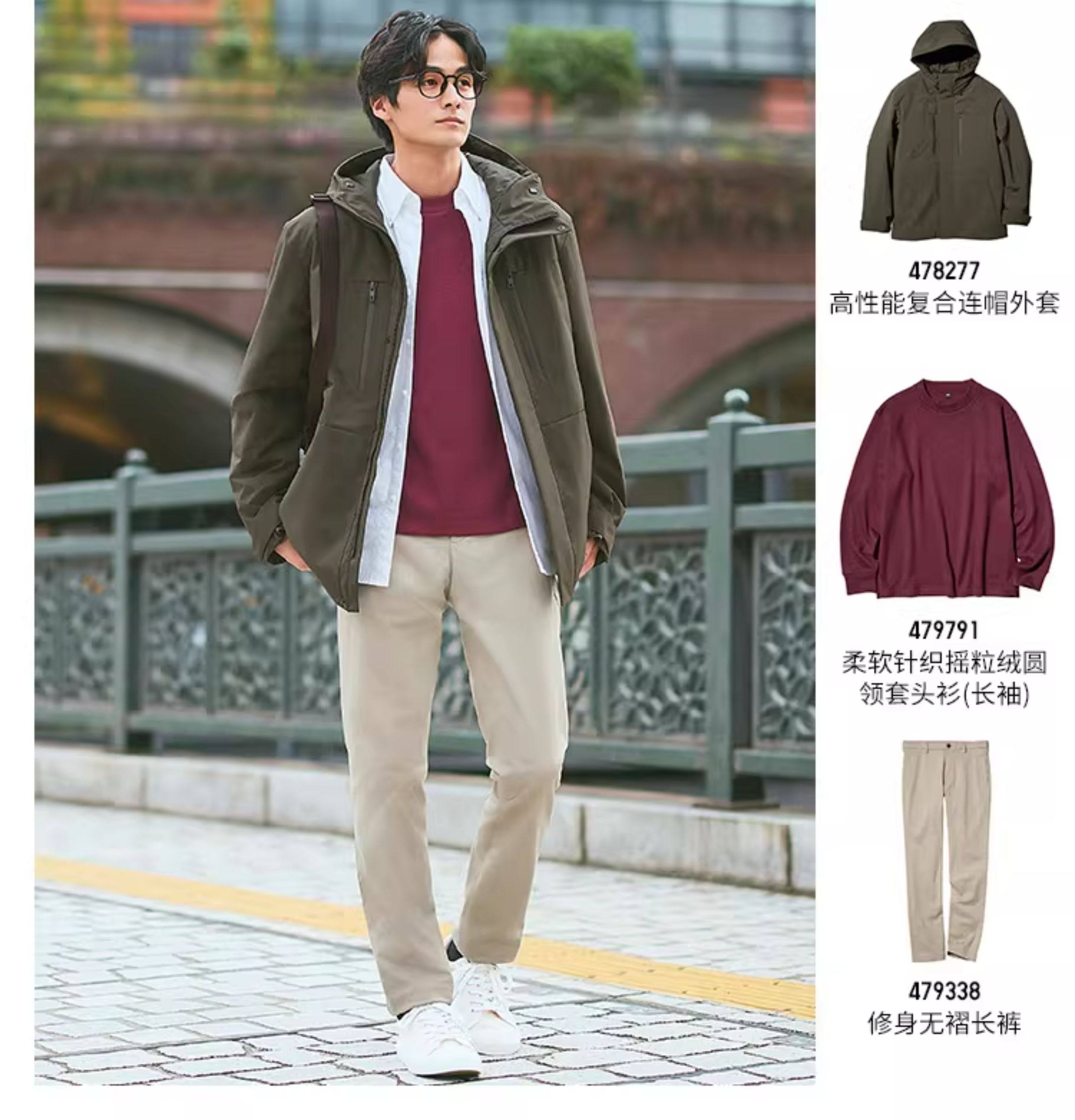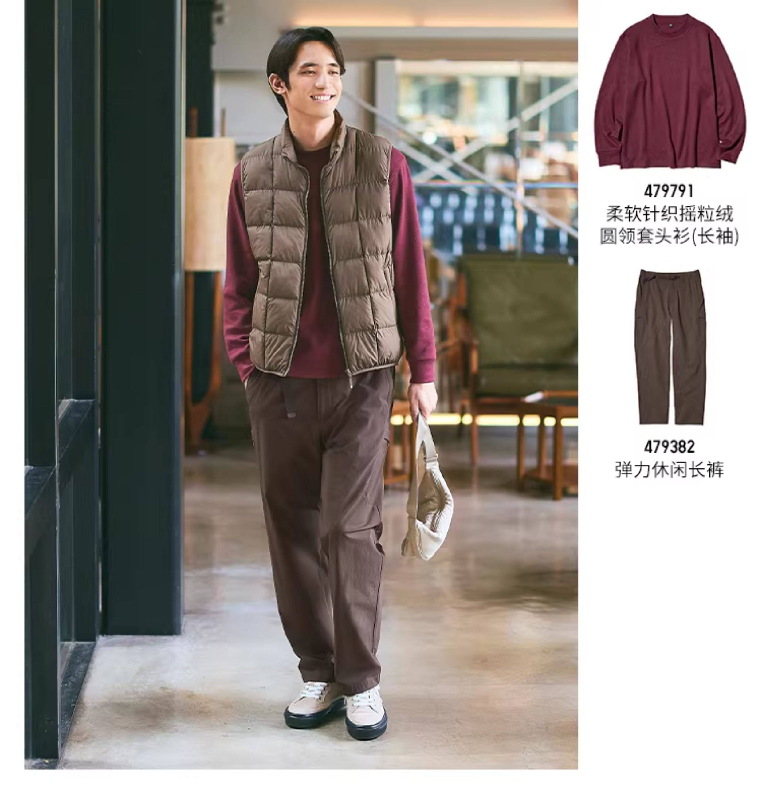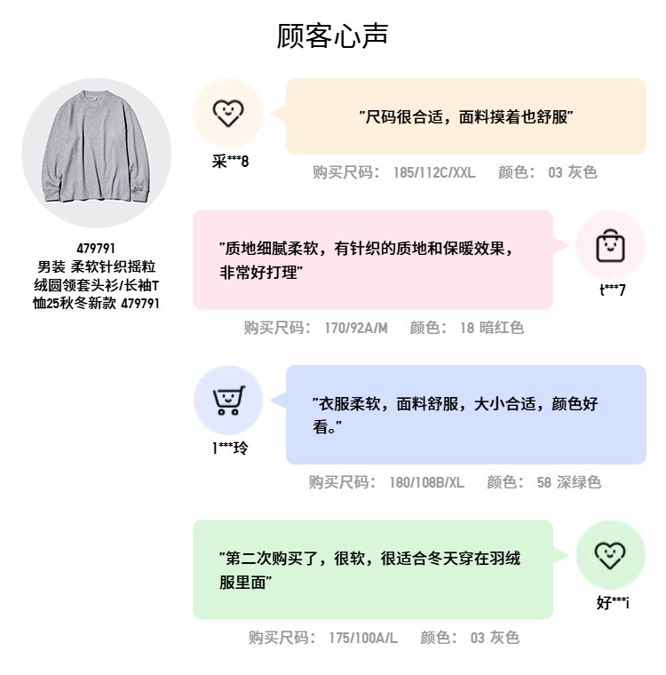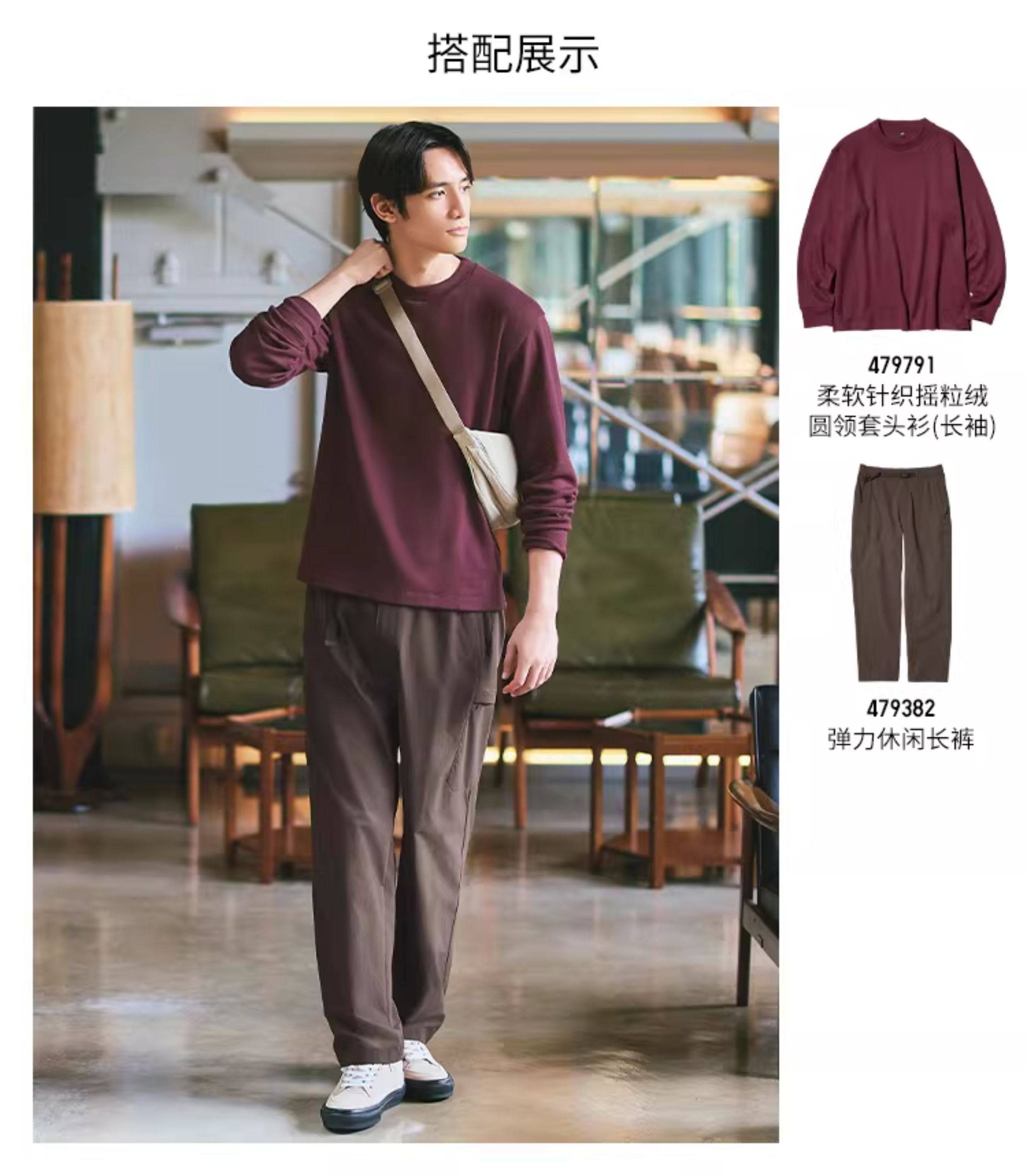 Uniqlo男装柔软针织摇粒绒圆领套头衫/长袖T恤479791