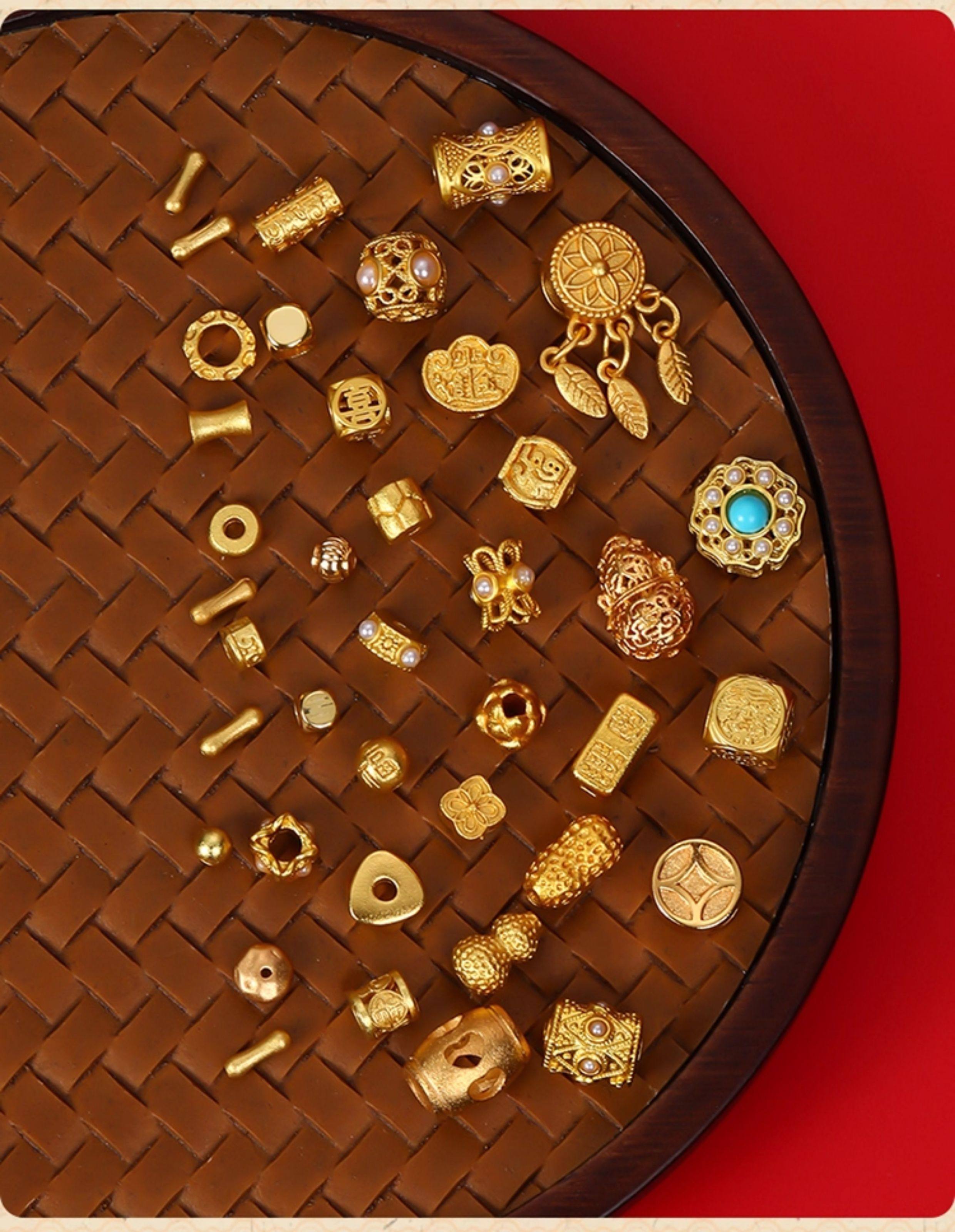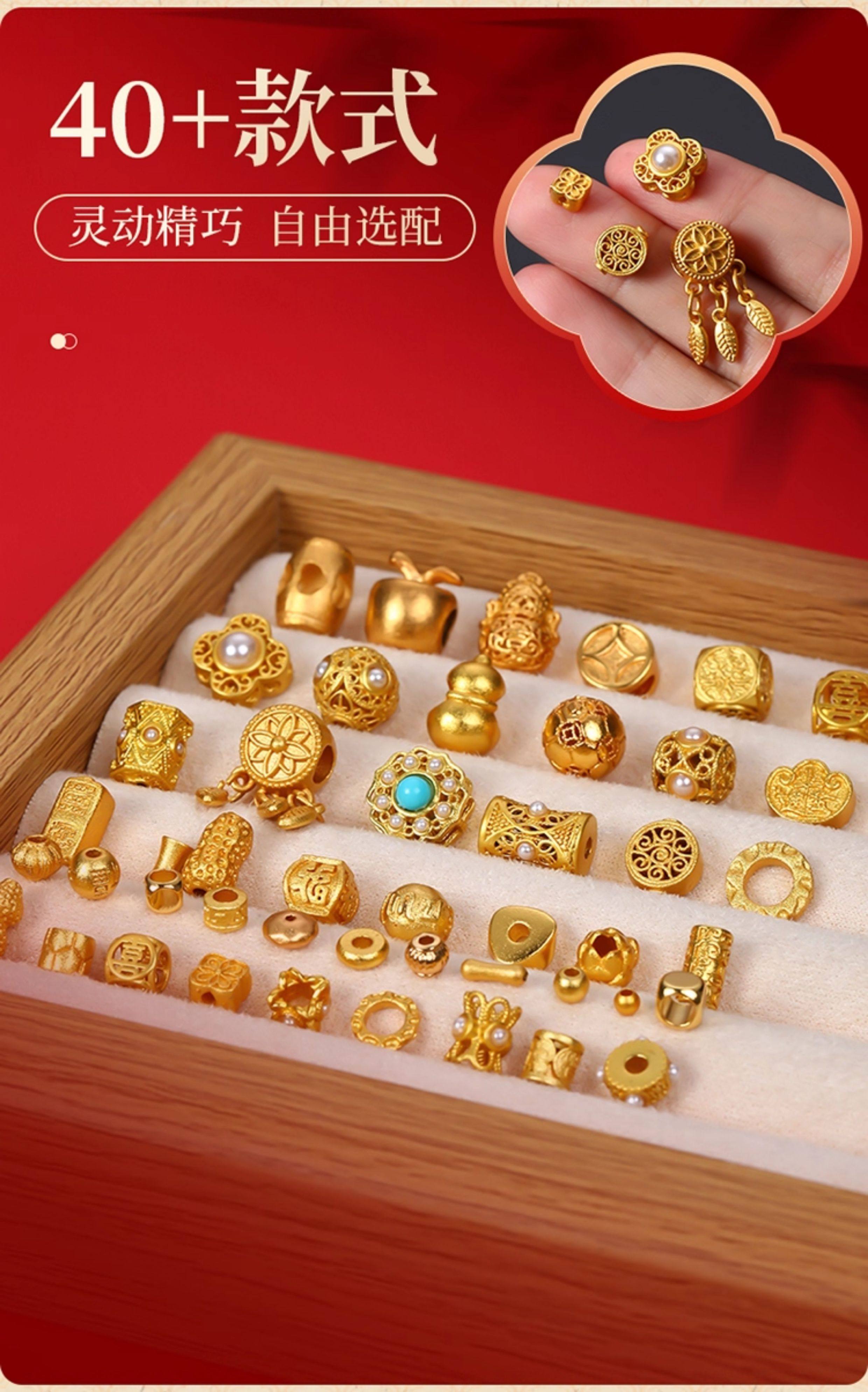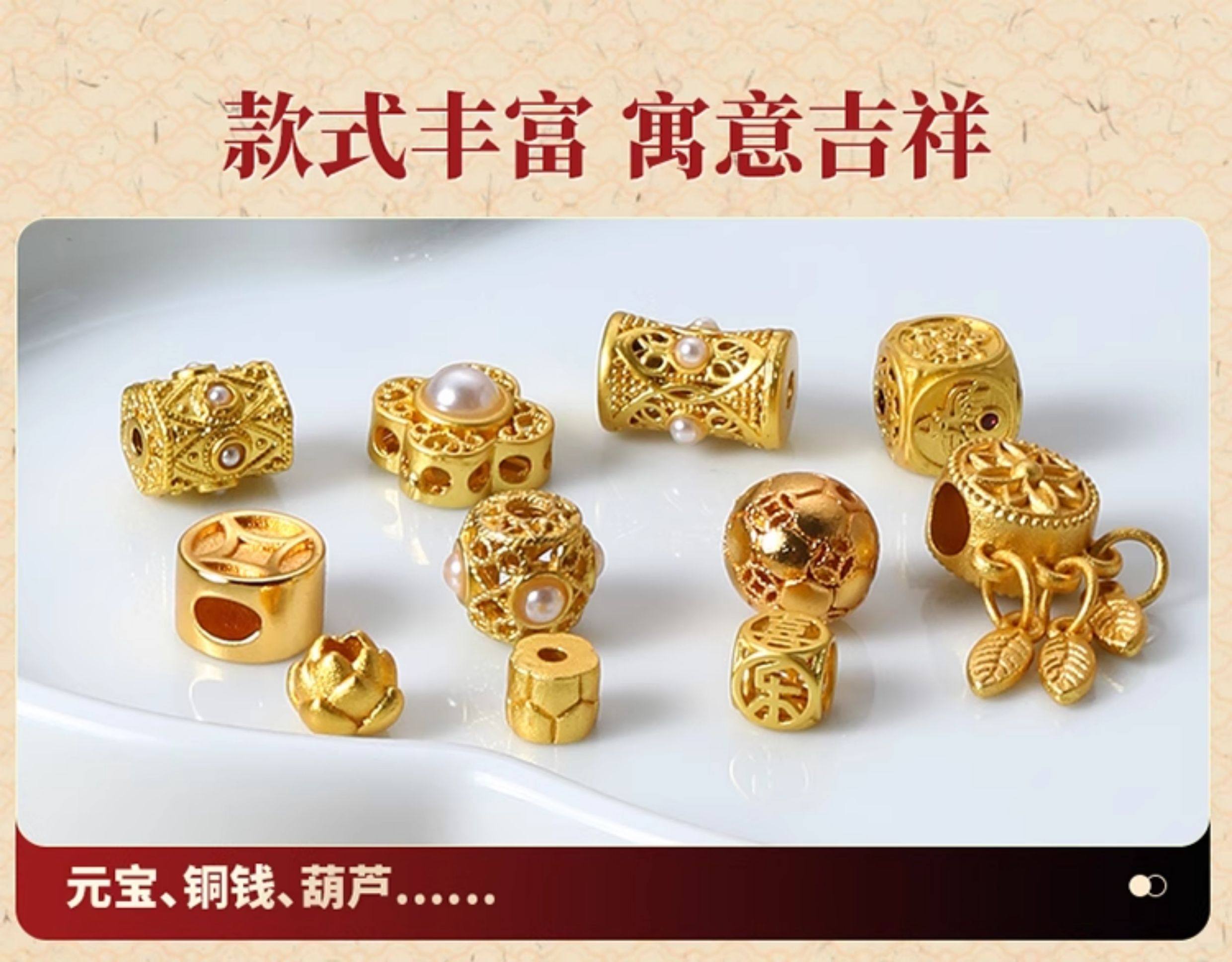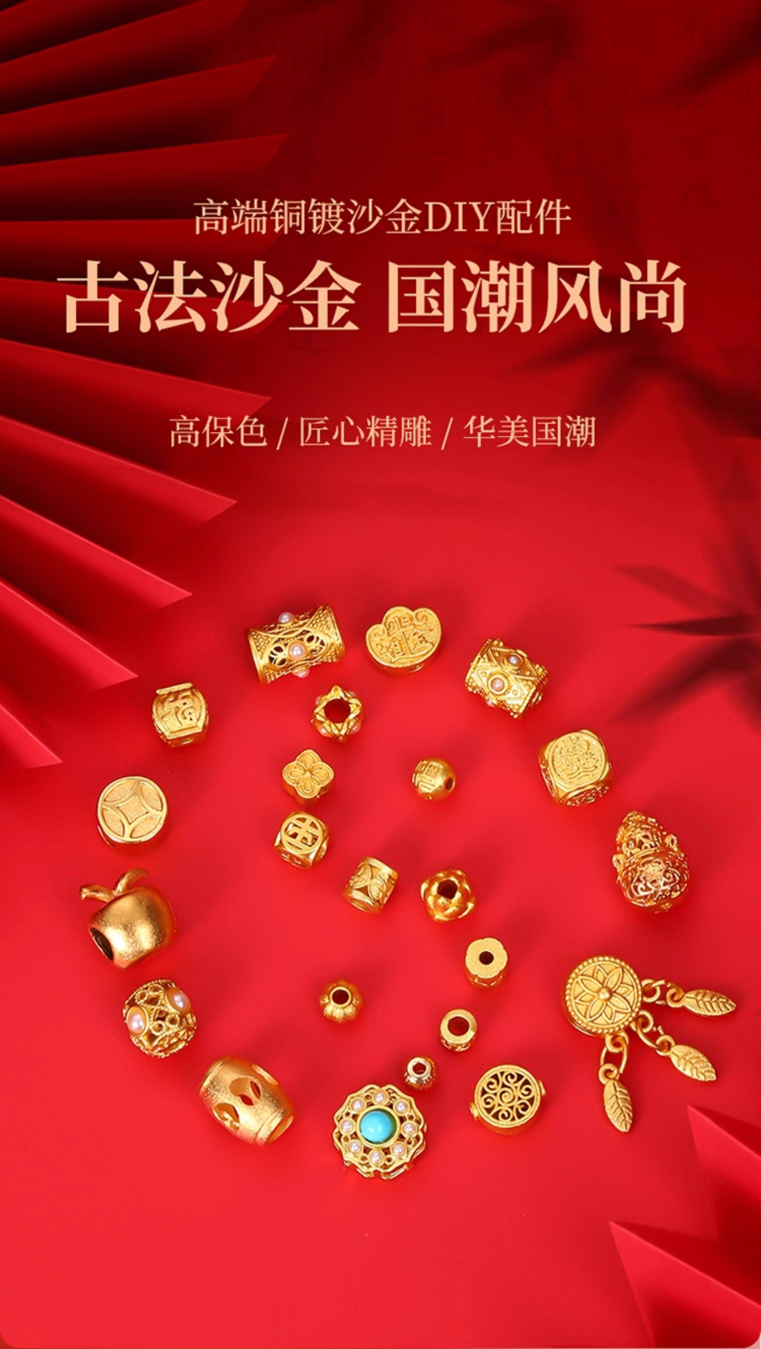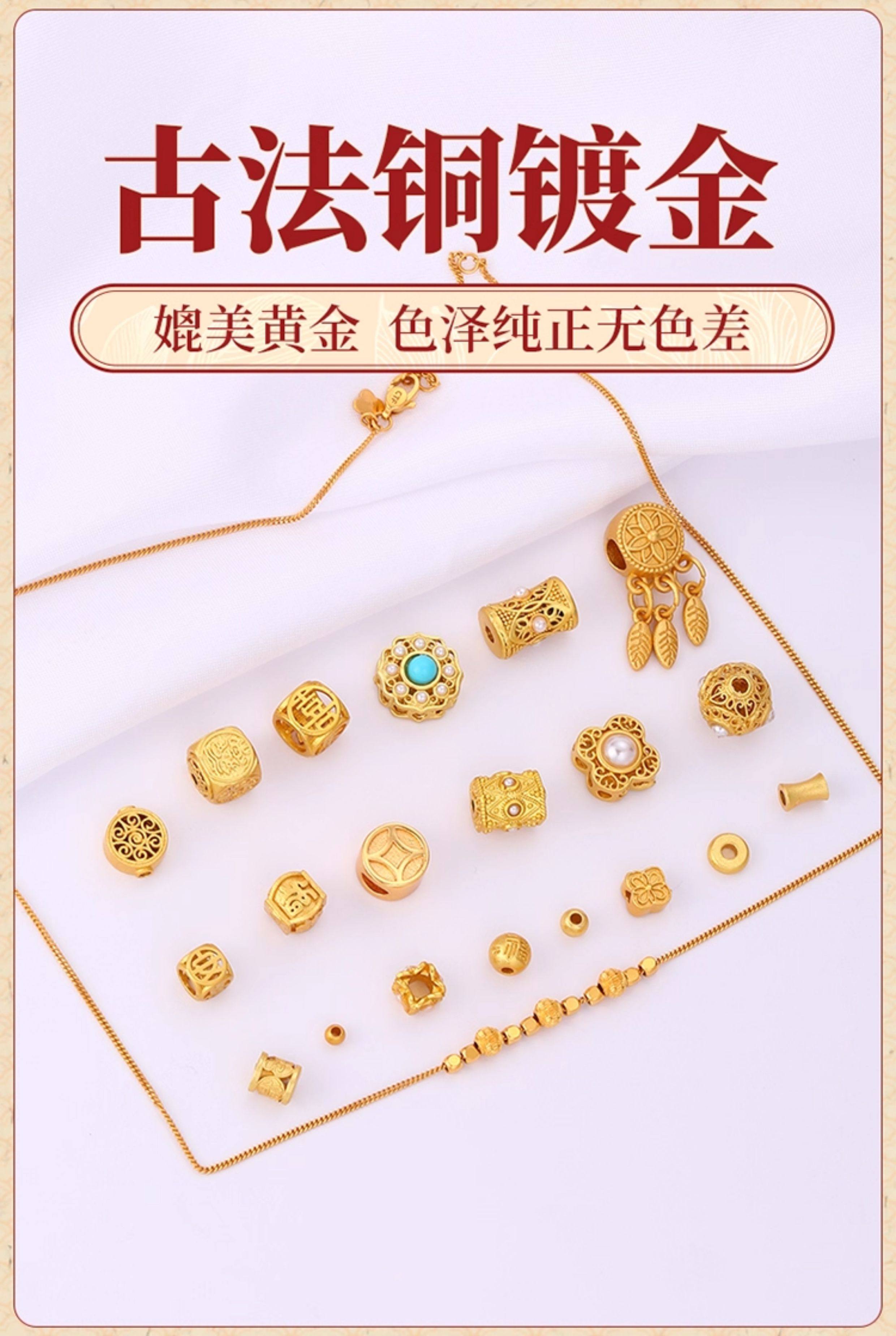 沙金配件18k不掉色金珠diy手串手錬珠子串珠隔珠散珠配珠材料配饰
