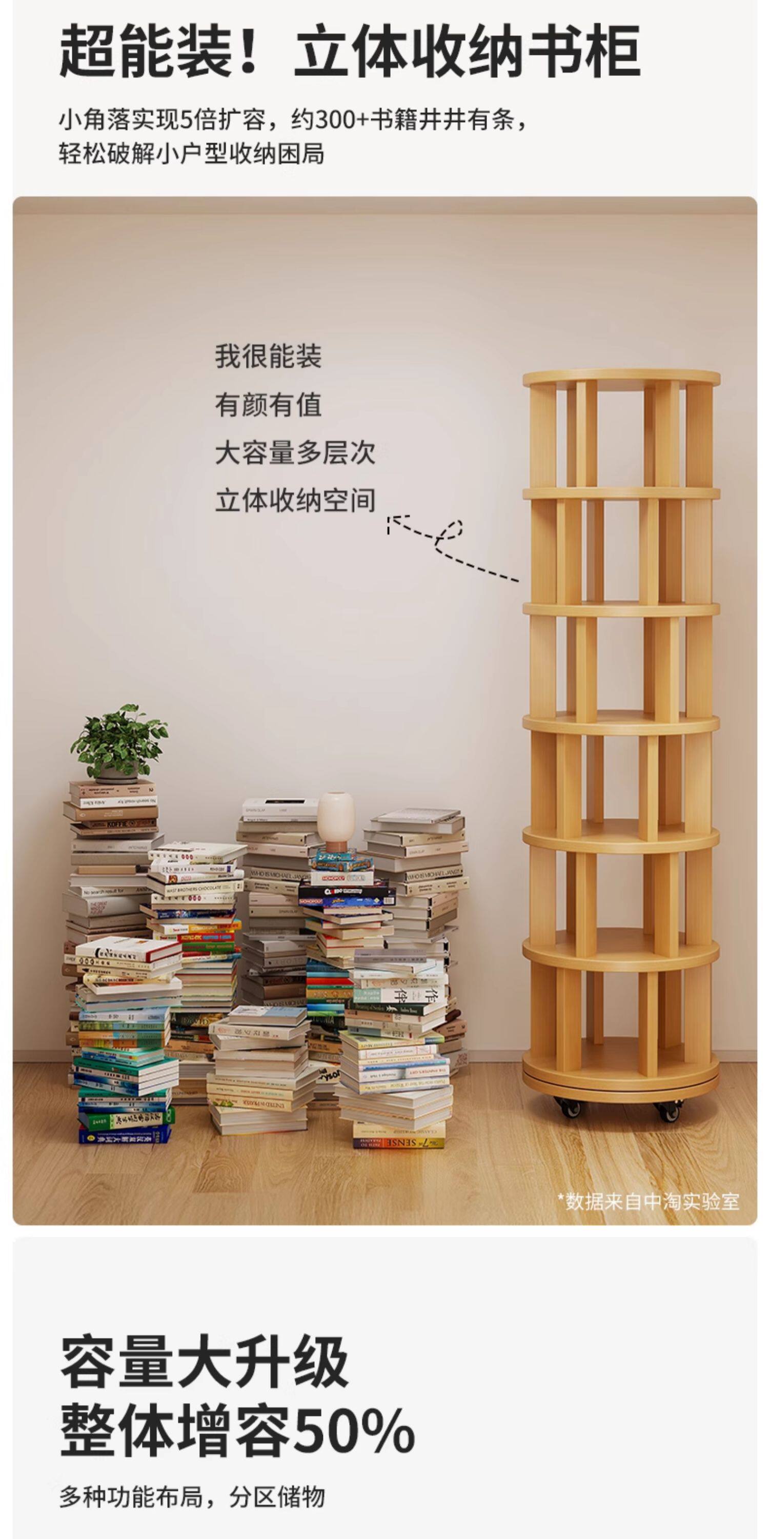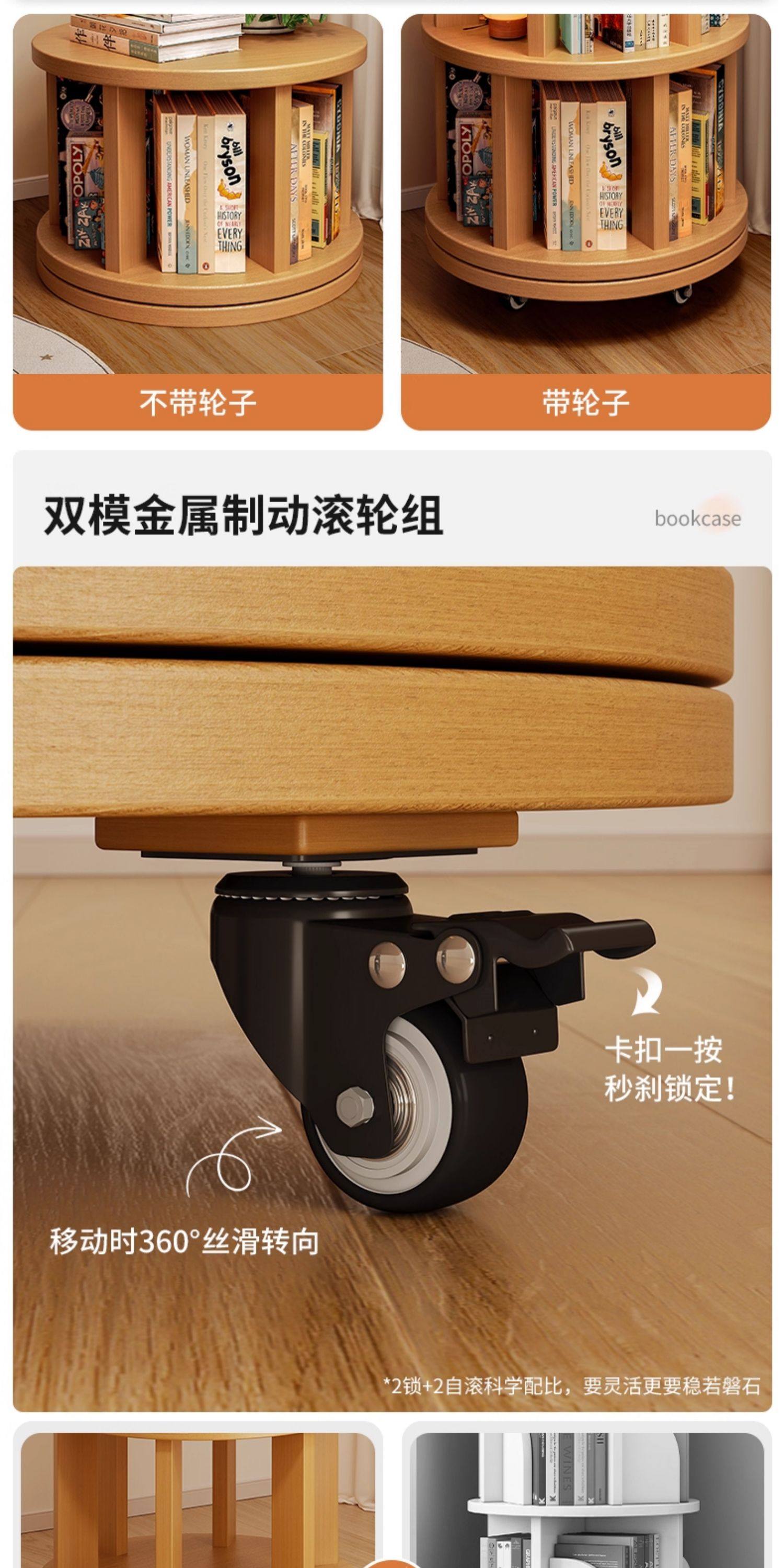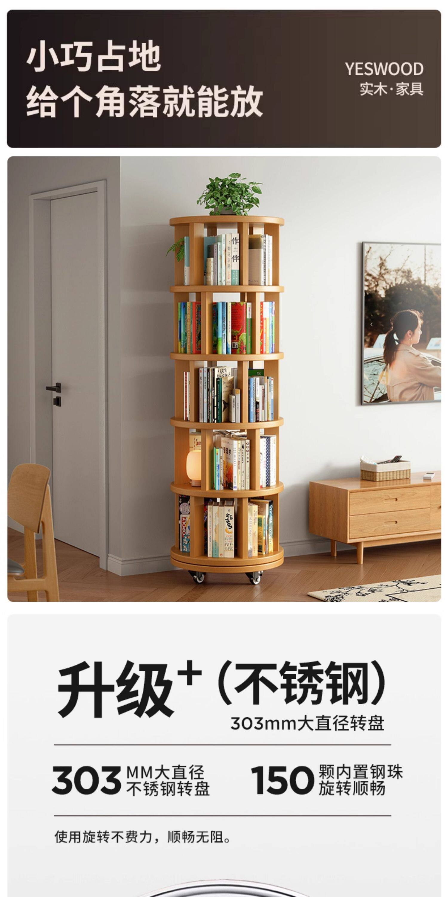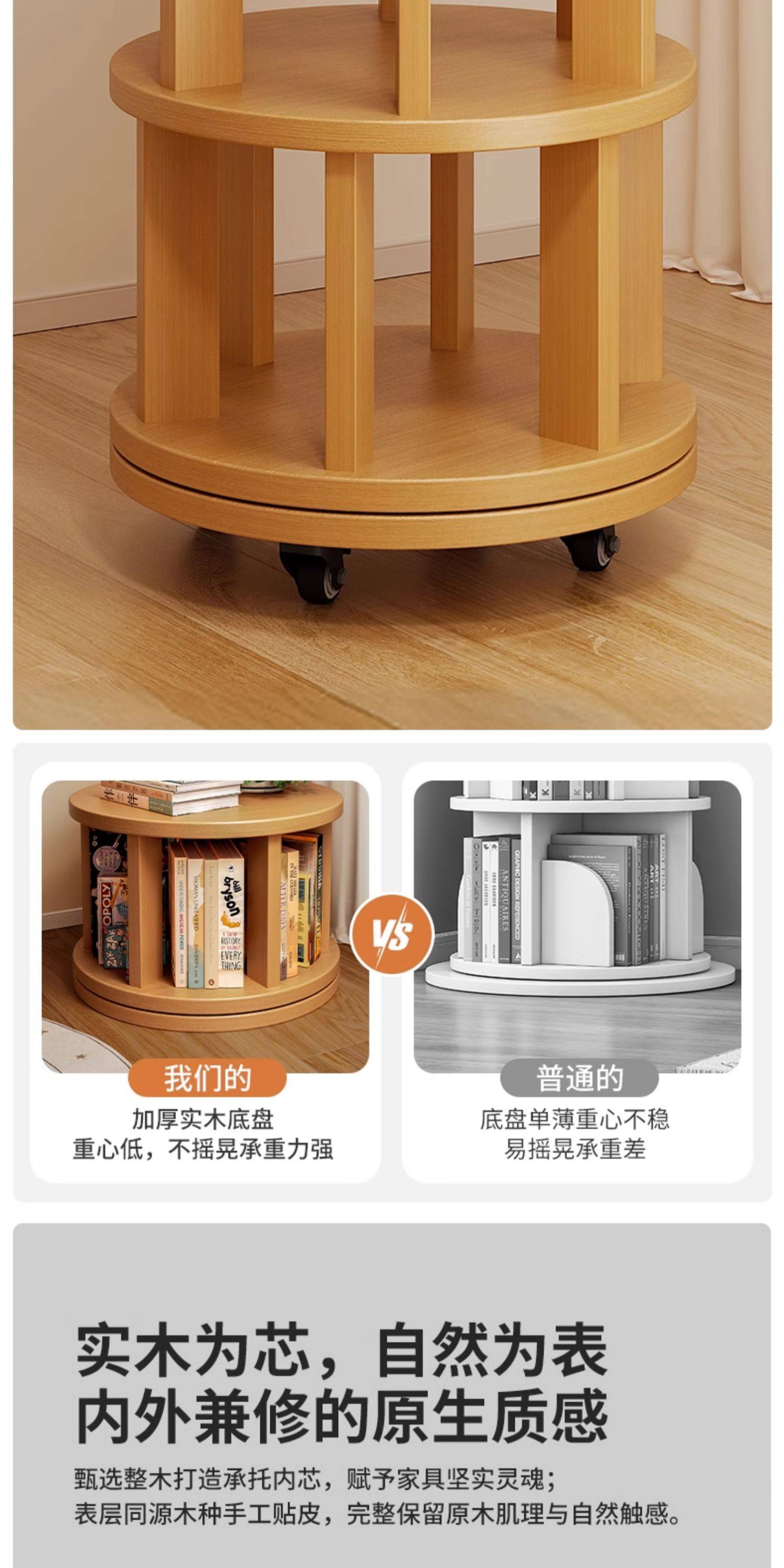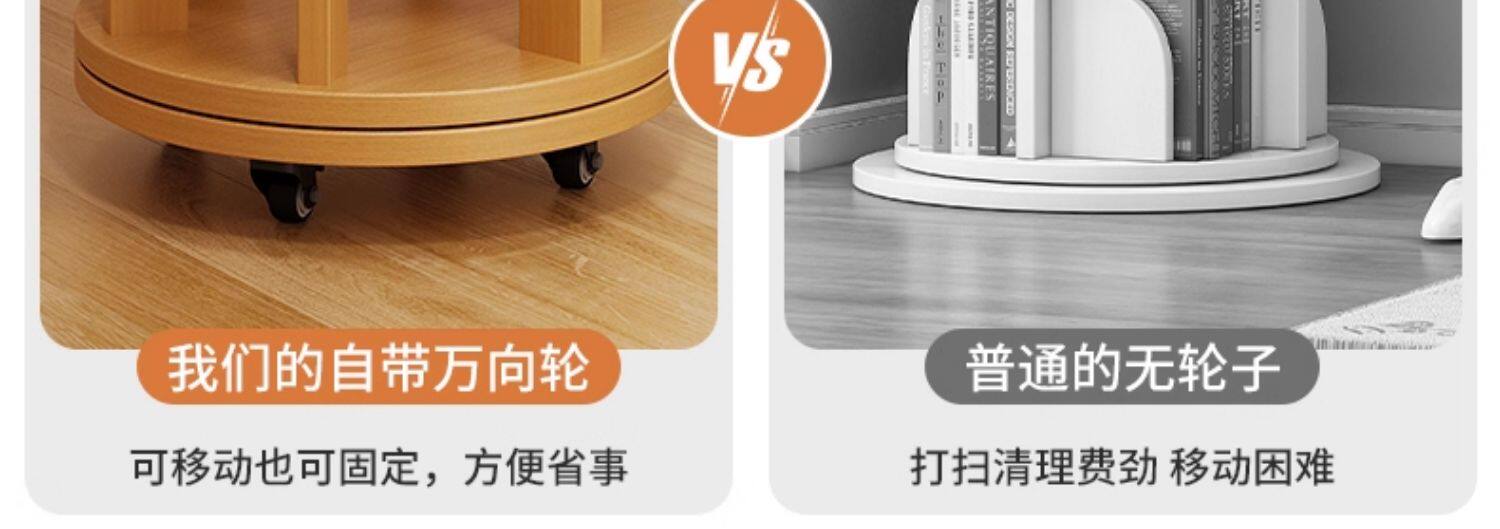 实木旋转书架360度书柜置物架落地一体靠墙可移动转角儿童小窄柜