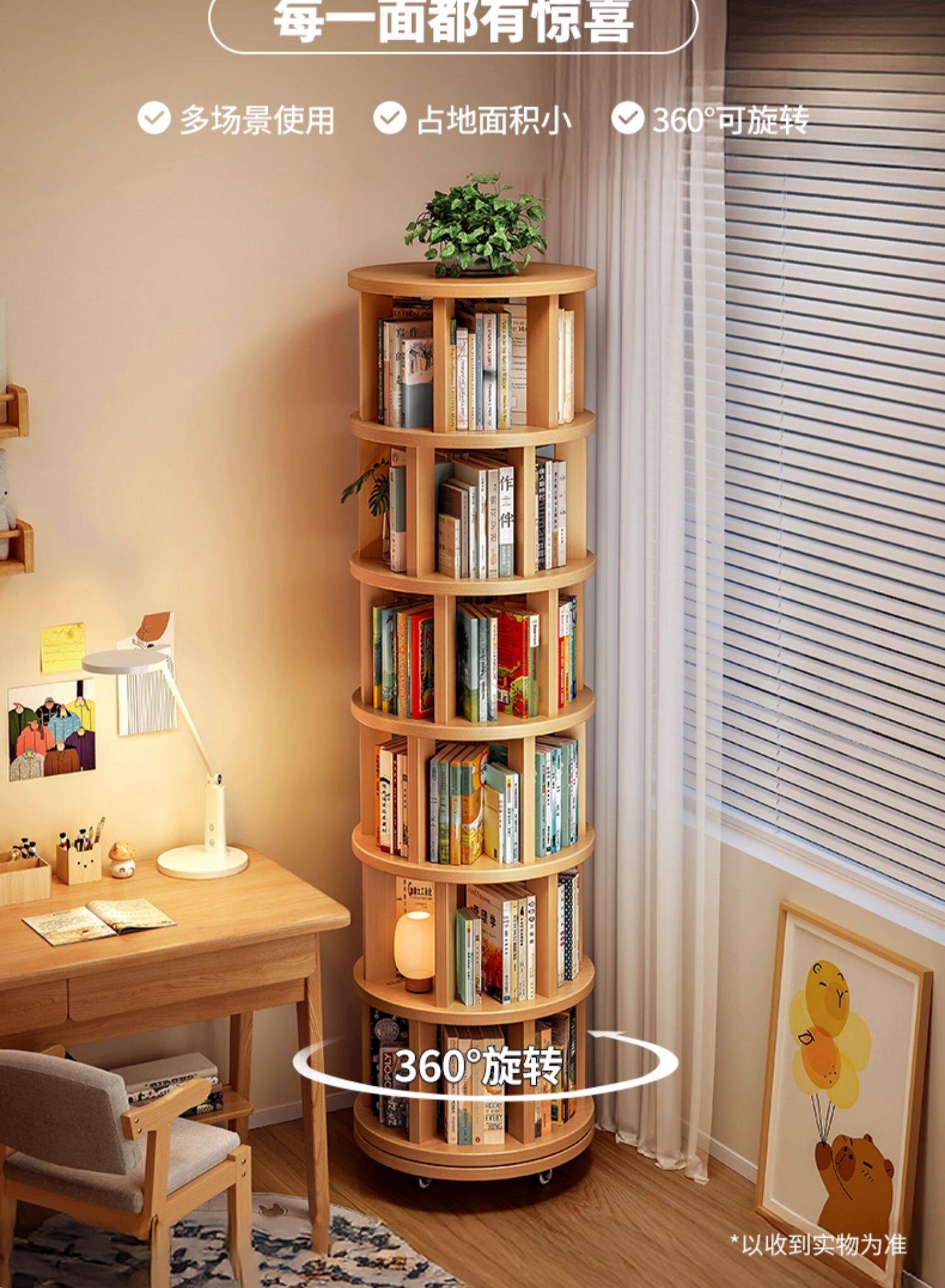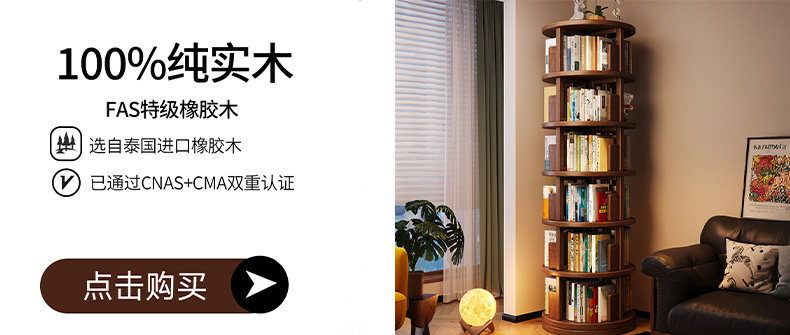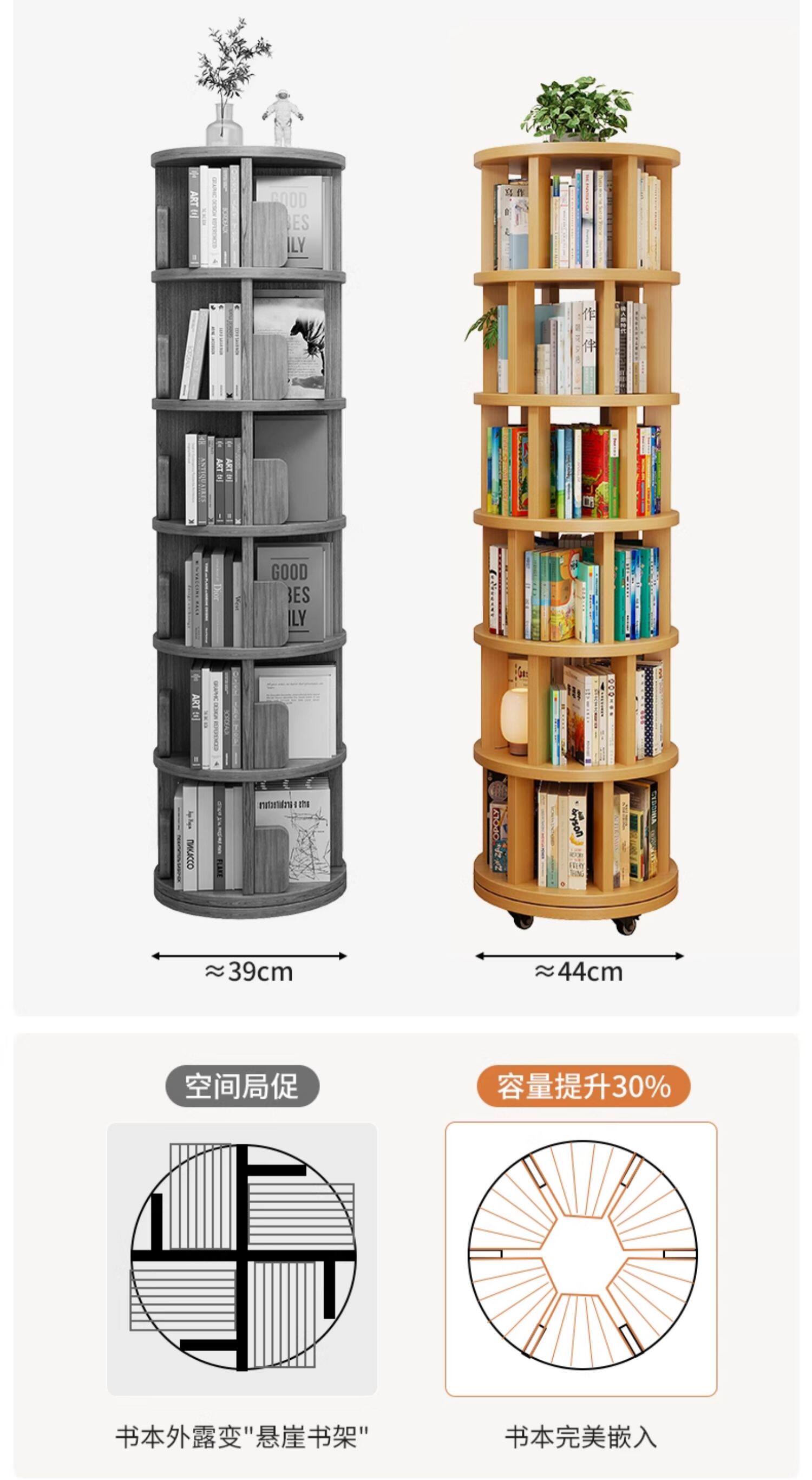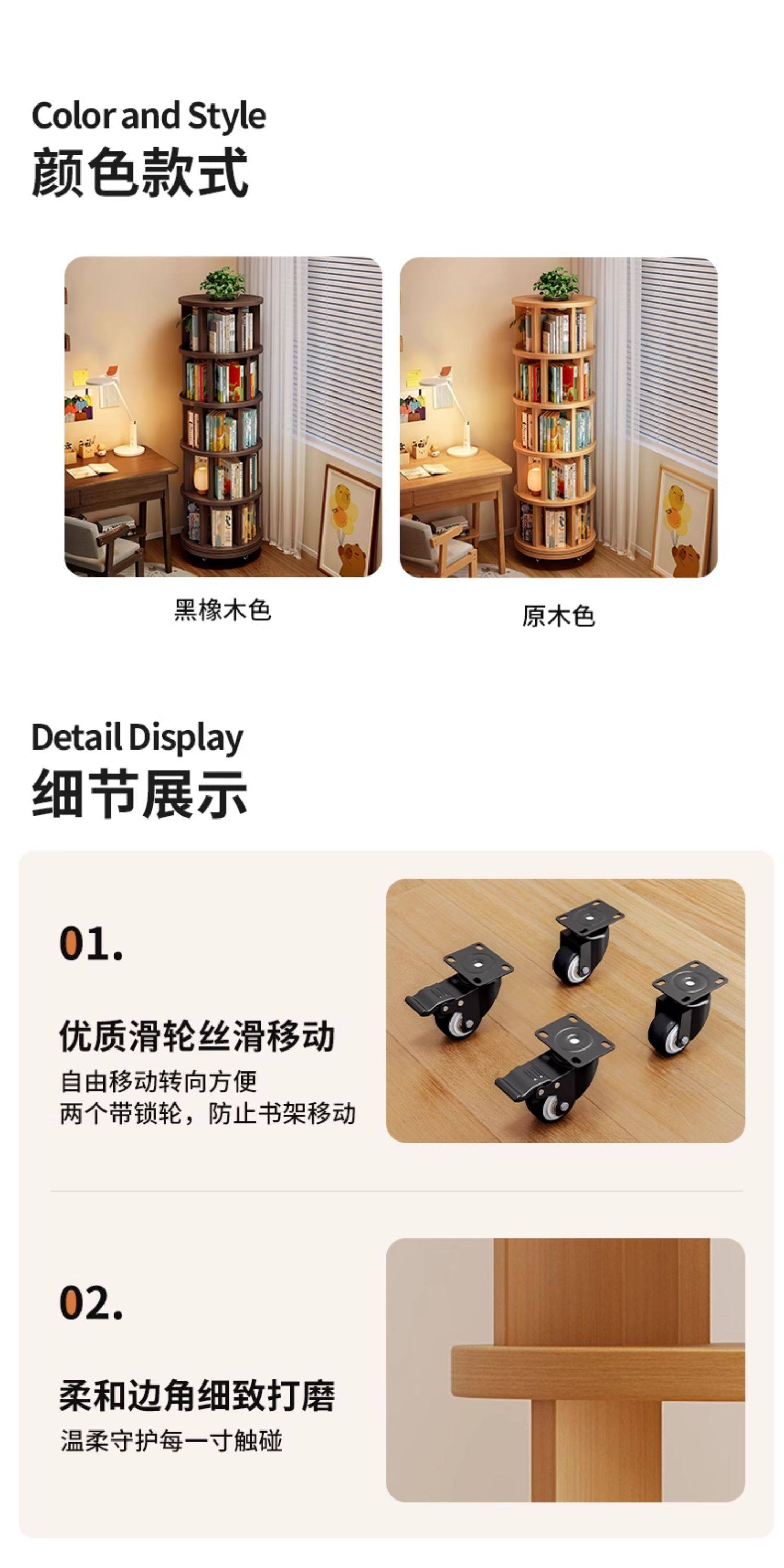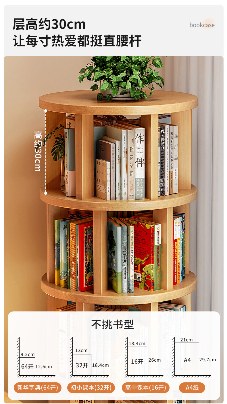 实木旋转书架360度书柜置物架落地一体靠墙可移动转角儿童小窄柜