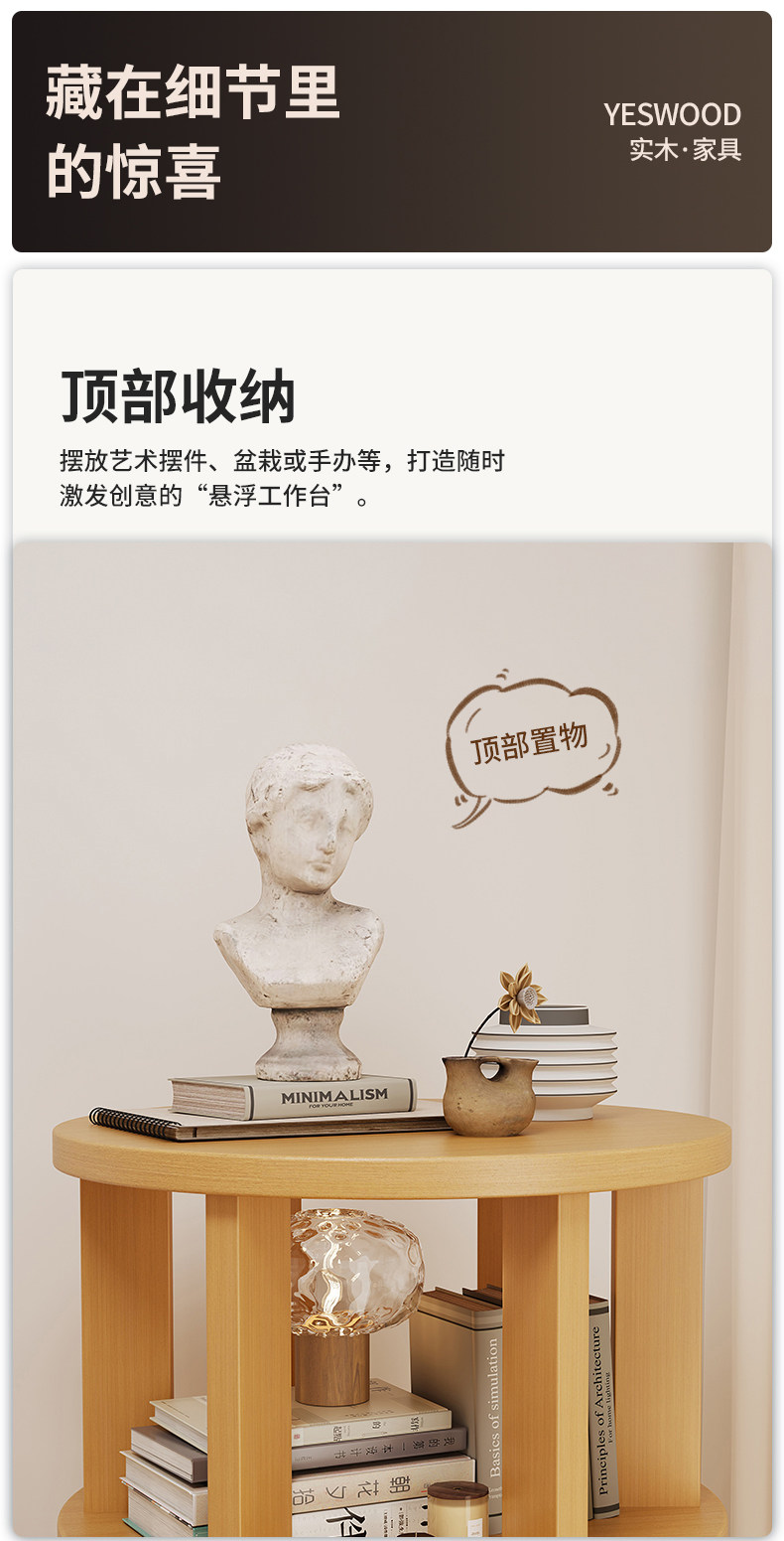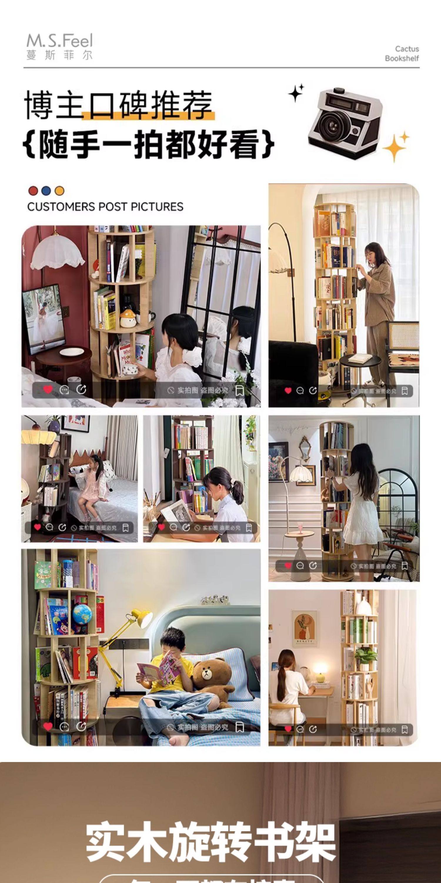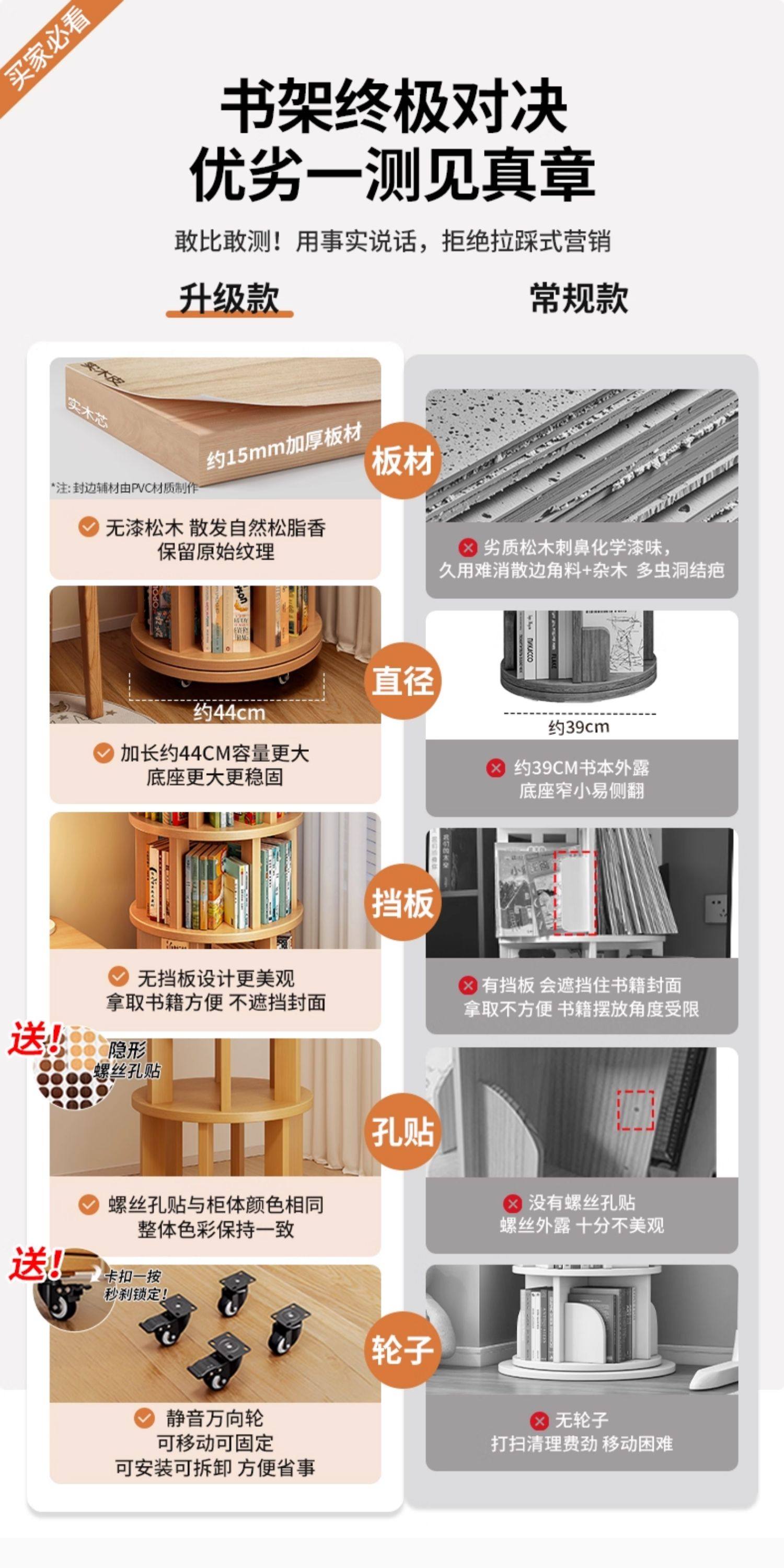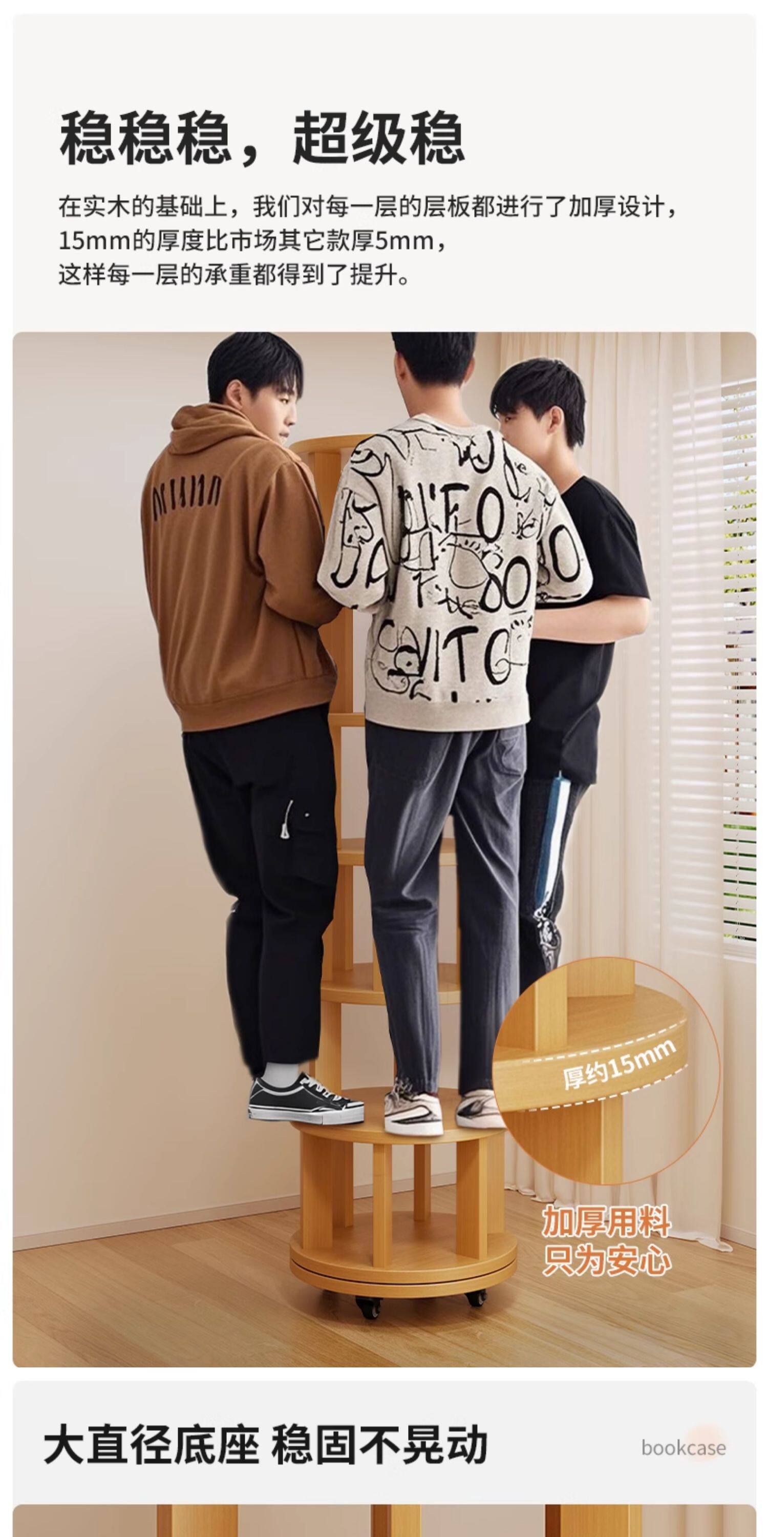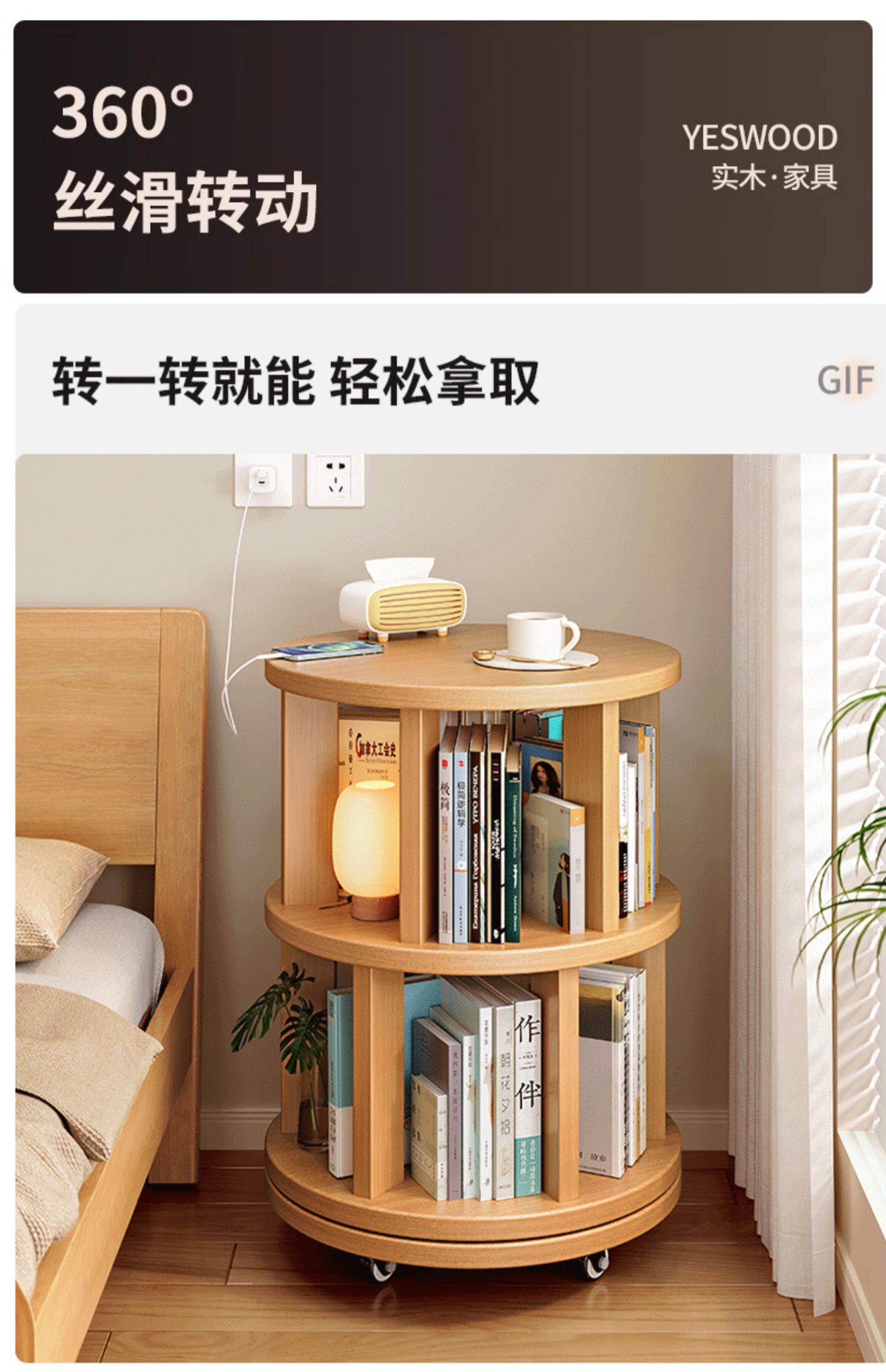 实木旋转书架360度书柜置物架落地一体靠墙可移动转角儿童小窄柜