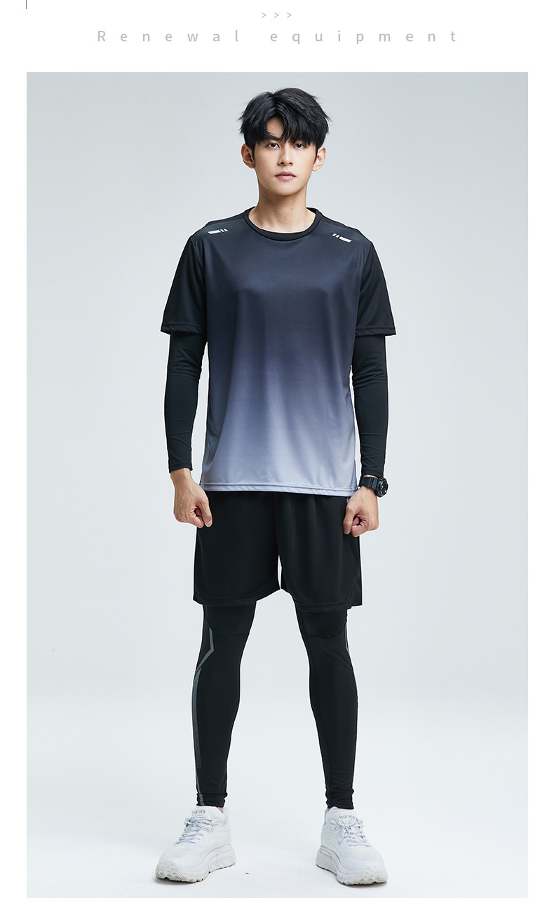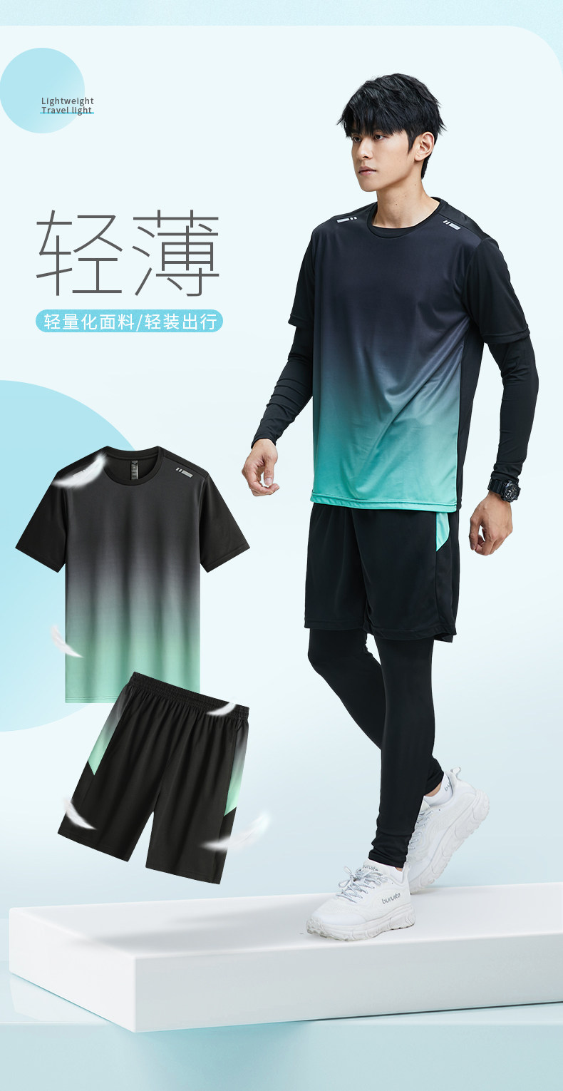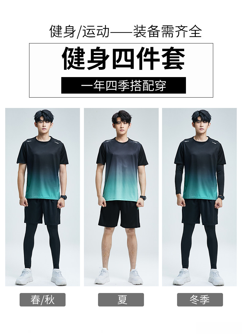运动套装男健身衣服跑步装备晨跑服骑行训练房夏季紧身冰丝速乾衣