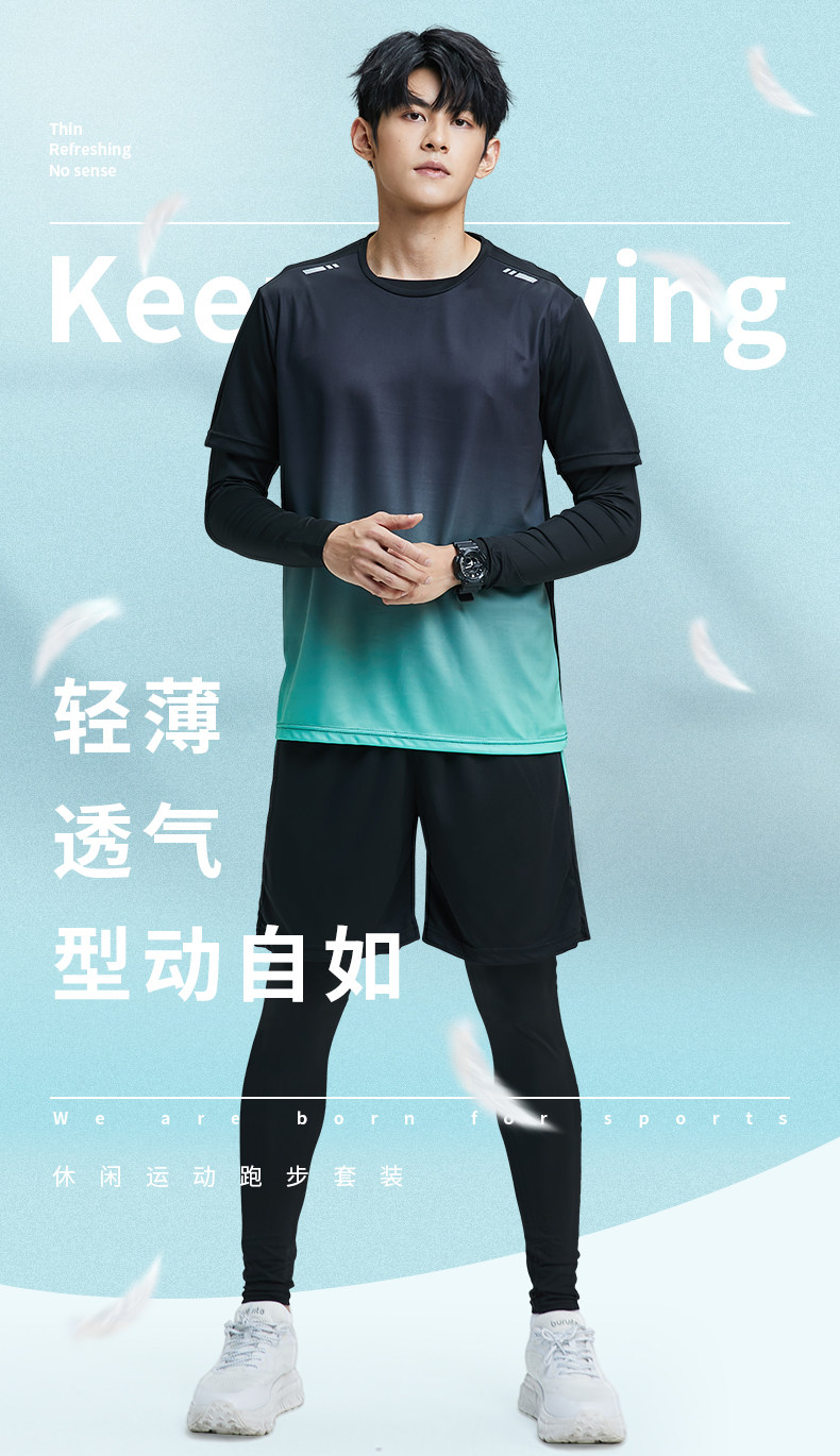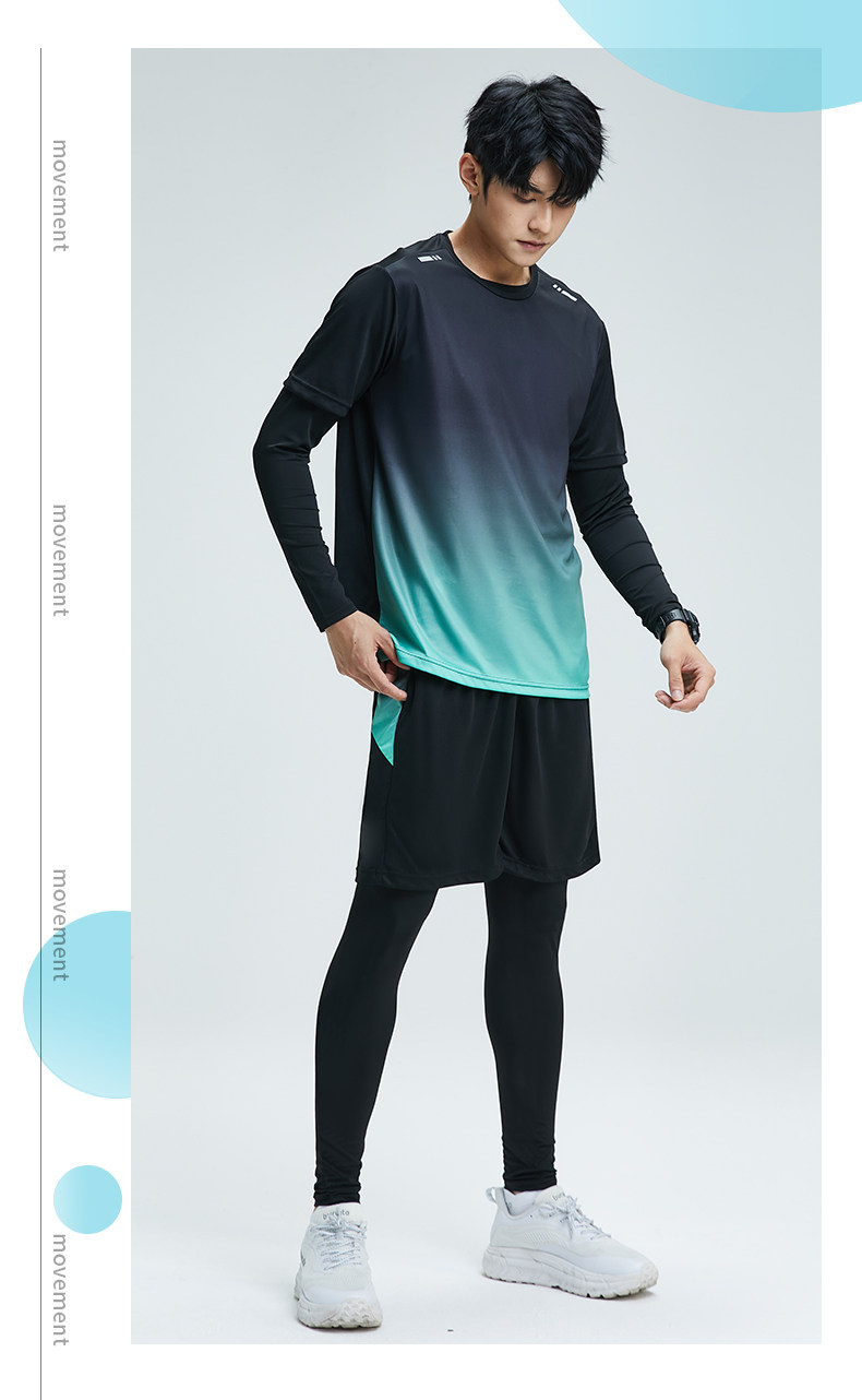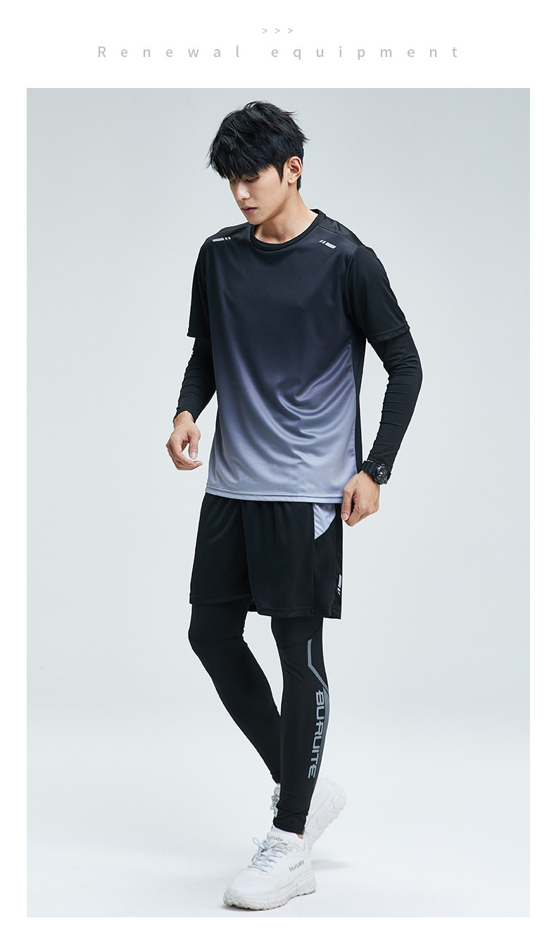 运动套装男健身衣服跑步装备晨跑服骑行训练房夏季紧身冰丝速乾衣