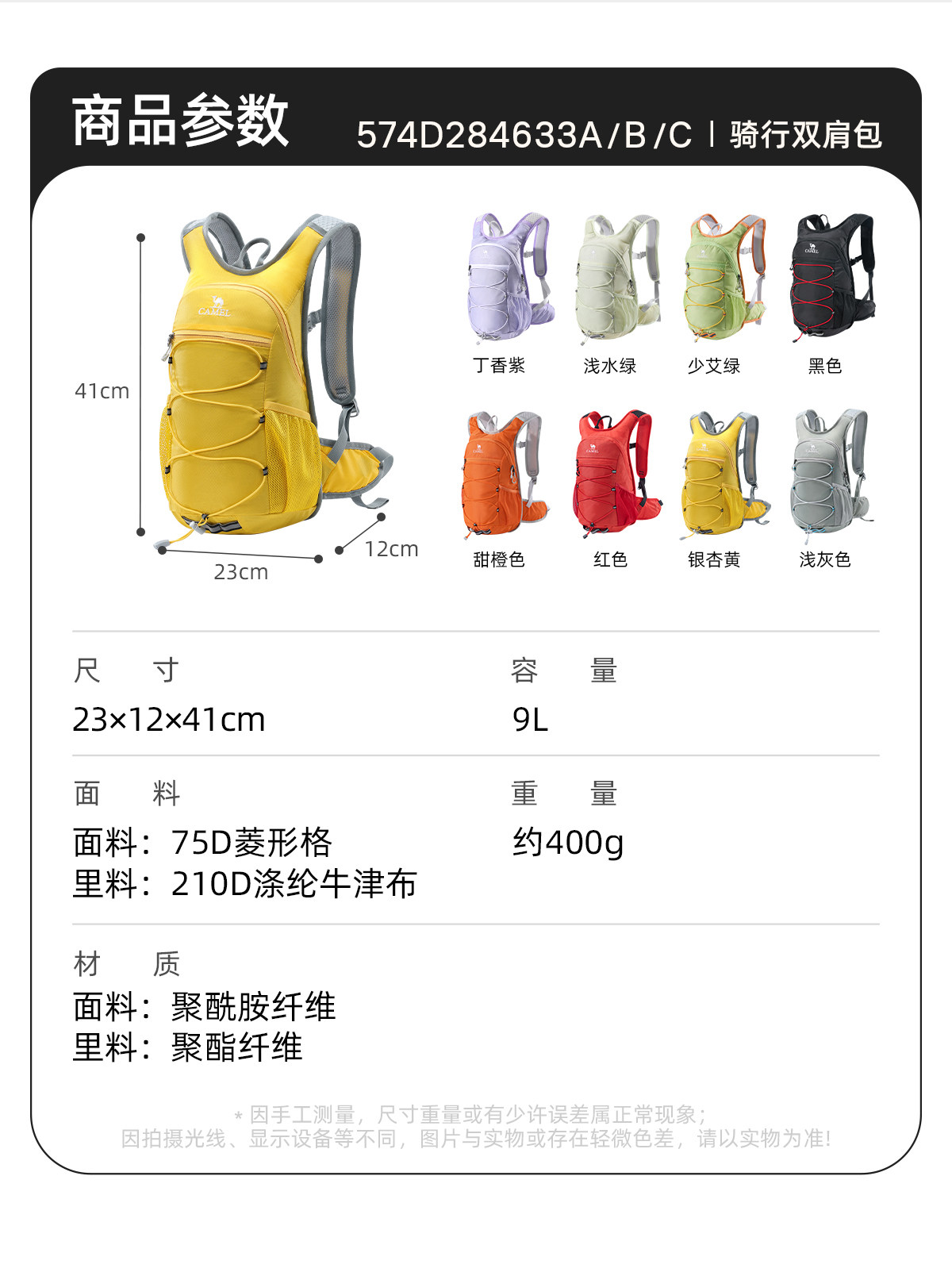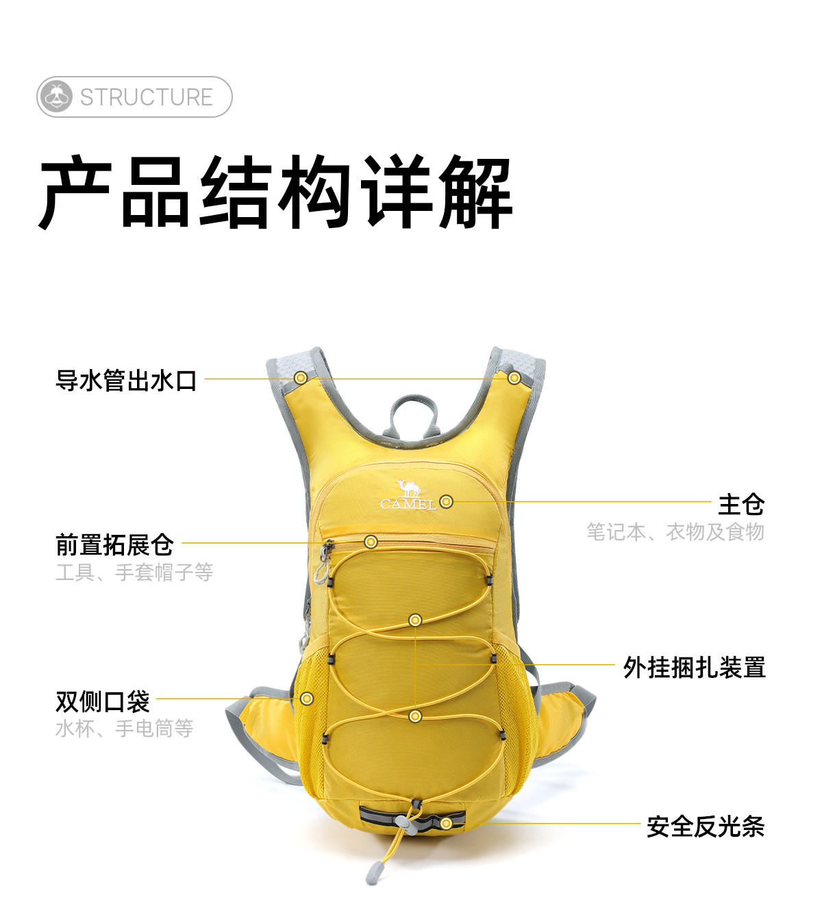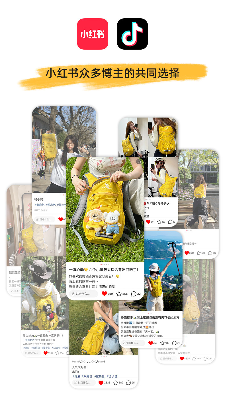Camel轻量登山健行背包 男女通用户外双肩包 骑行徒步适用