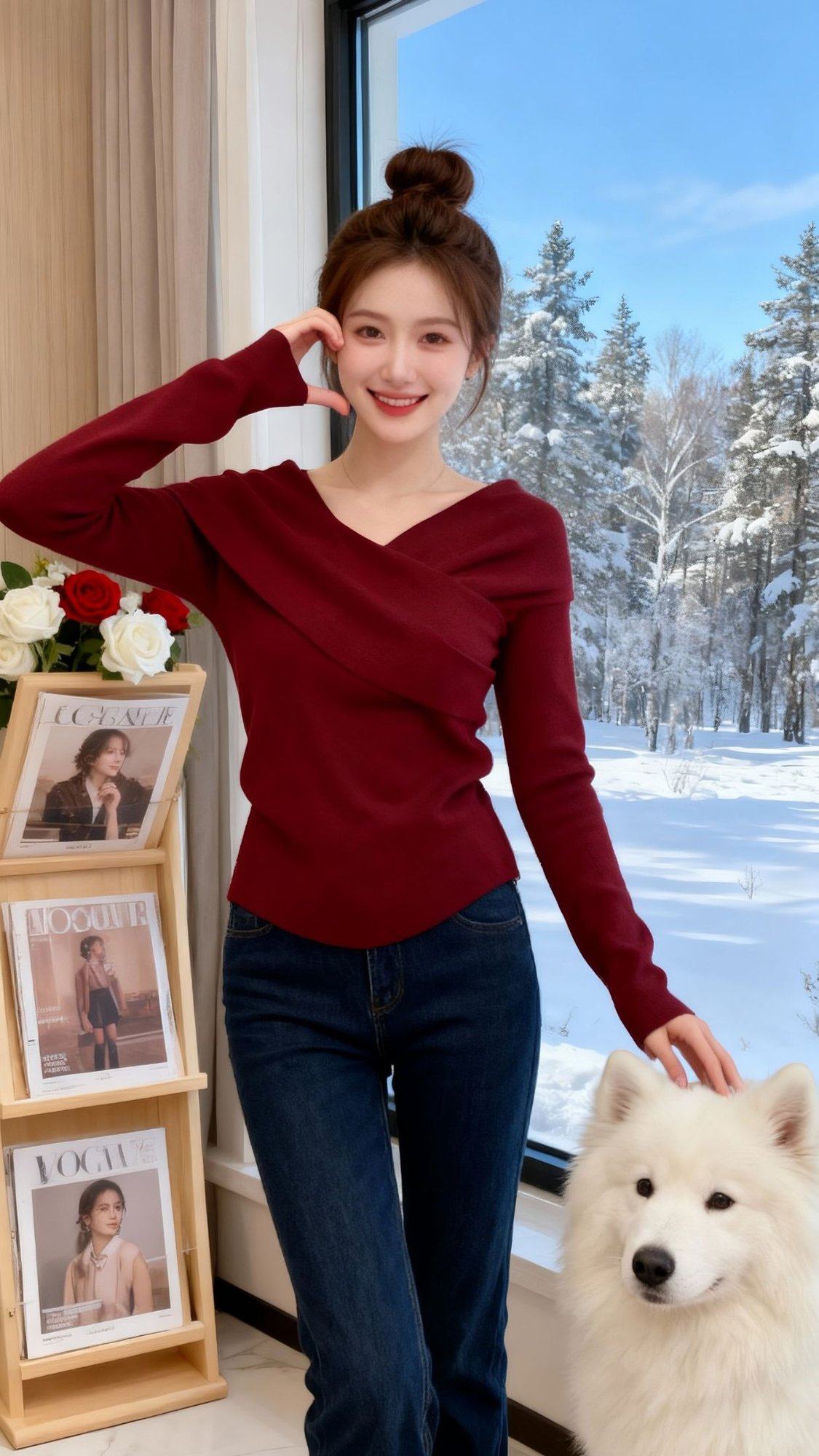 디자인 랩 브이넥 레드 니트 레깅스 여 추동 빅사이즈 통통mm 날씬해 보이는 유니크한 오버핏 상의