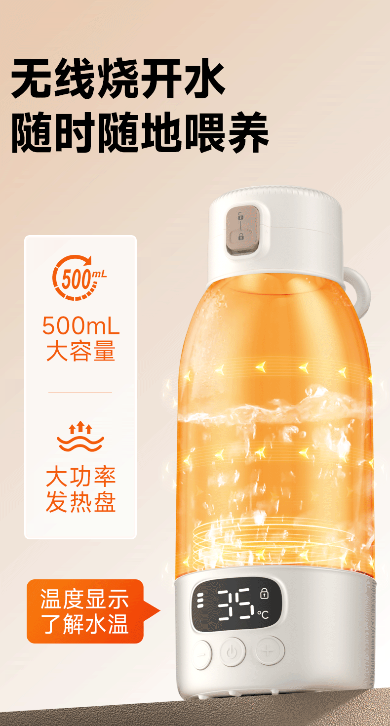 孕贝恒温水壶婴儿外出专用无线便携式恒温杯冲奶烧开100℃消毒