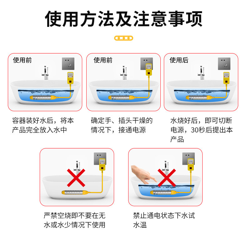 美科智能温控热得快3000W数显可调电热棒 漏电插头设计安全加热
