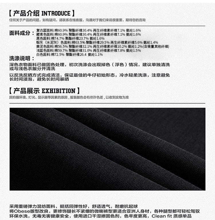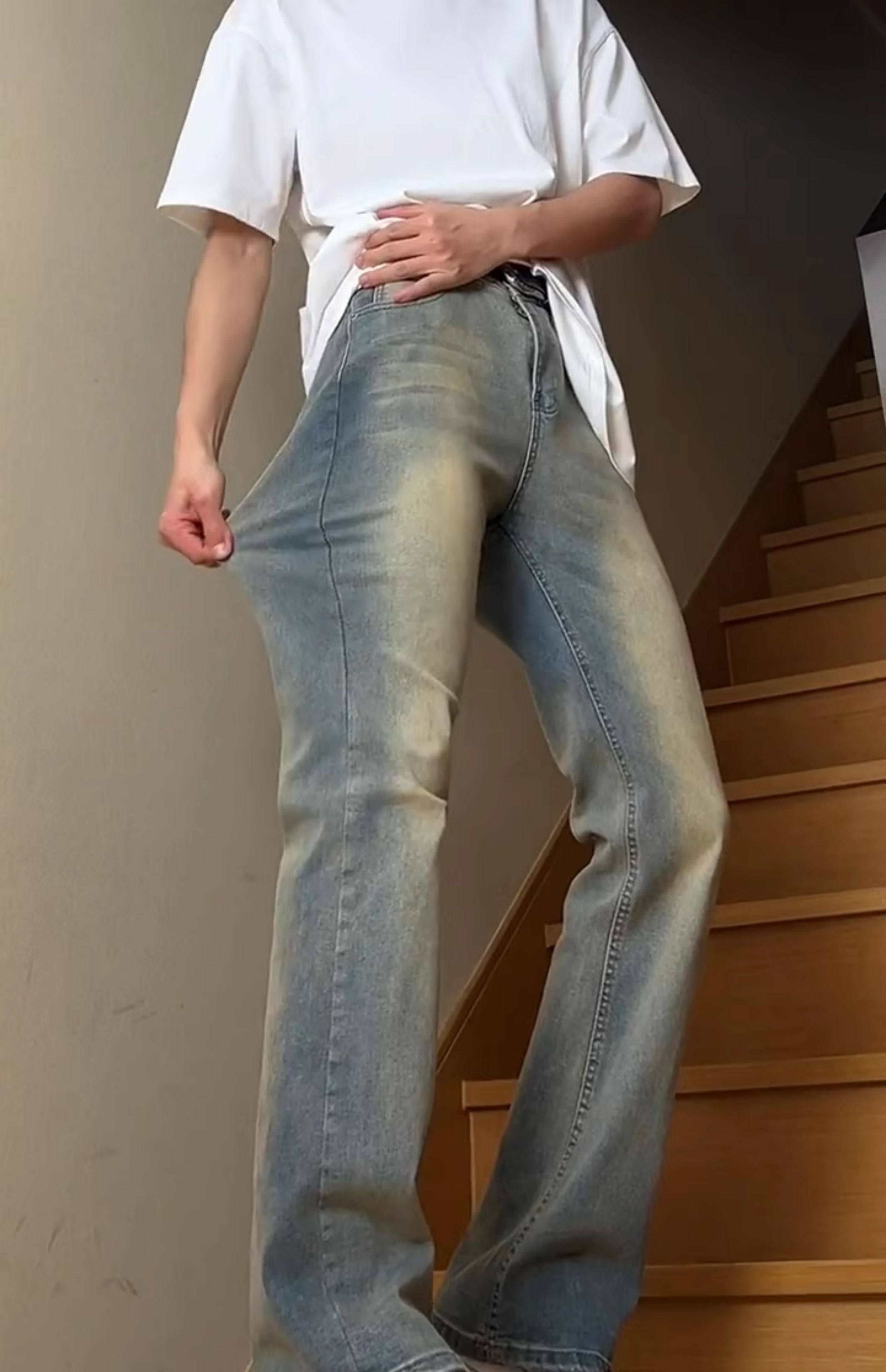 美式高街vibe高腰提档裤子男春季复古蓝弯刀牛仔裤水洗直筒微喇叭裤