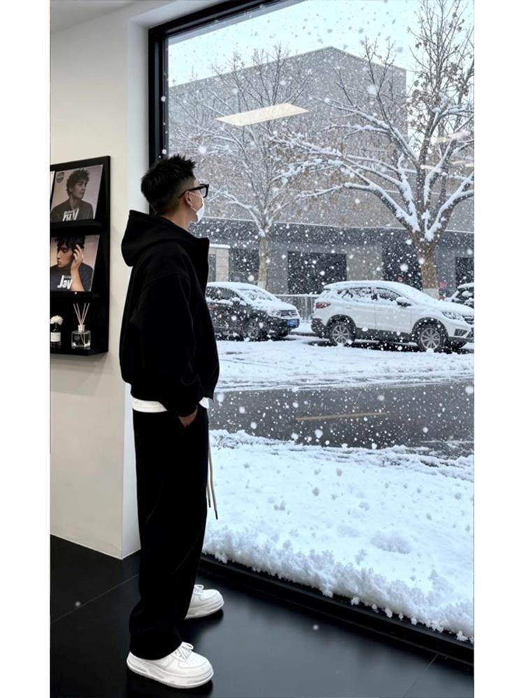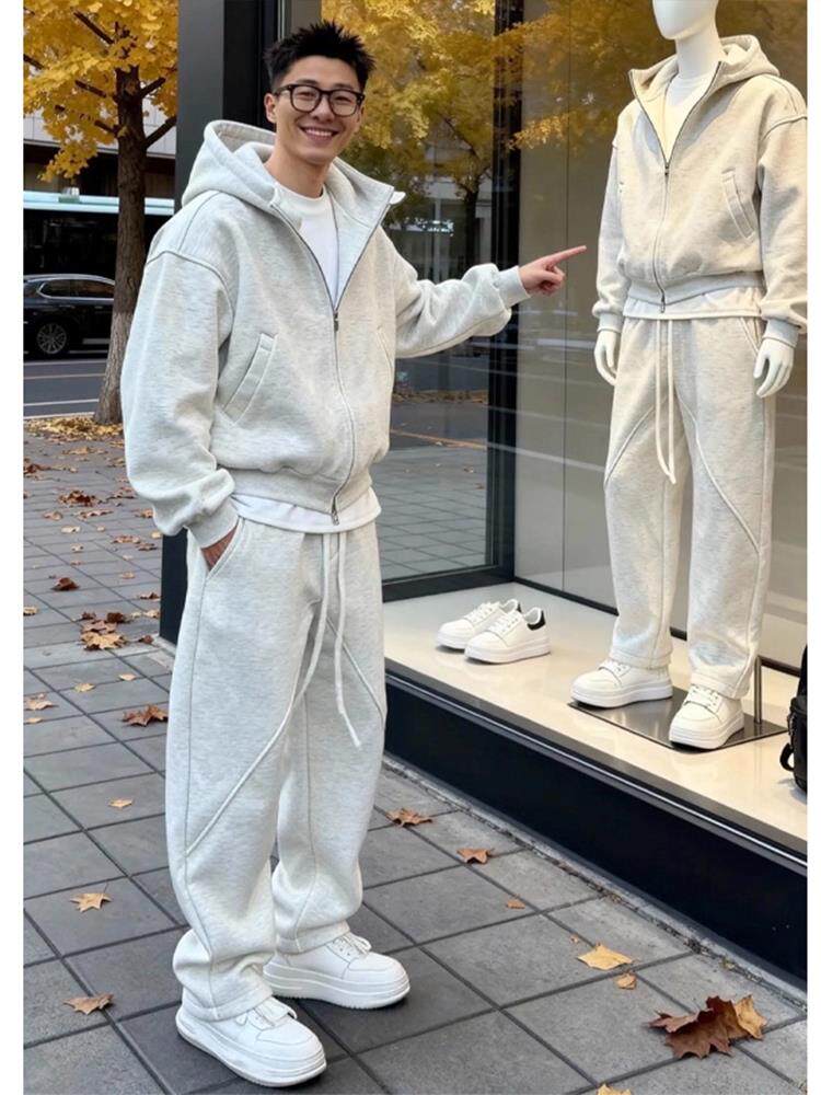 大尺码300斤穿搭一整套休闲运动套装男秋冬重磅加绒卫衣卫裤两件套2