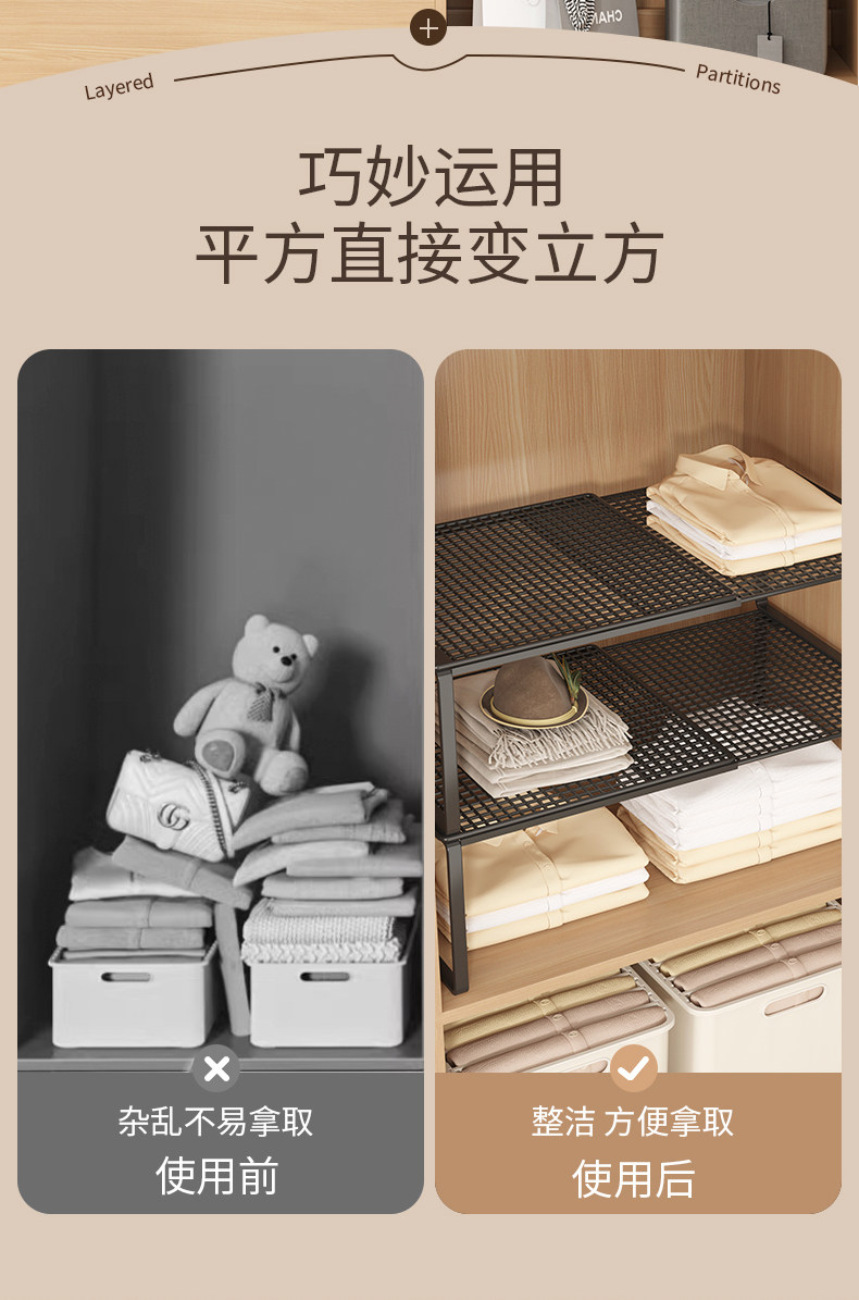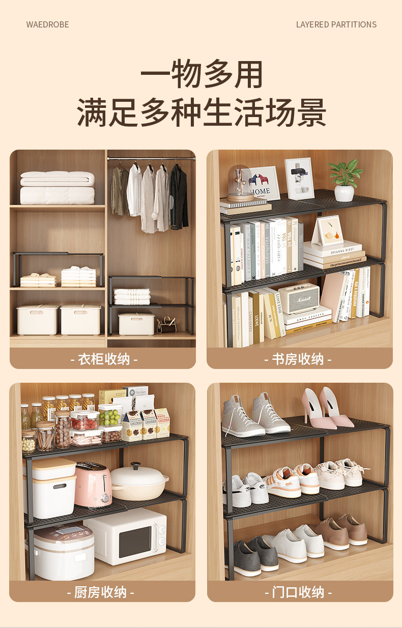 北欧风金属置物架 卧室收纳神器 多层分层隔板架 衣柜分层隔板