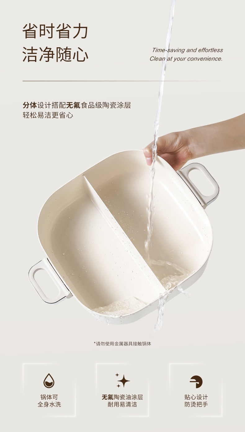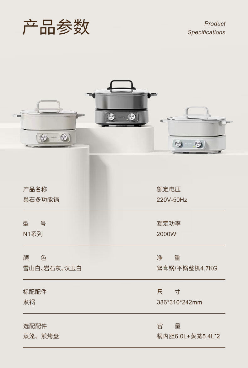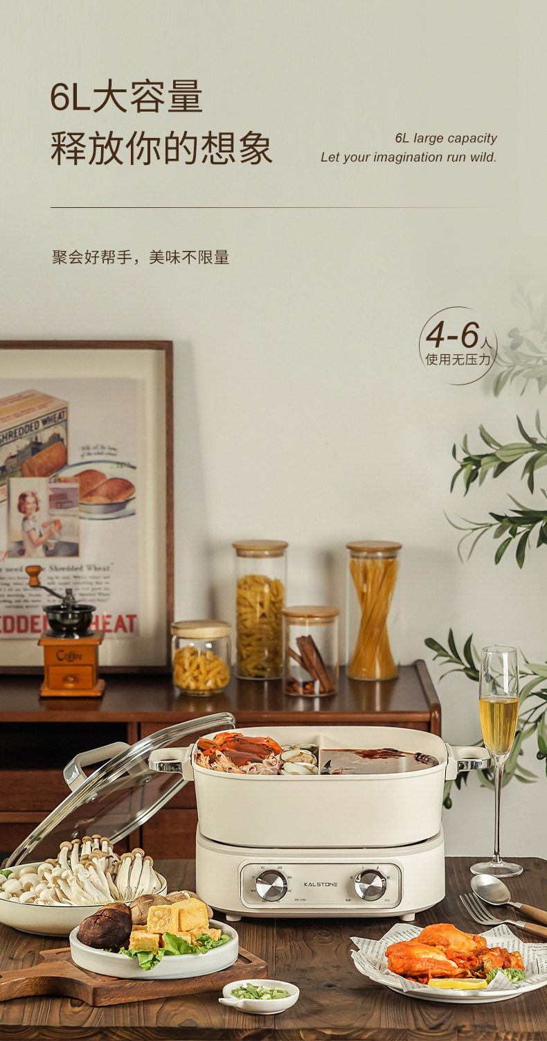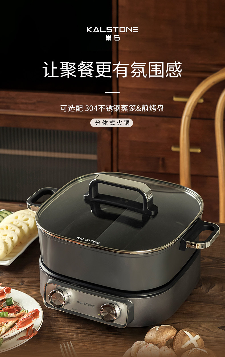 巢石N1分体电火锅 家用6L陶瓷内胆多功能料理锅组