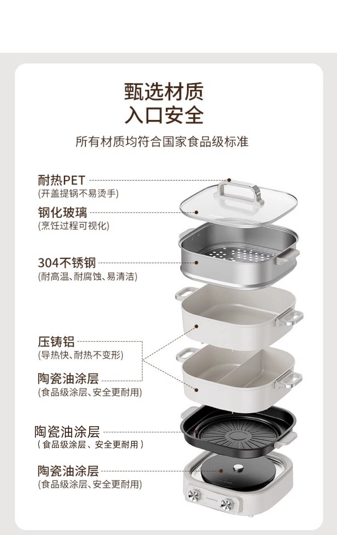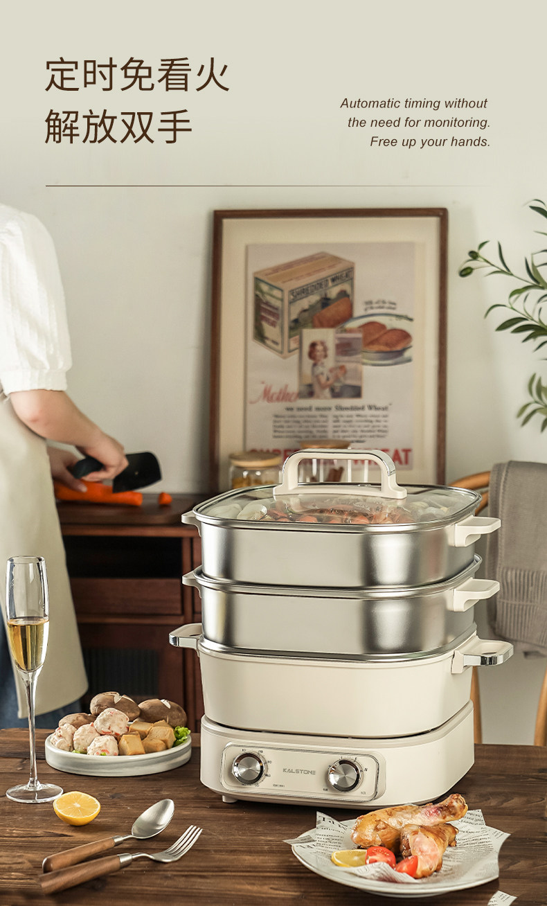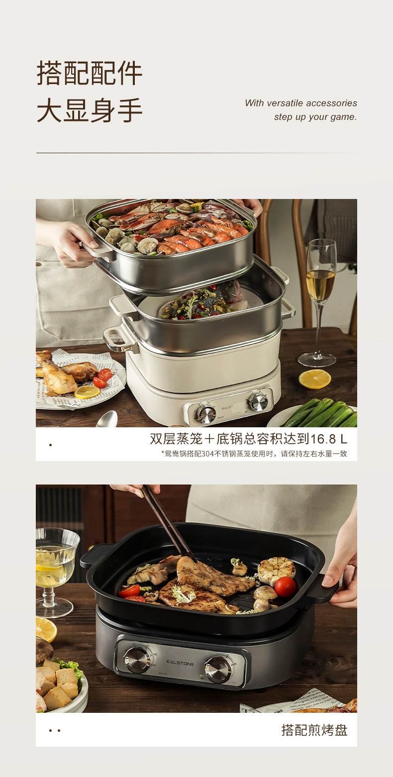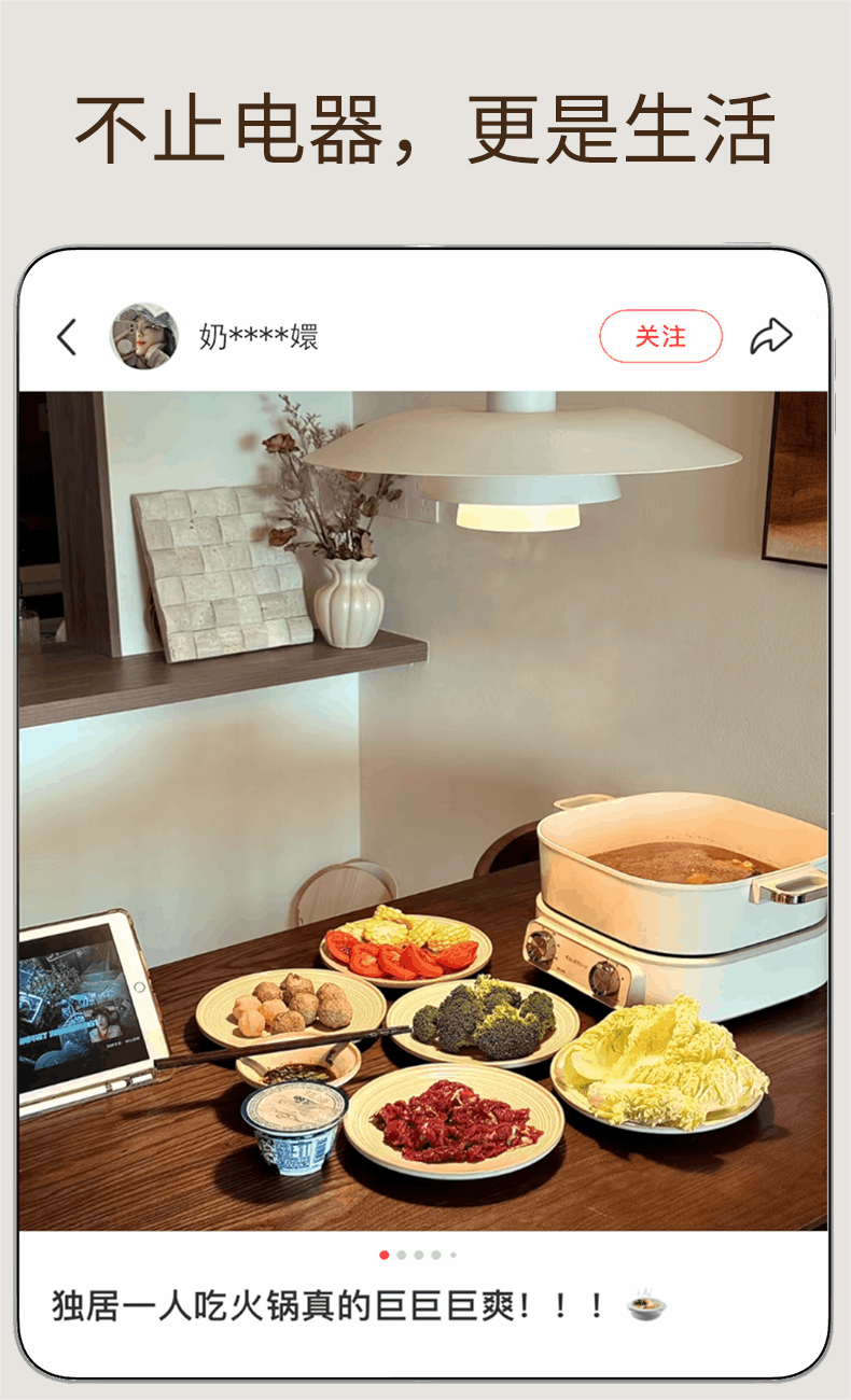 巢石N1分体电火锅 家用6L陶瓷内胆多功能料理锅组
