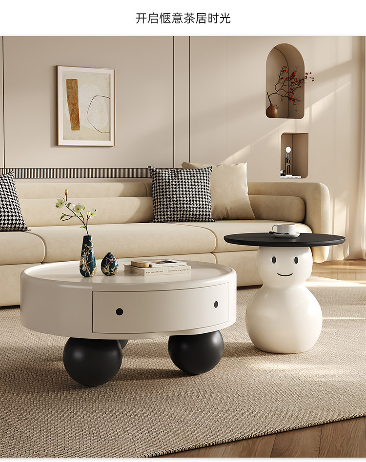 奶油风雪人圆形茶几组合客厅家用2026新款轻奢高级感设计师小桌子
