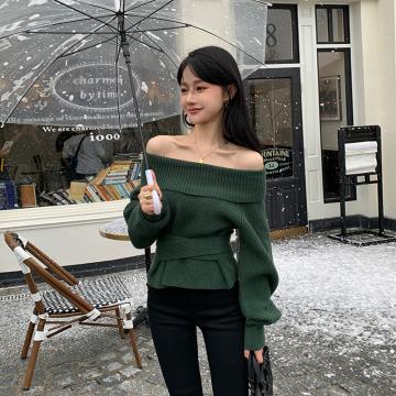 스트랩 일자넥 오픈숄더 스웨터 니트 여
