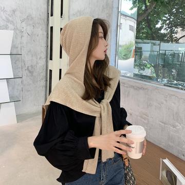 니트모자 일체형 어깨 머플러