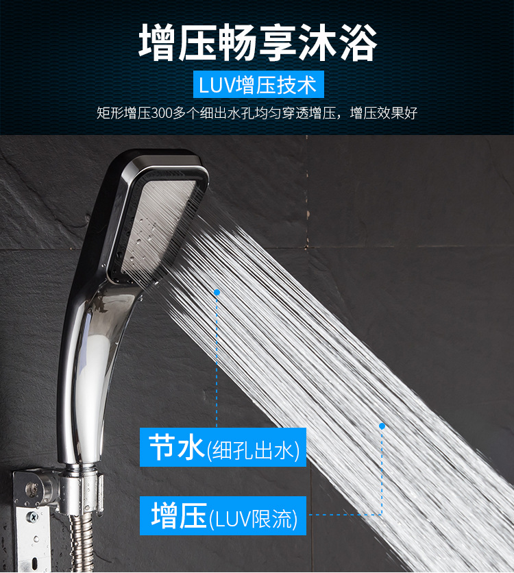 厂家300孔限流增压花洒淋浴喷头方形手持花洒增压莲蓬头节水喷头