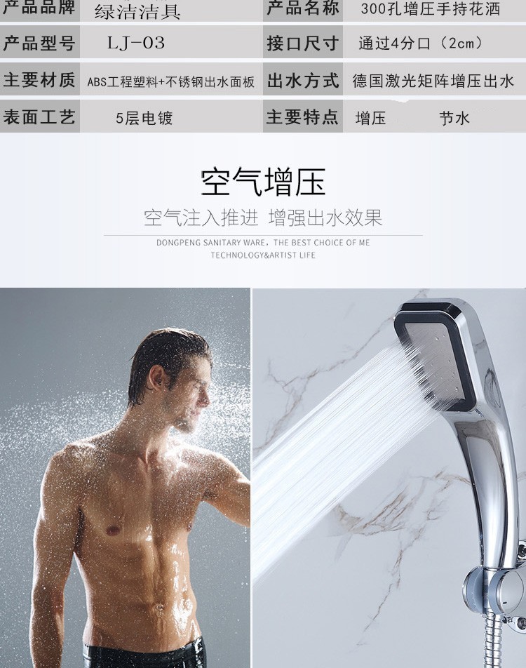 공장 300 홀 한정 유량 가압 샤워 헤드 사각 핸드 샤워 가압 샤워 헤드 절수 노즐