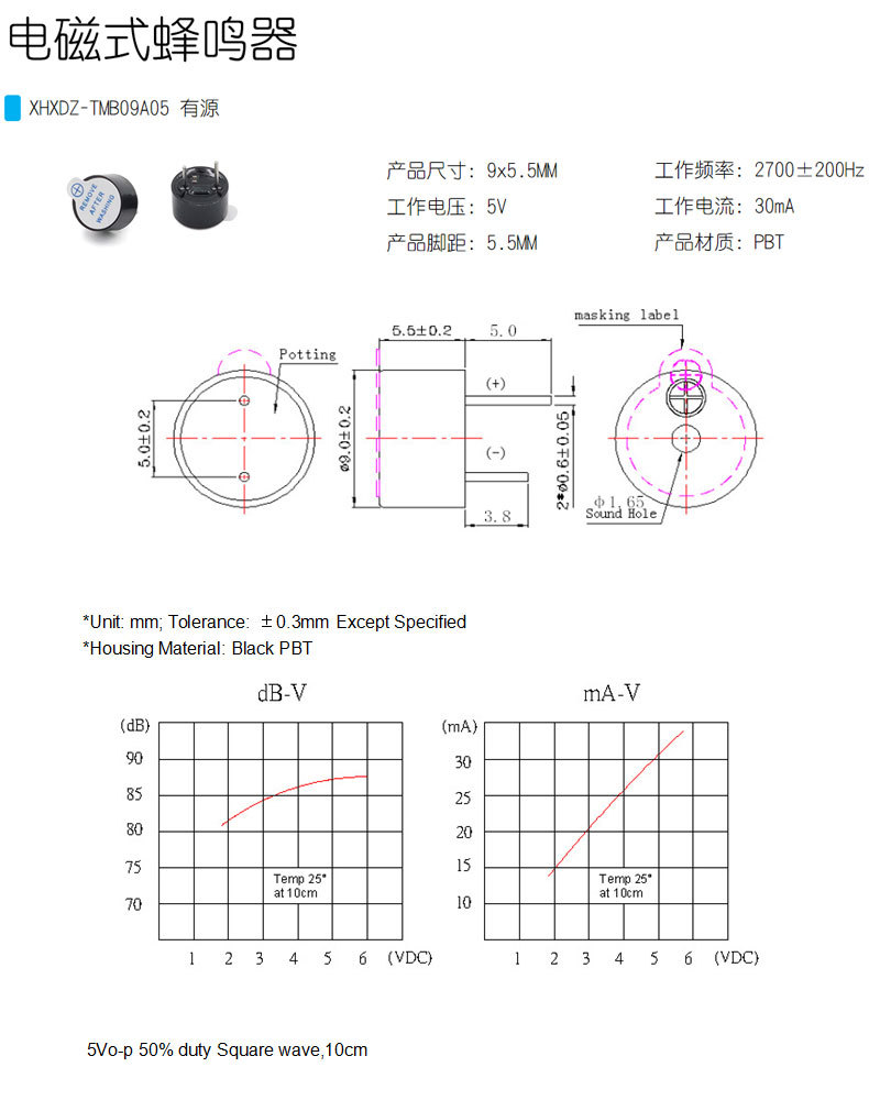 9055直流蜂鸣器5V一体有源电磁式蜂鸣器TMB09A05环保耐高温蜂鸣器