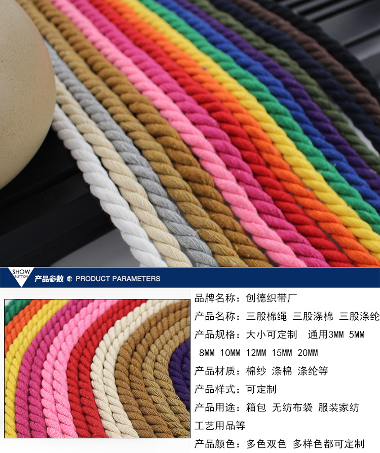 绳子 彩色棉绳 捆绑棉绳 束口棉绳 三股棉绳 包芯棉绳子