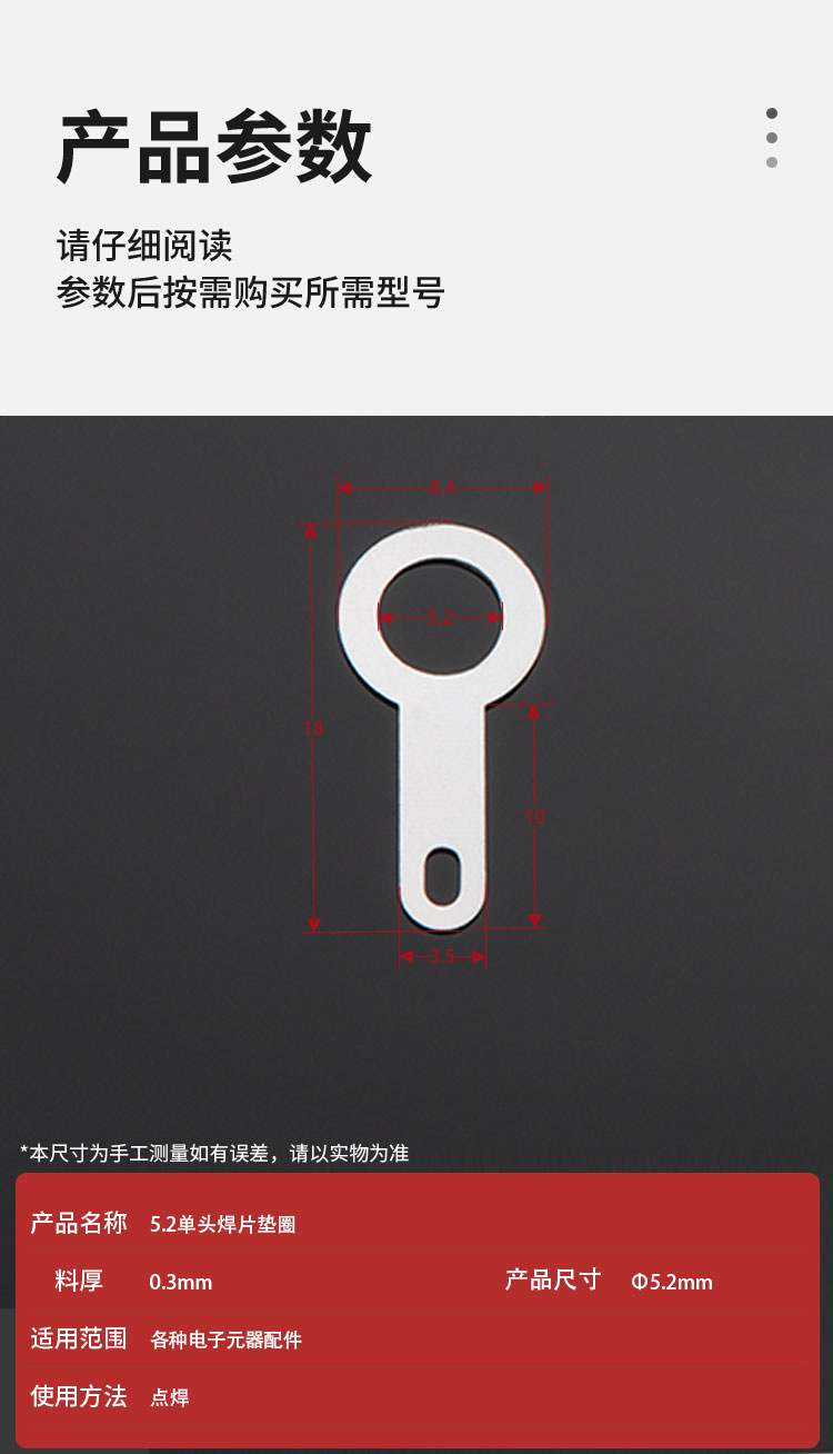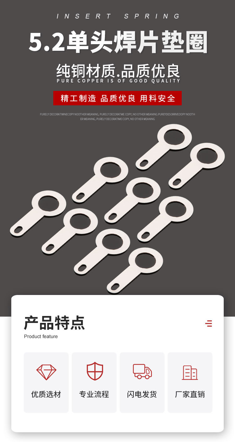 5.2单头焊片 M5铜垫圈 铜镀银 圆环形焊接线耳 2000只/包