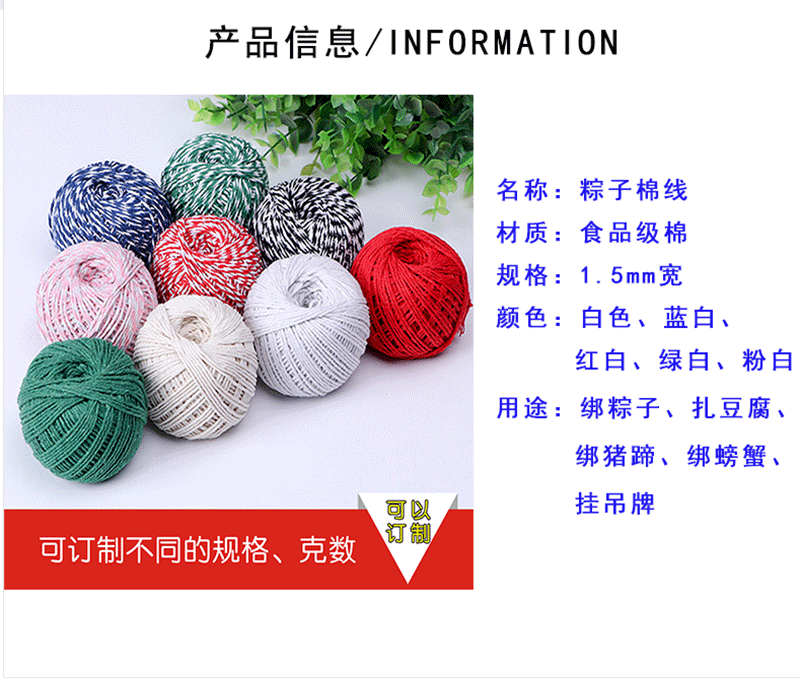 粽子线棉绳棉线包粽子的线食品级彩色棕子绳专用捆螃蟹扎香肠线
