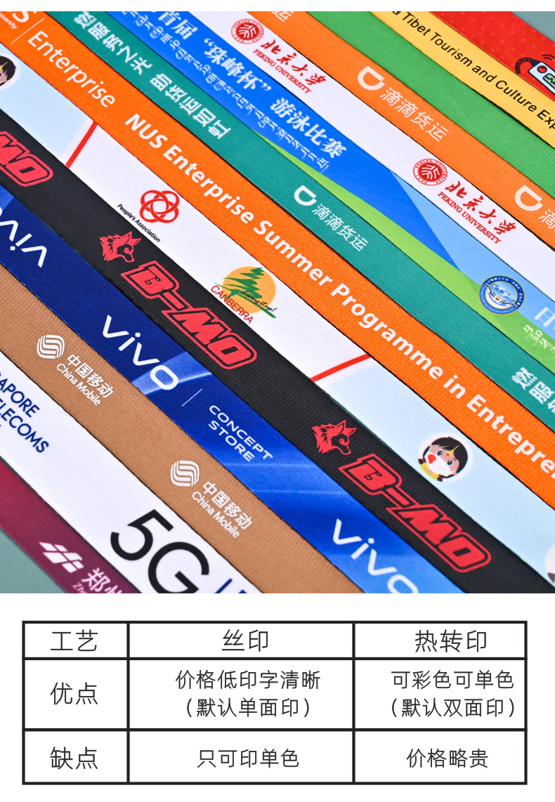 彩色工作牌吊绳展销会员证出入胸卡学生证热转印logo挂绳
