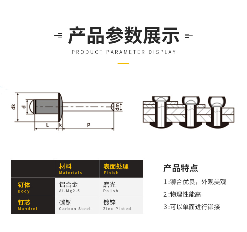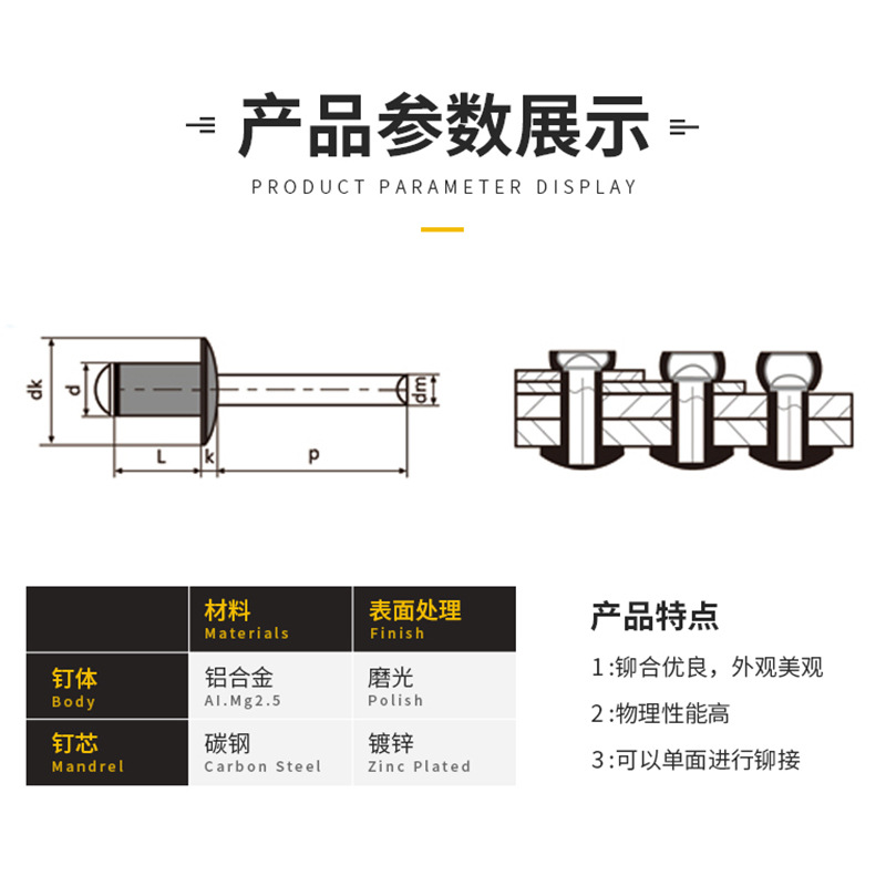 现货国标2.4-5.0抽芯铆钉开口型圆头抽心拉铆钉 沉头铝铁拉钉卯钉