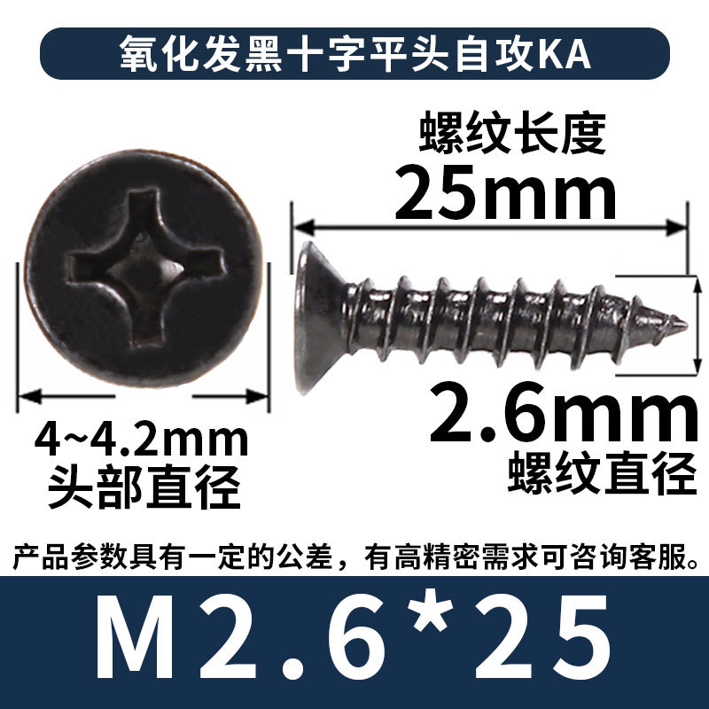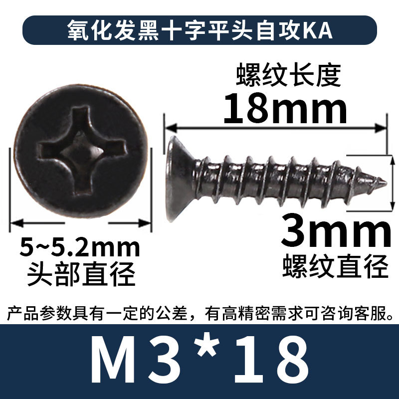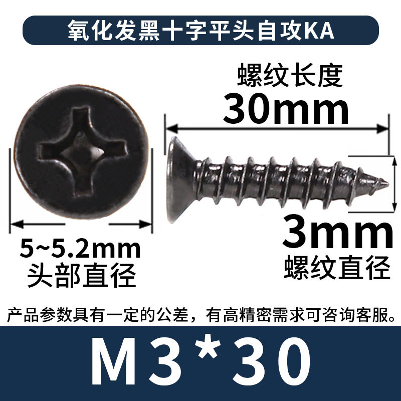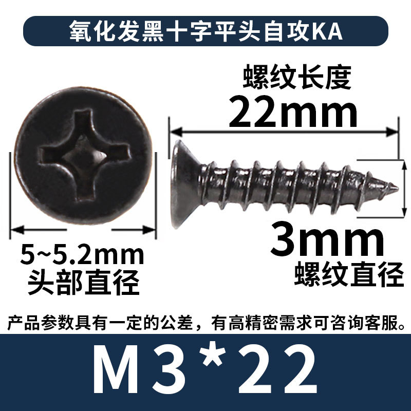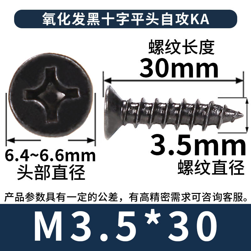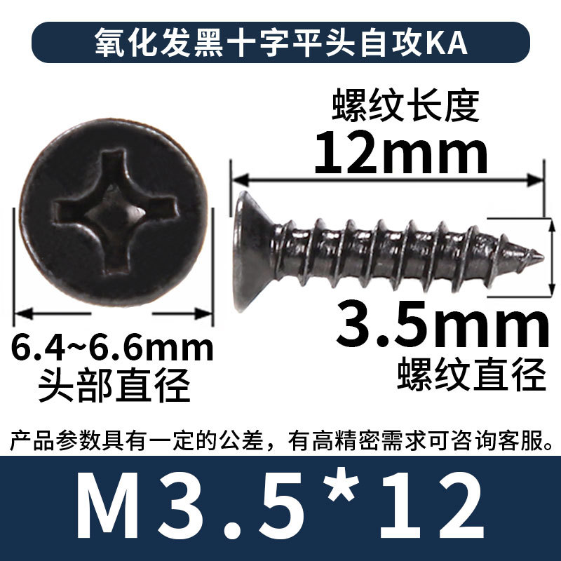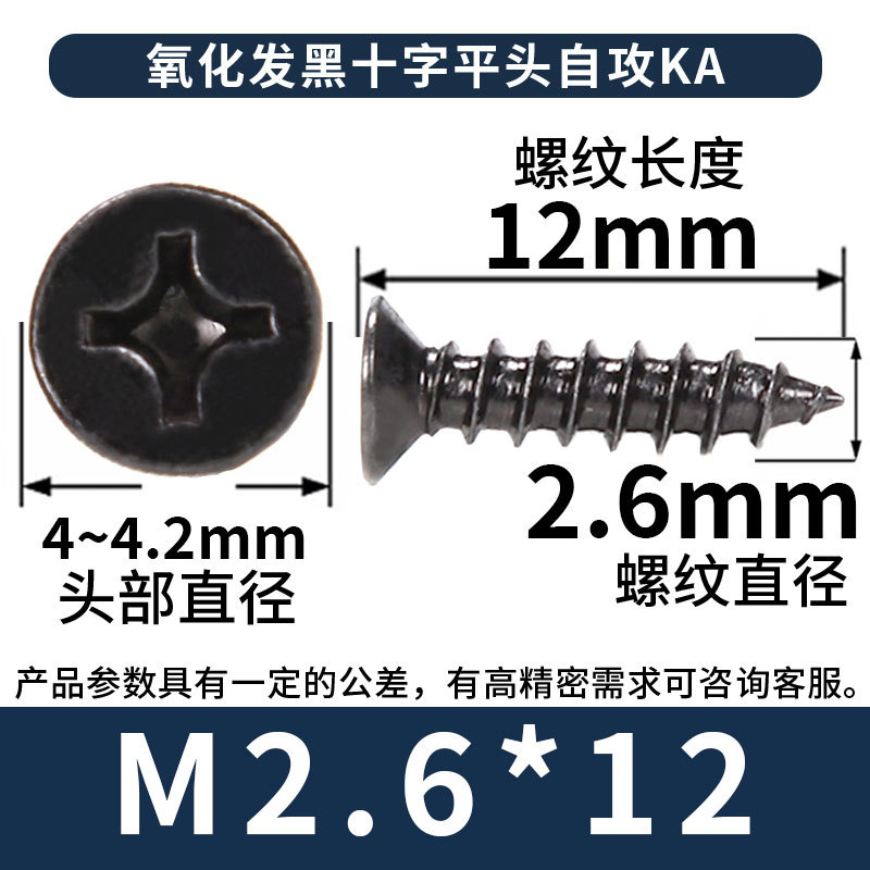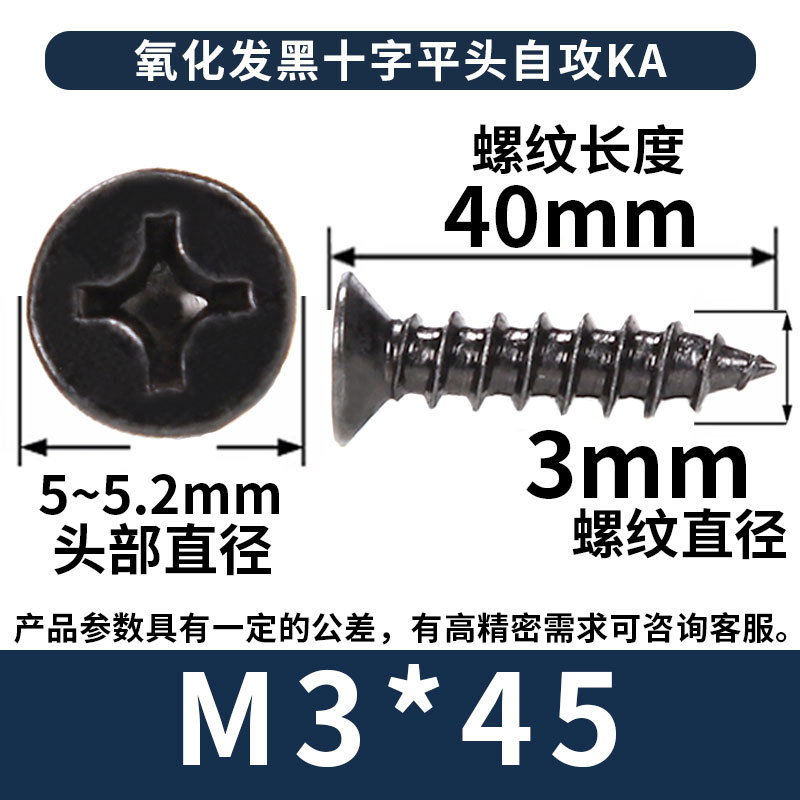 KA镀黑色十字螺丝平头自攻丝螺钉沉头自攻螺丝钉自攻钉批发M3M4M5