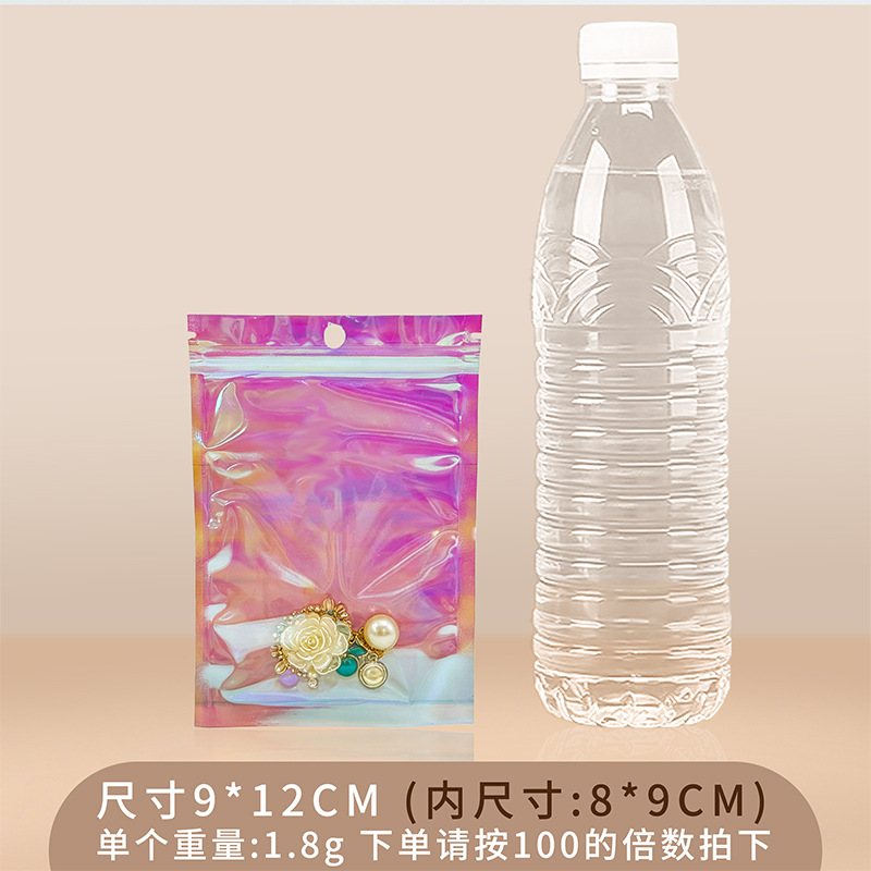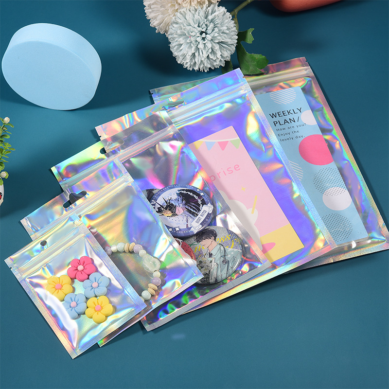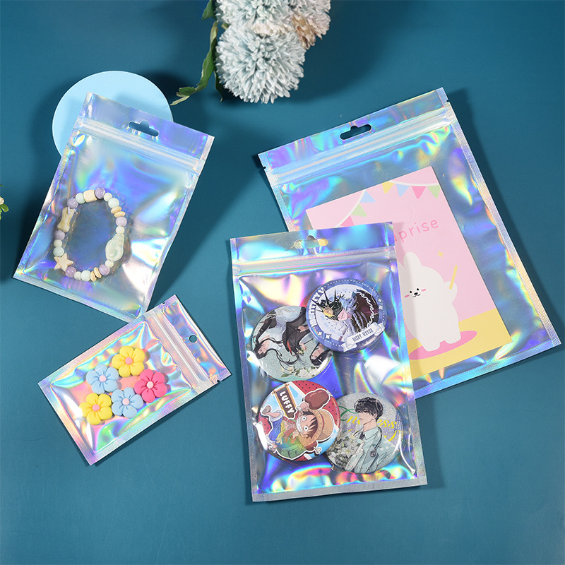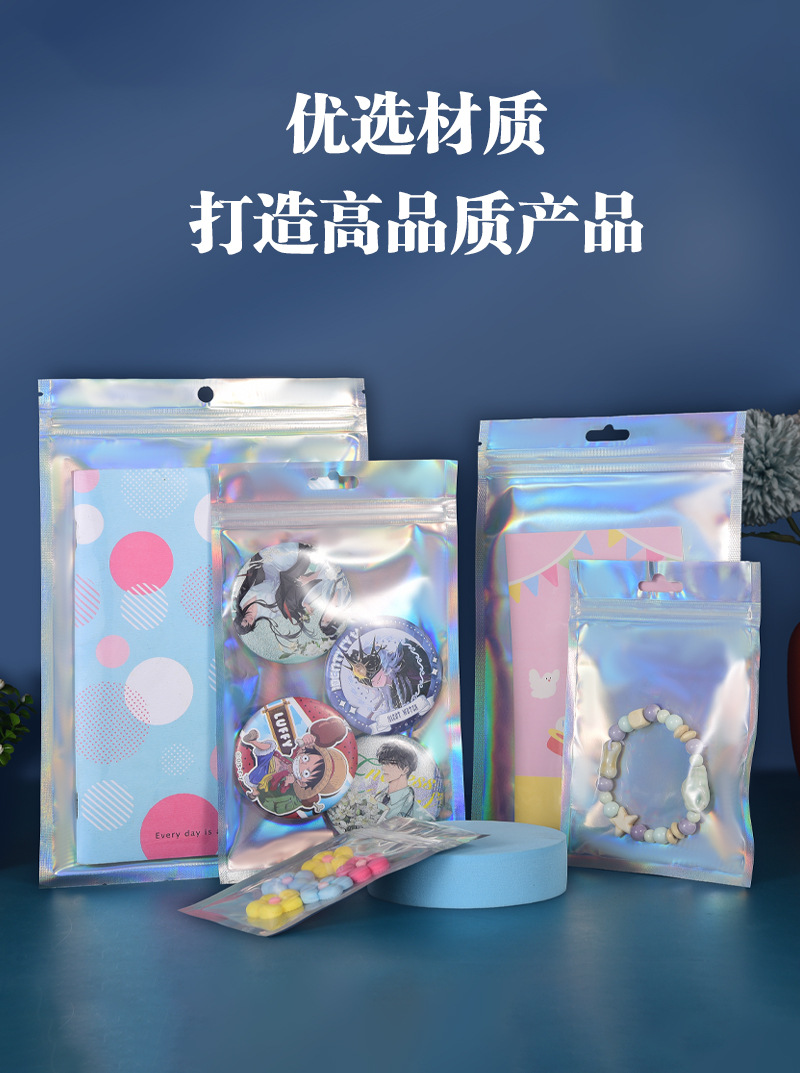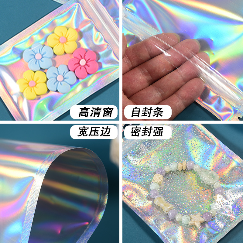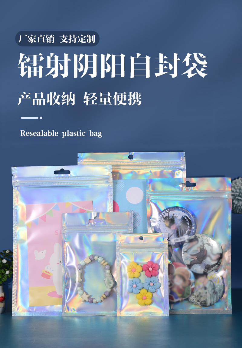 镭射袋幻彩镭射自封袋吧唧铝箔透明阴阳密封袋美妆饰品包装袋批发