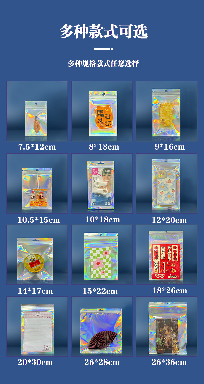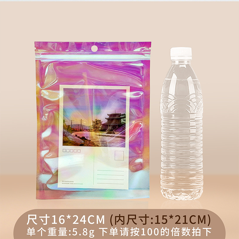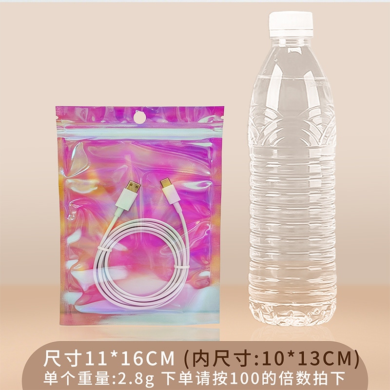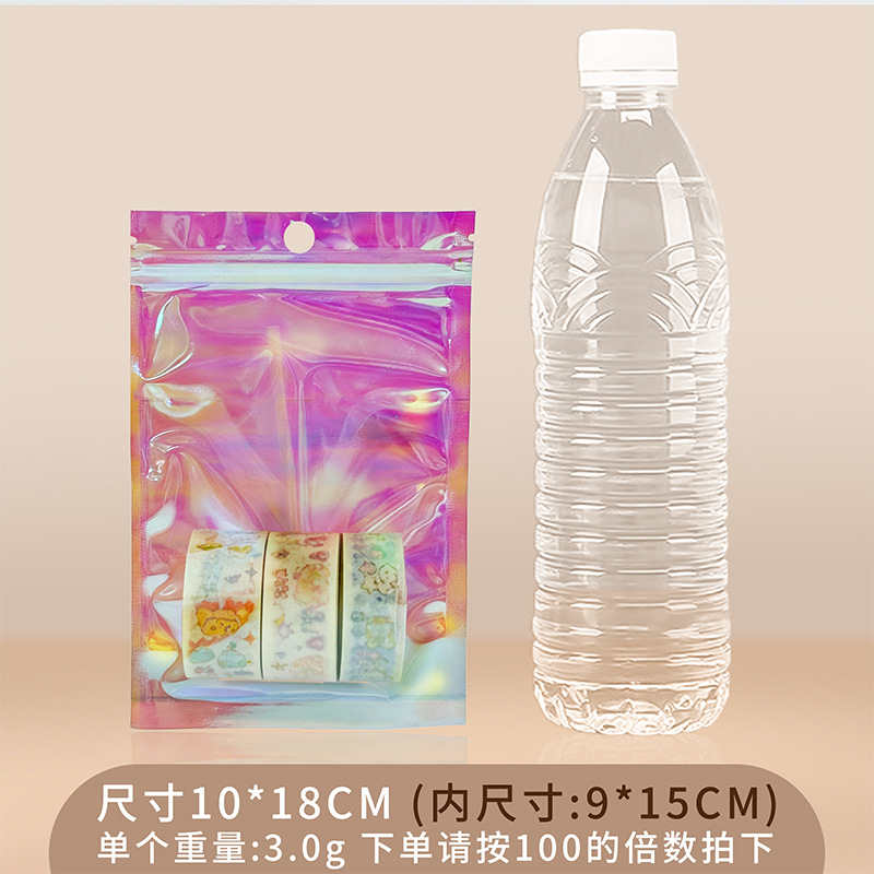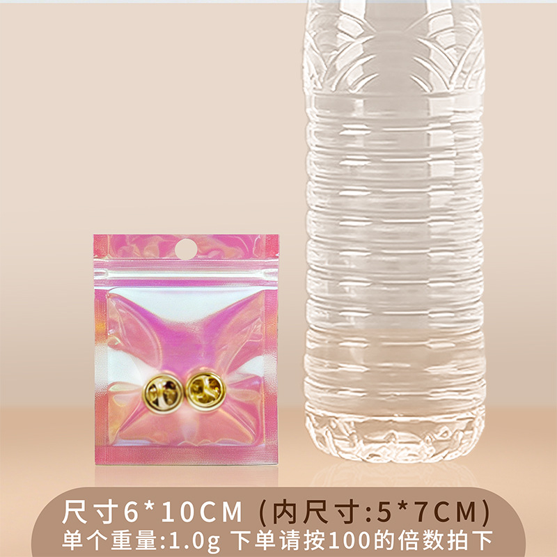 镭射袋幻彩镭射自封袋吧唧铝箔透明阴阳密封袋美妆饰品包装袋批发