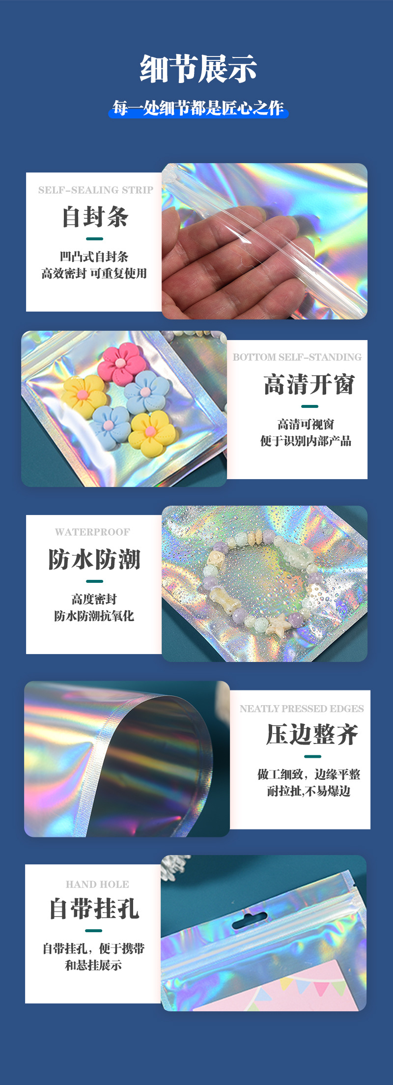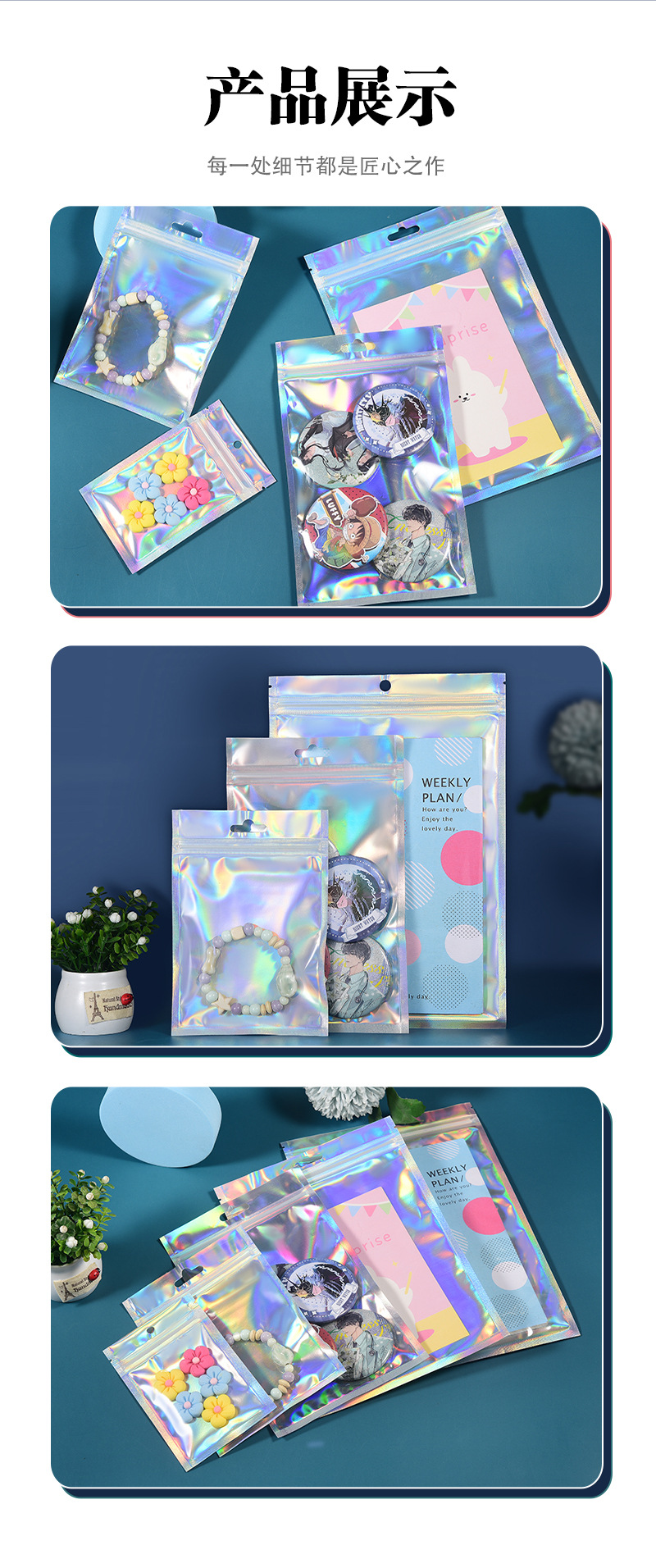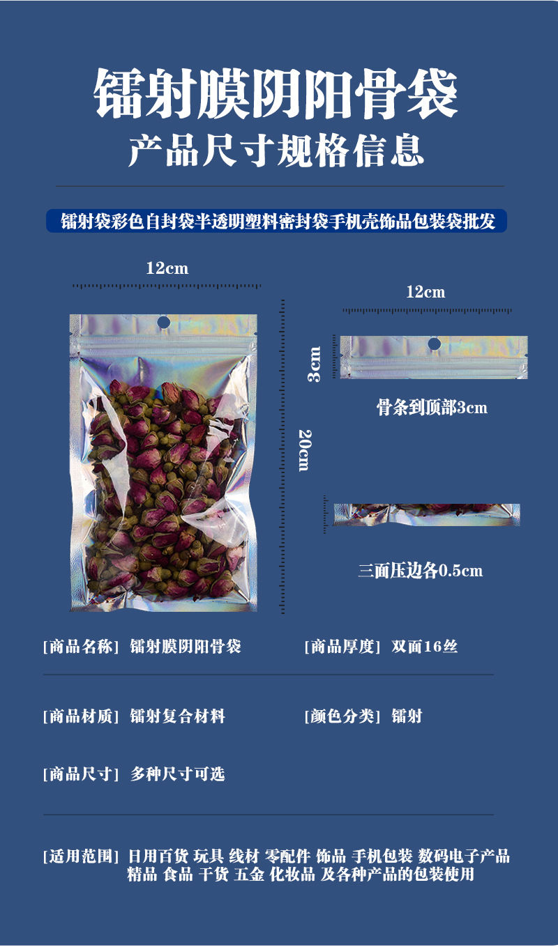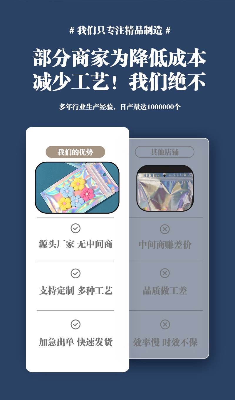 镭射袋幻彩镭射自封袋吧唧铝箔透明阴阳密封袋美妆饰品包装袋批发