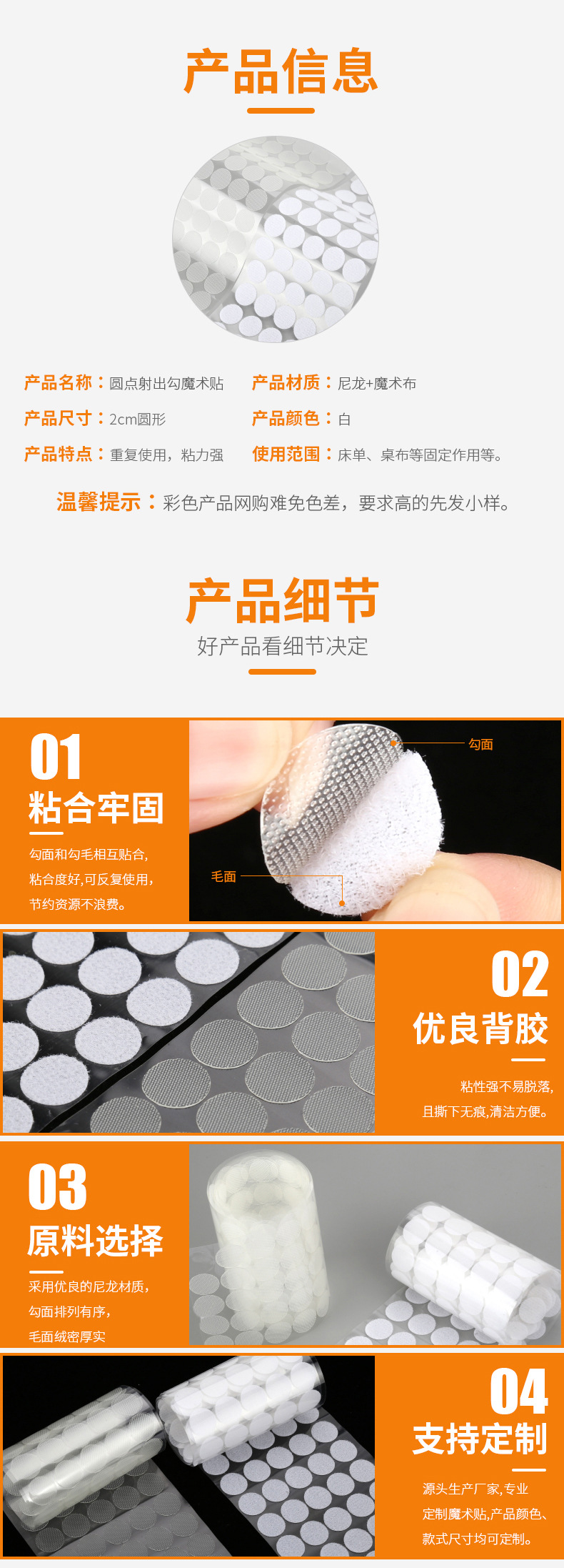 圆形背胶自粘魔术贴 床单沙发垫防滑幼儿园环创DIY圆点背胶魔术贴