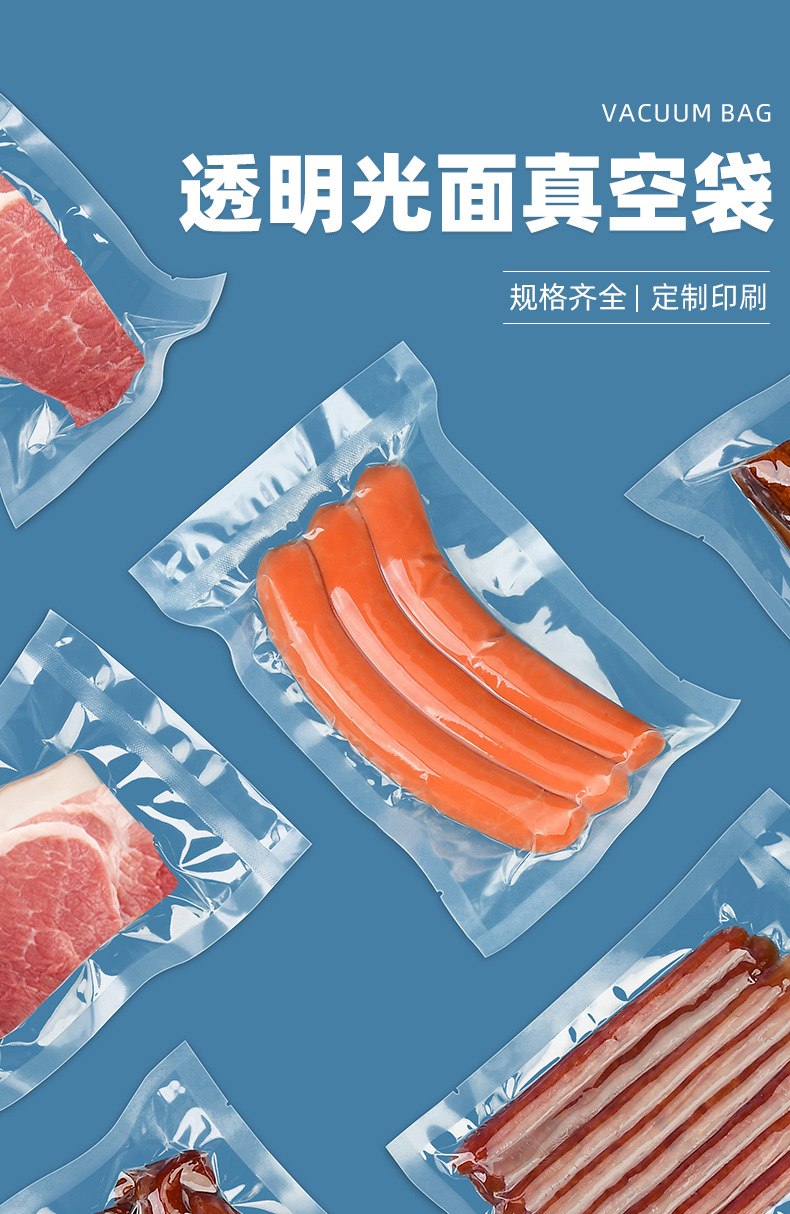 商用真空袋透明光面抽真空食品包装袋加厚密封保鲜封口塑封袋印刷