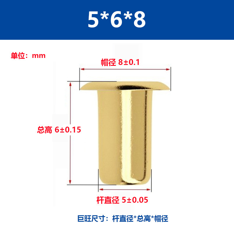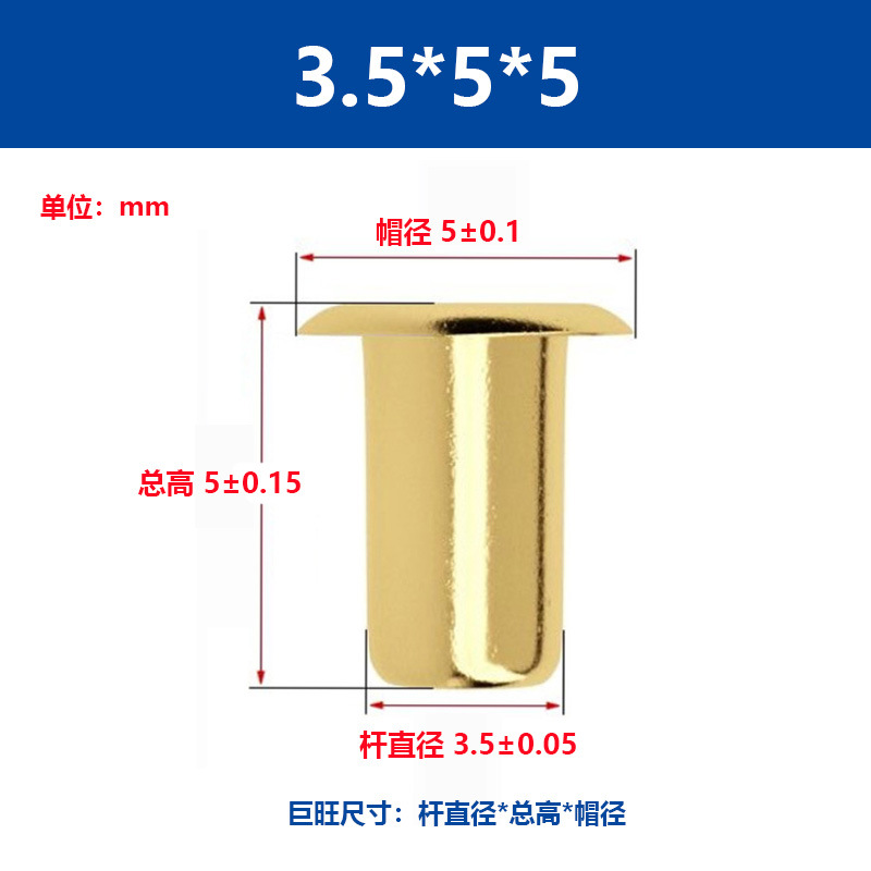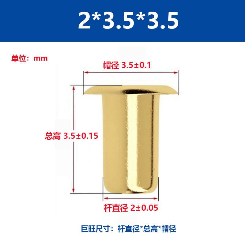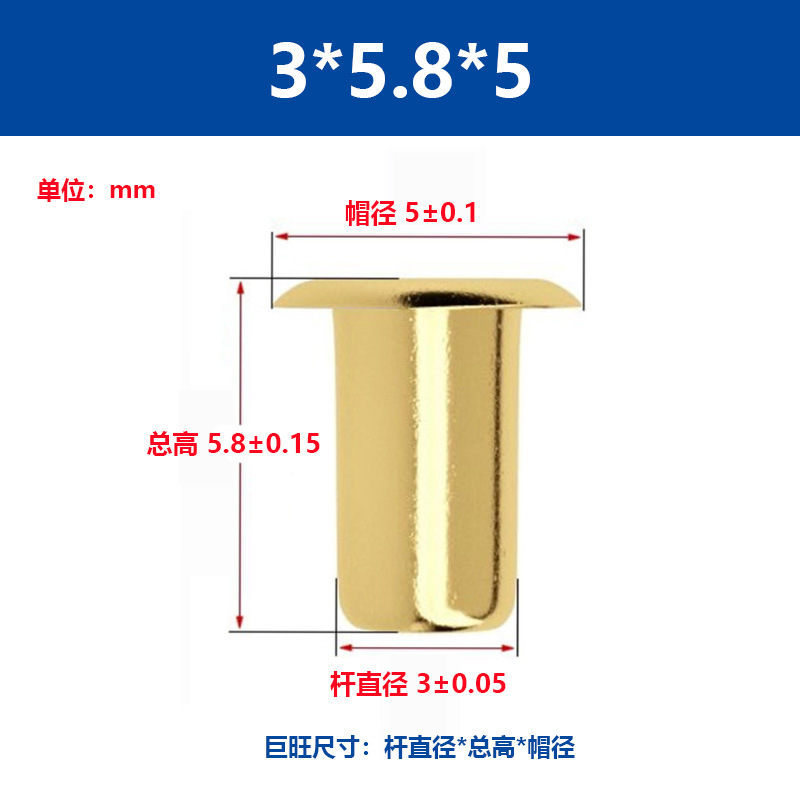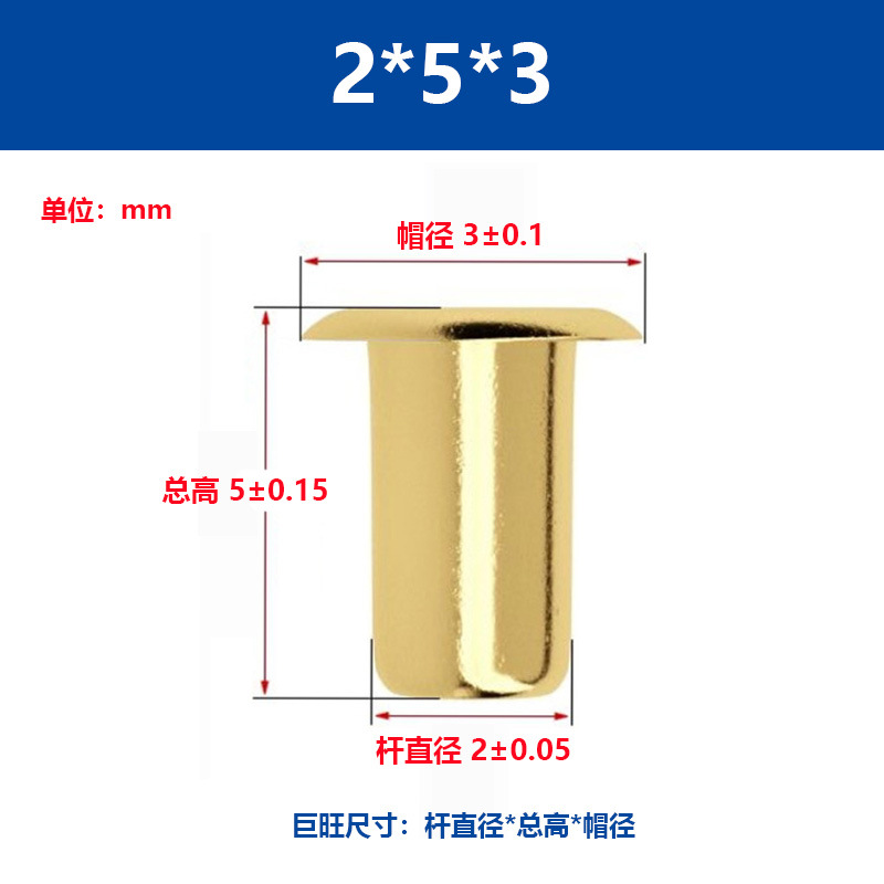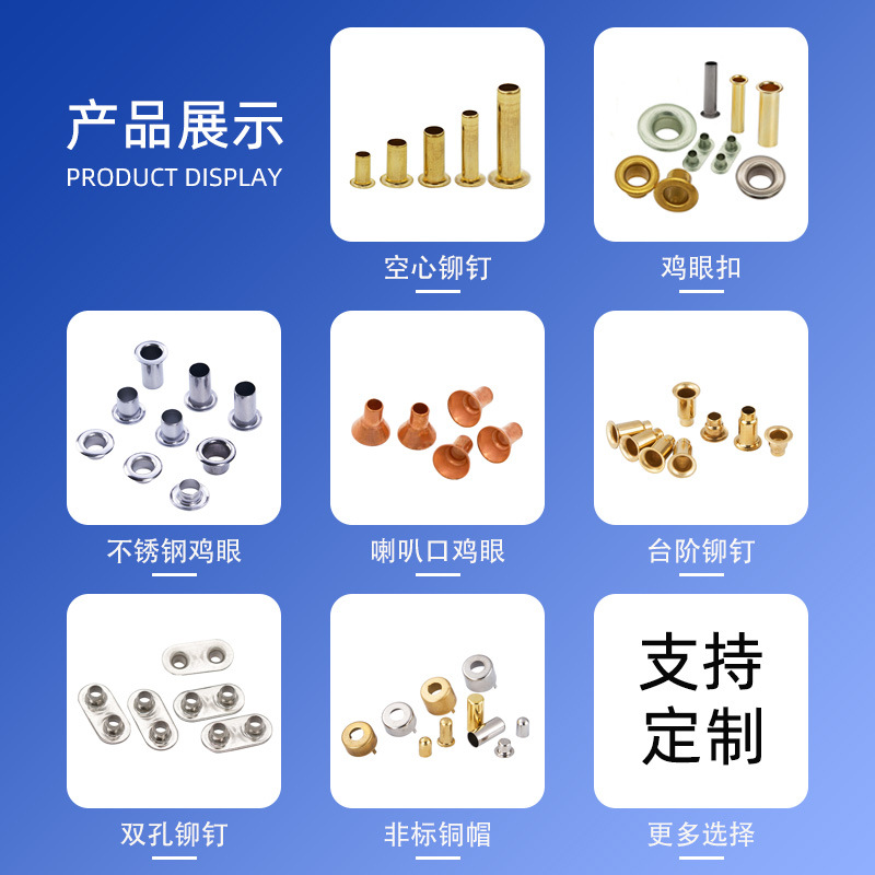 재고 있음: 중공 리벳, 라운드 헤드, 통홀, 저연 황동, 전자용 아이렛, 에어아이렛 버클, M2-M5, 완전 중공 황동 아이렛