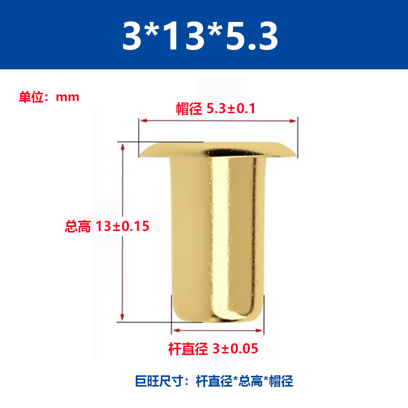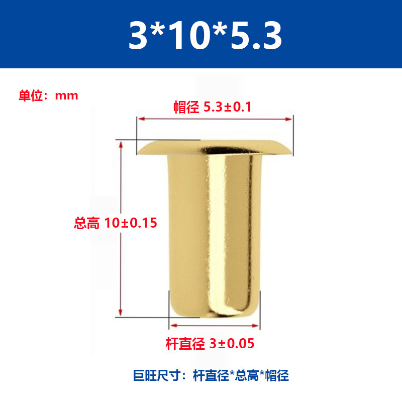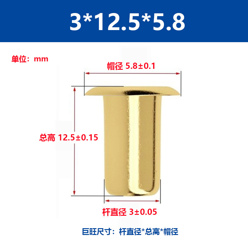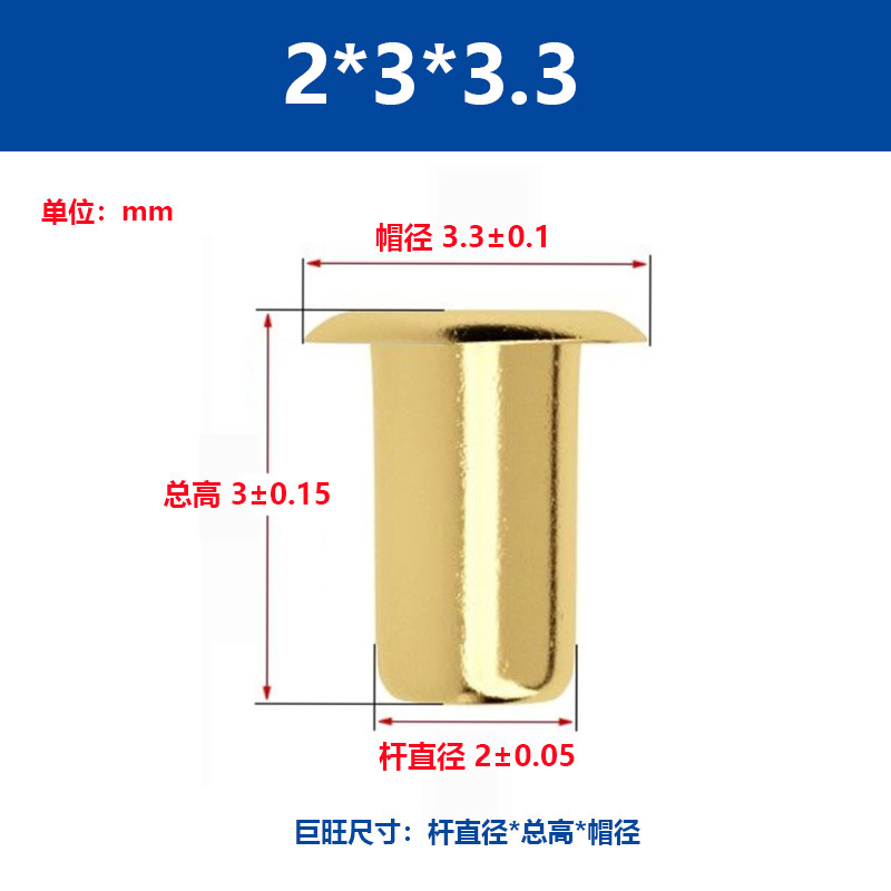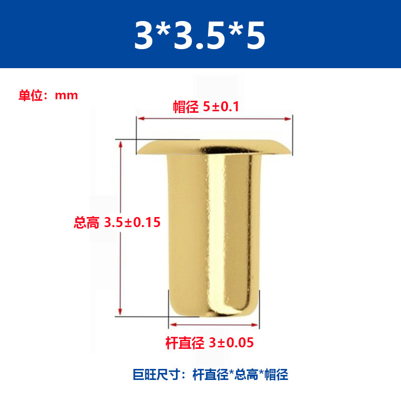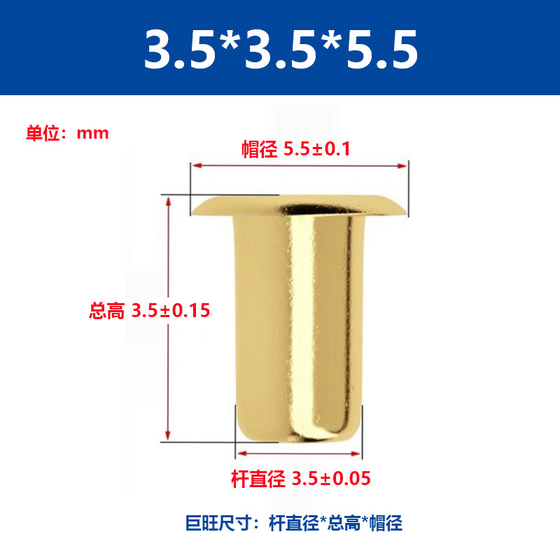 재고 있음: 중공 리벳, 라운드 헤드, 통홀, 저연 황동, 전자용 아이렛, 에어아이렛 버클, M2-M5, 완전 중공 황동 아이렛