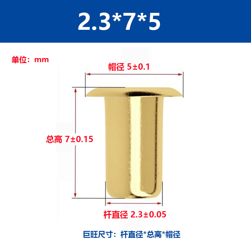 现货空心铆钉圆头通孔低铅黄铜电子鸡眼气眼扣M2-M5全空心铜鸡眼
