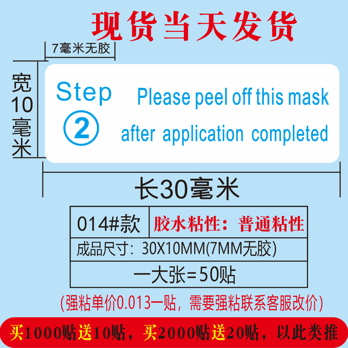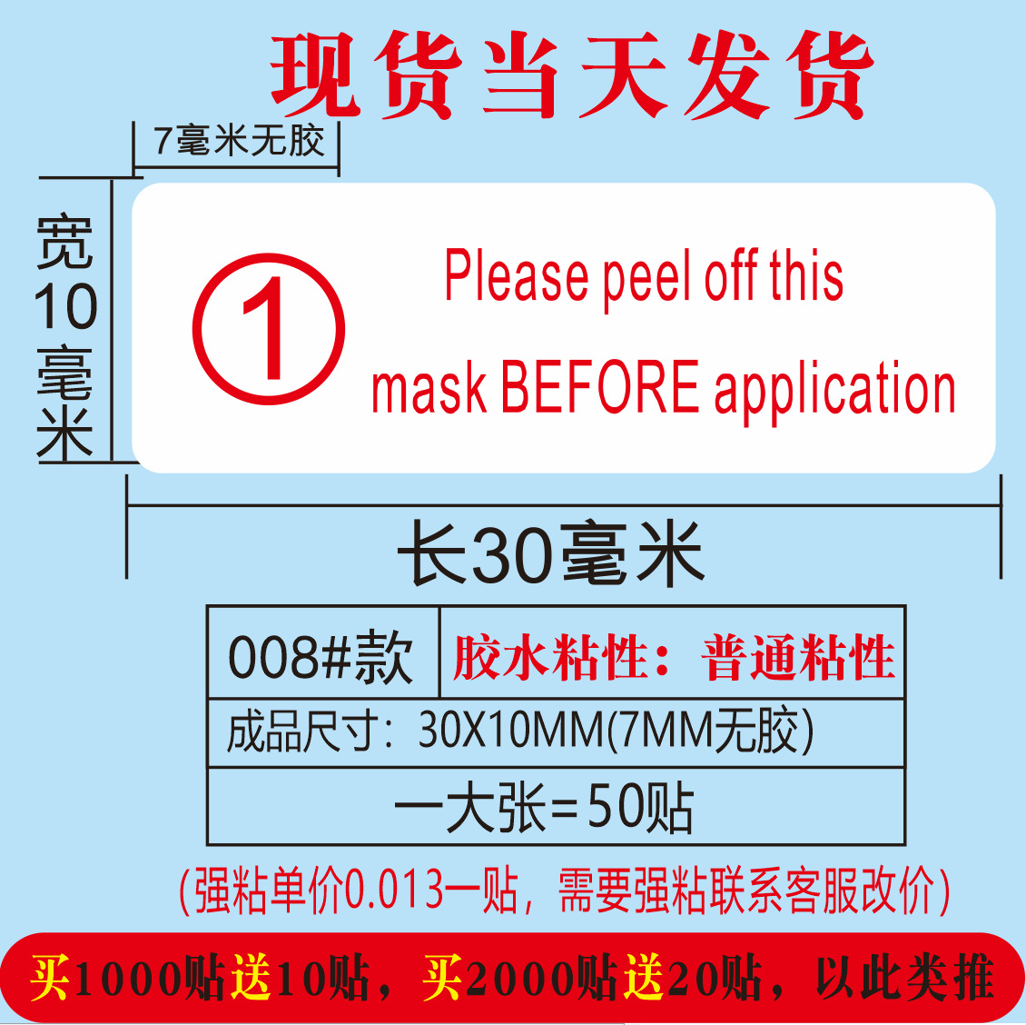 红色用于撕开底膜;30*10MM