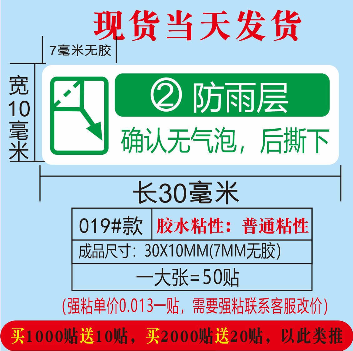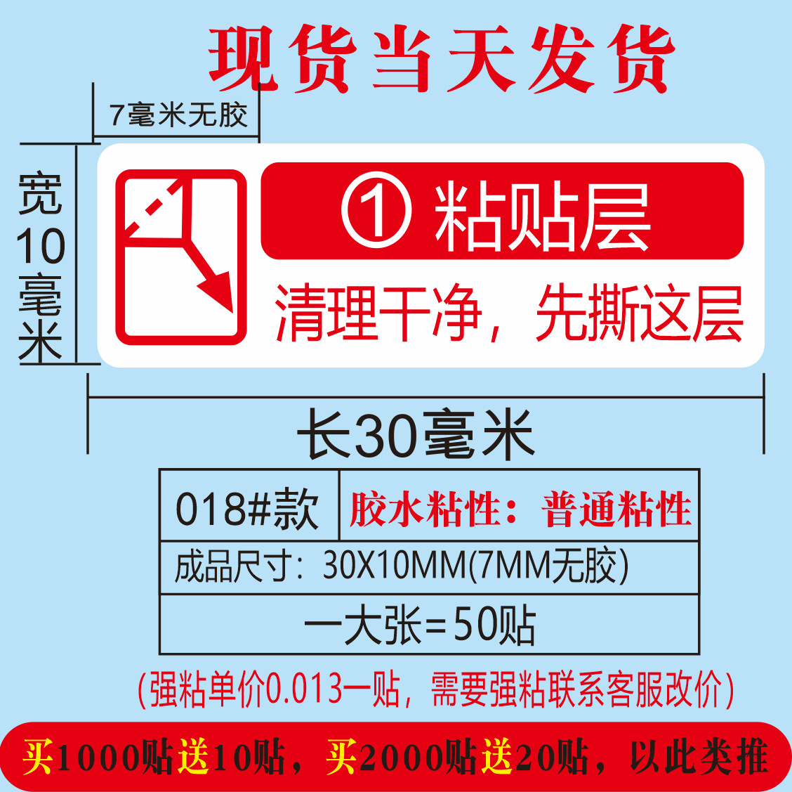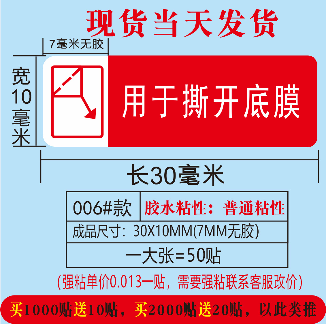 (红色用于撕开底膜;30*10MM)